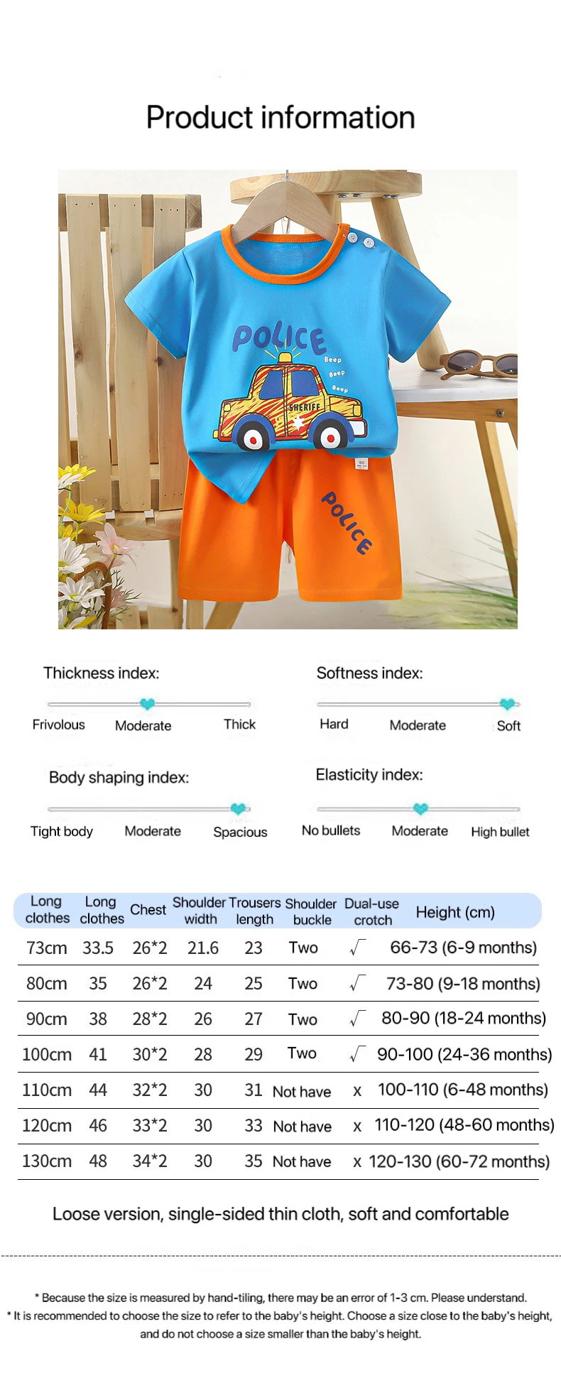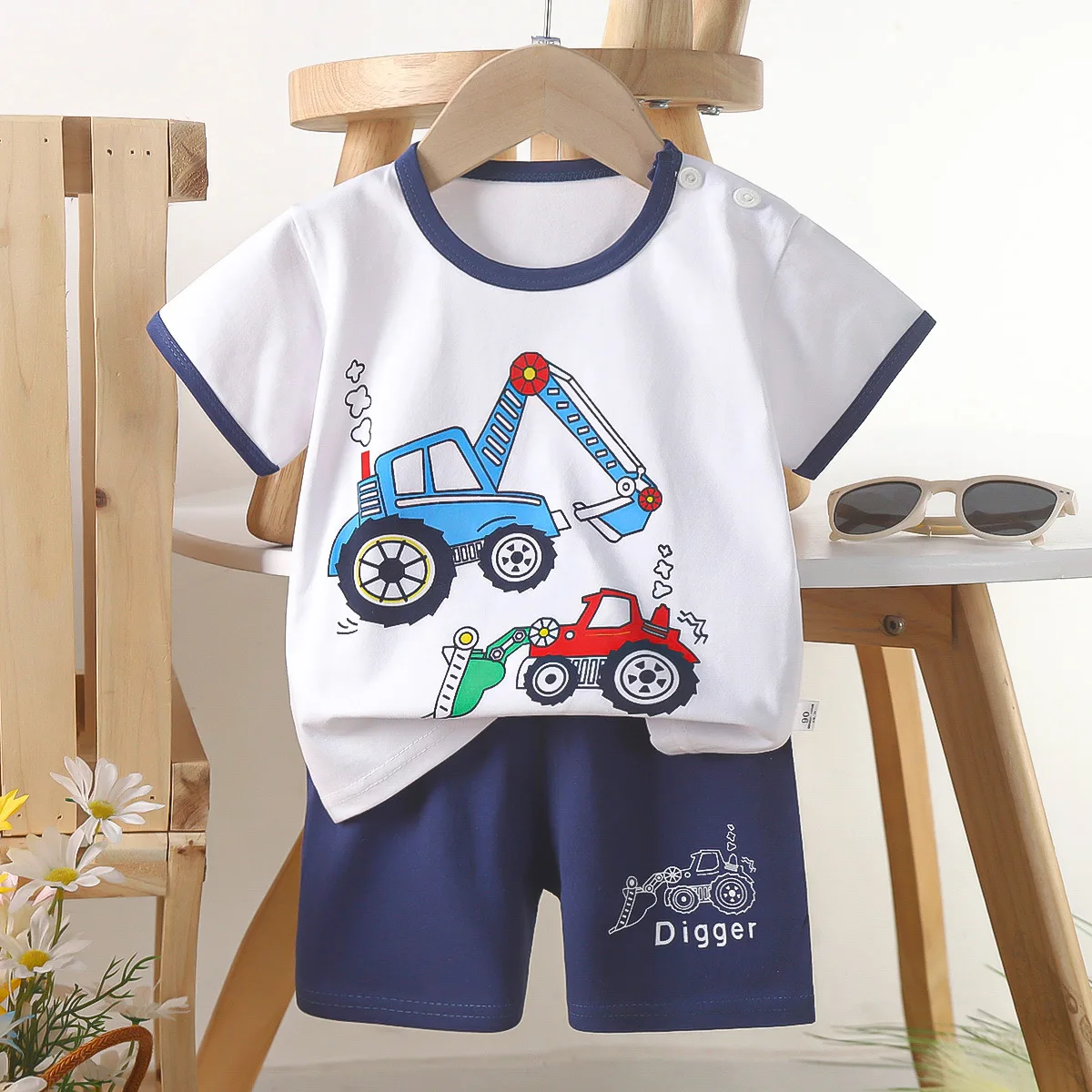 1 Sets Pure Cotton Kids Cartoon Clothing Summer Baby Fashion Short Sleeve Suits