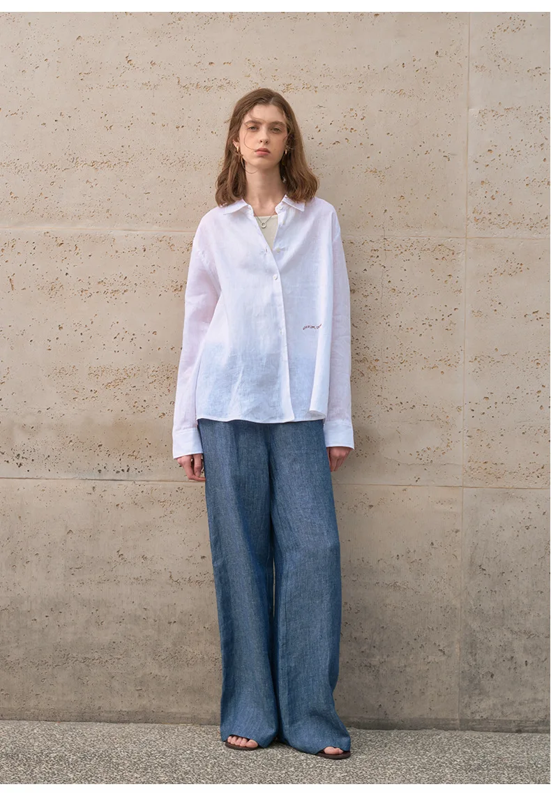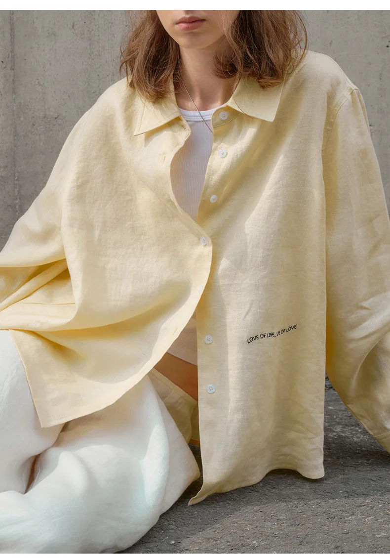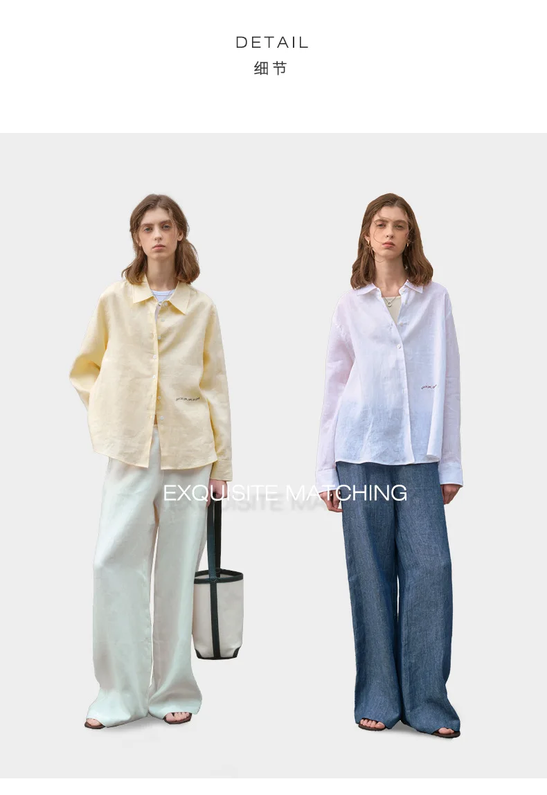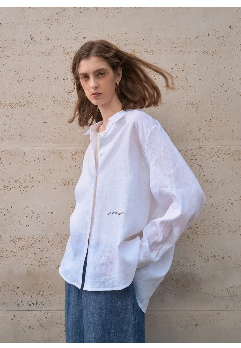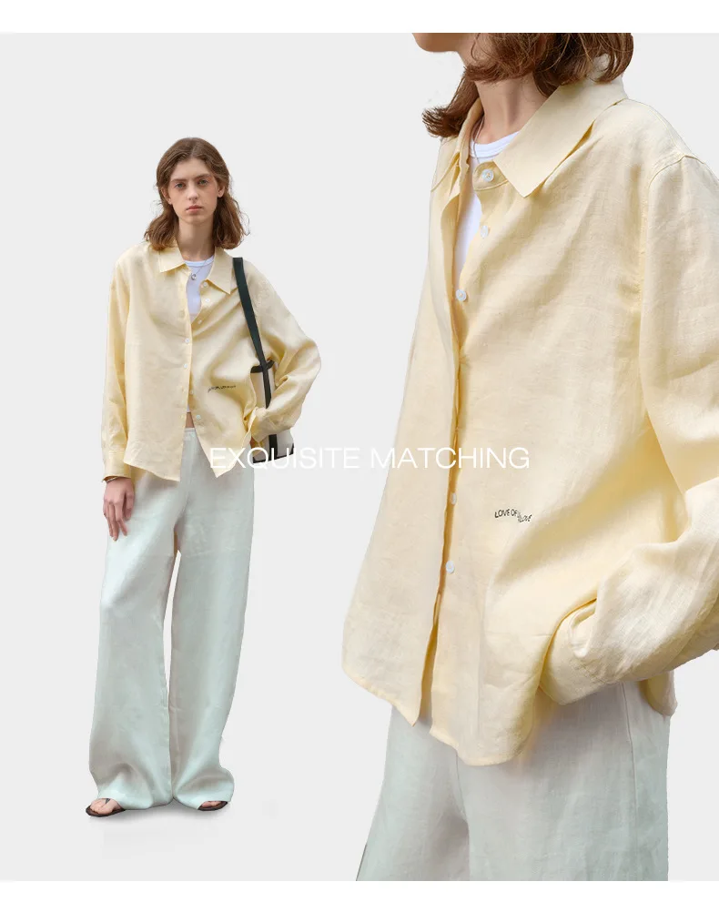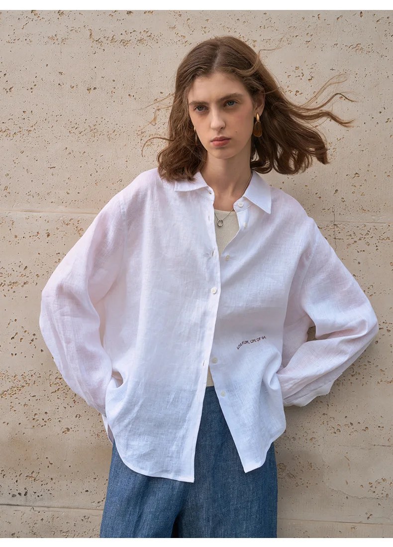 100% Linen Shirt Women 2025 Spring And Summer New Casual Lapel Sunscreen Cardiga