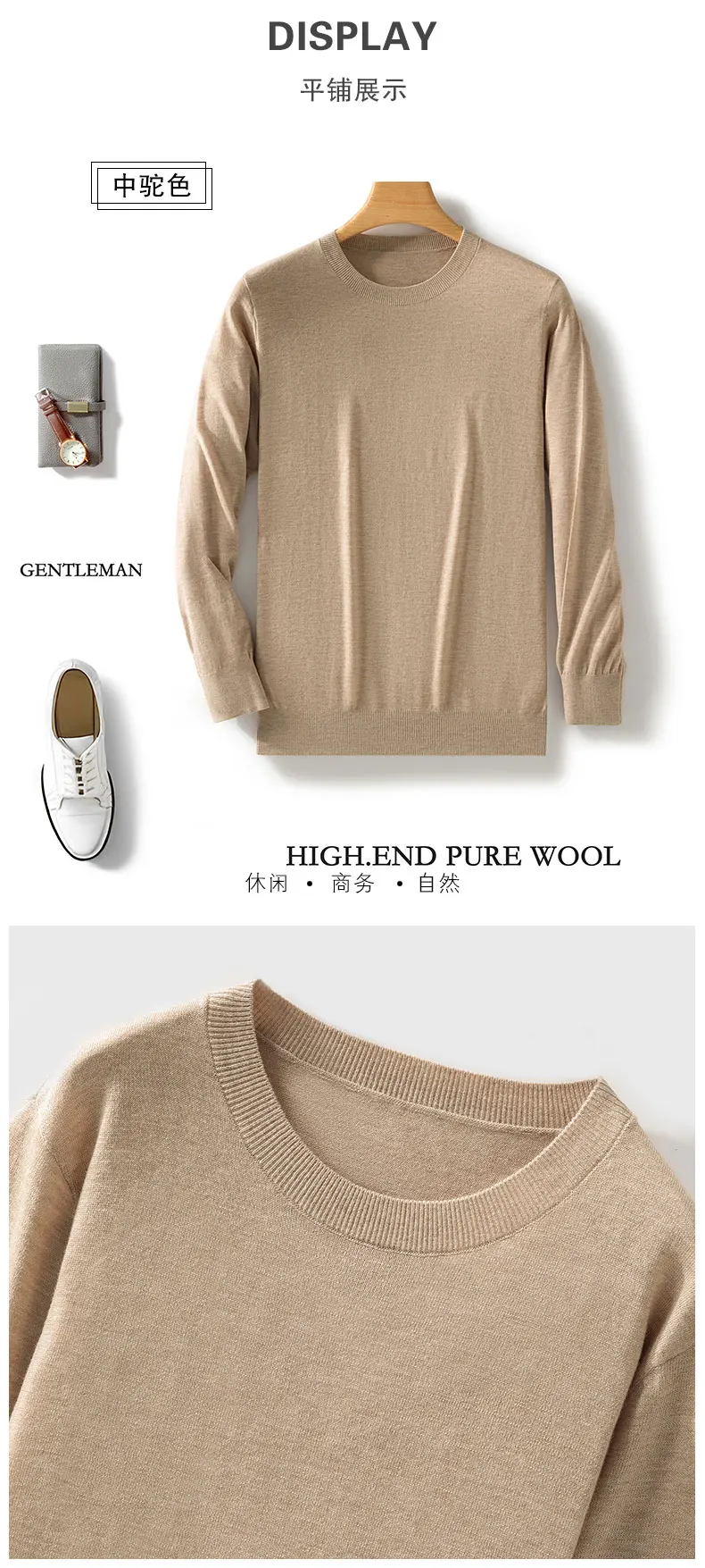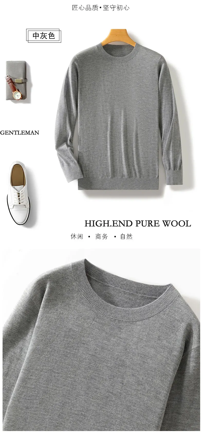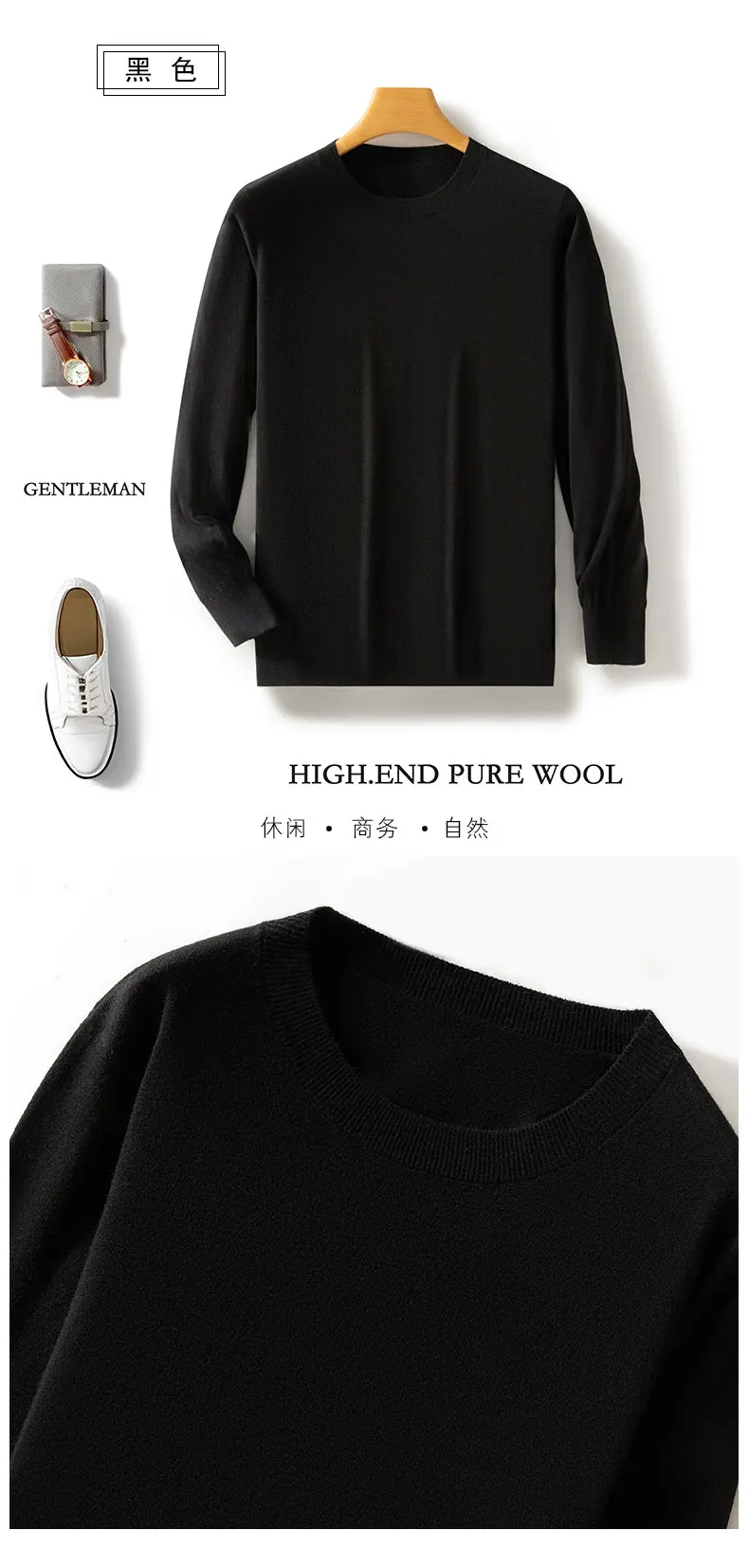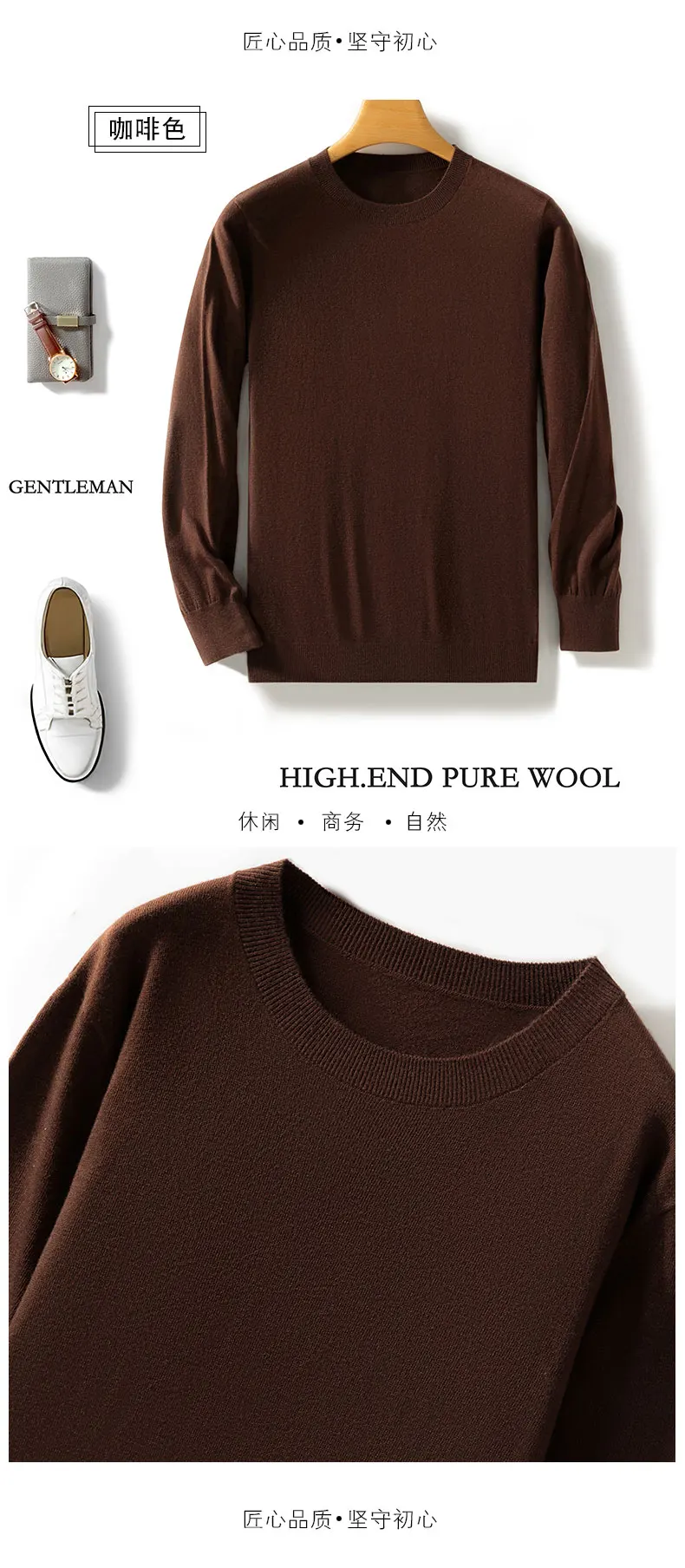 100% Pure Merino Wool Sweater Men's Round Collar Pullover Spring Autumn New Busi