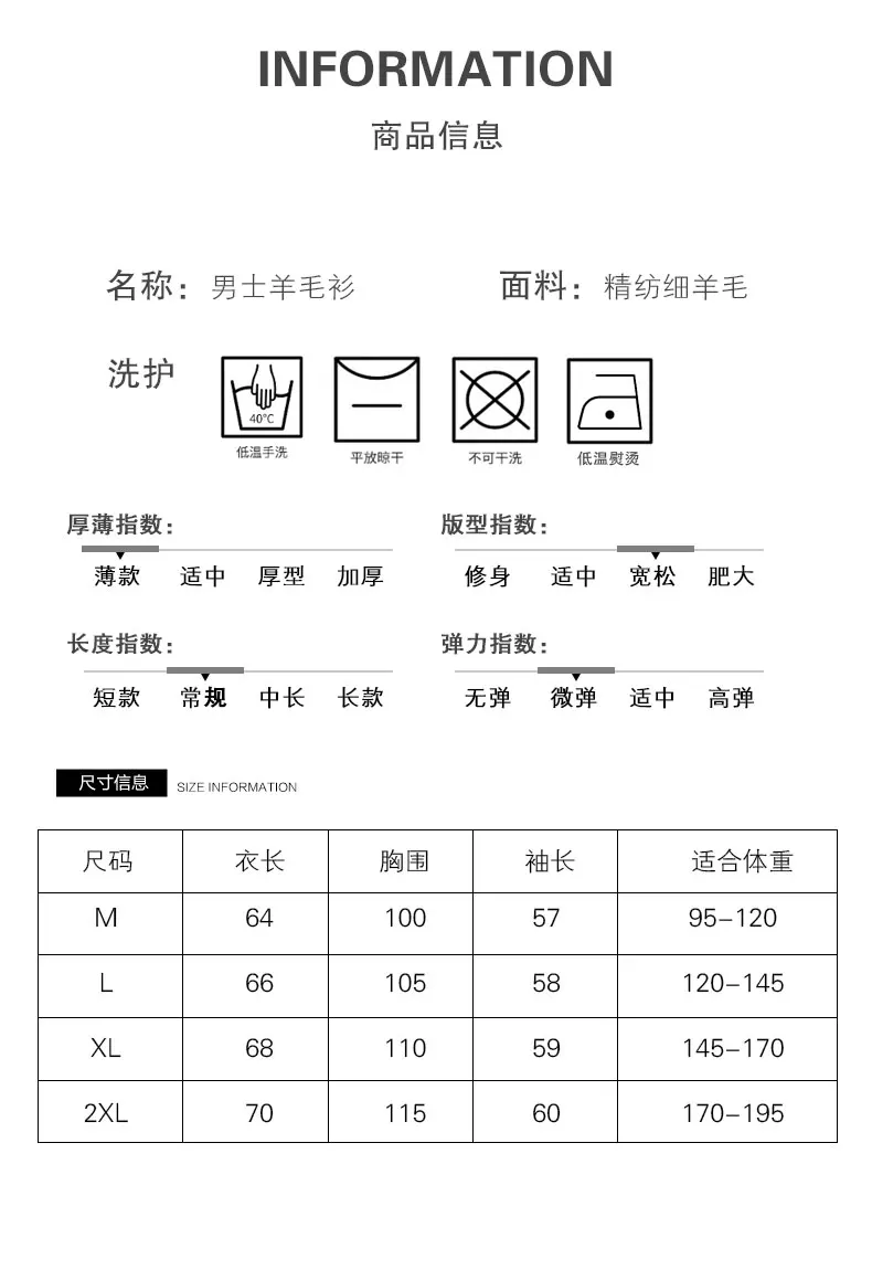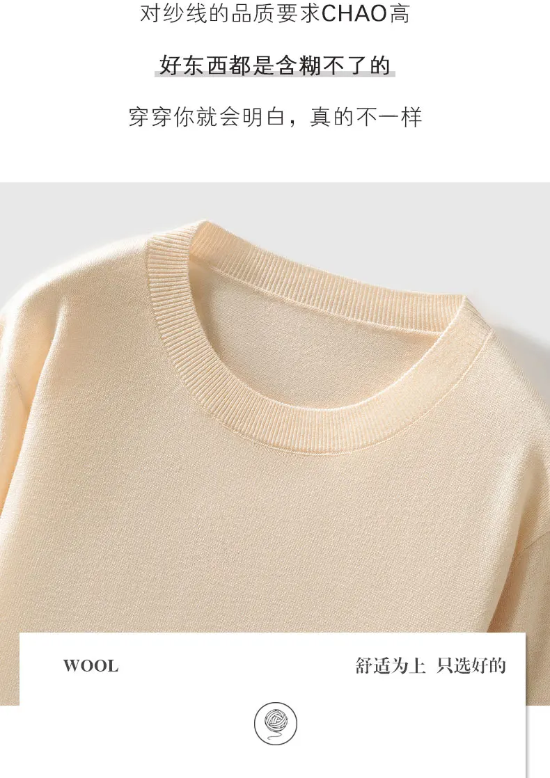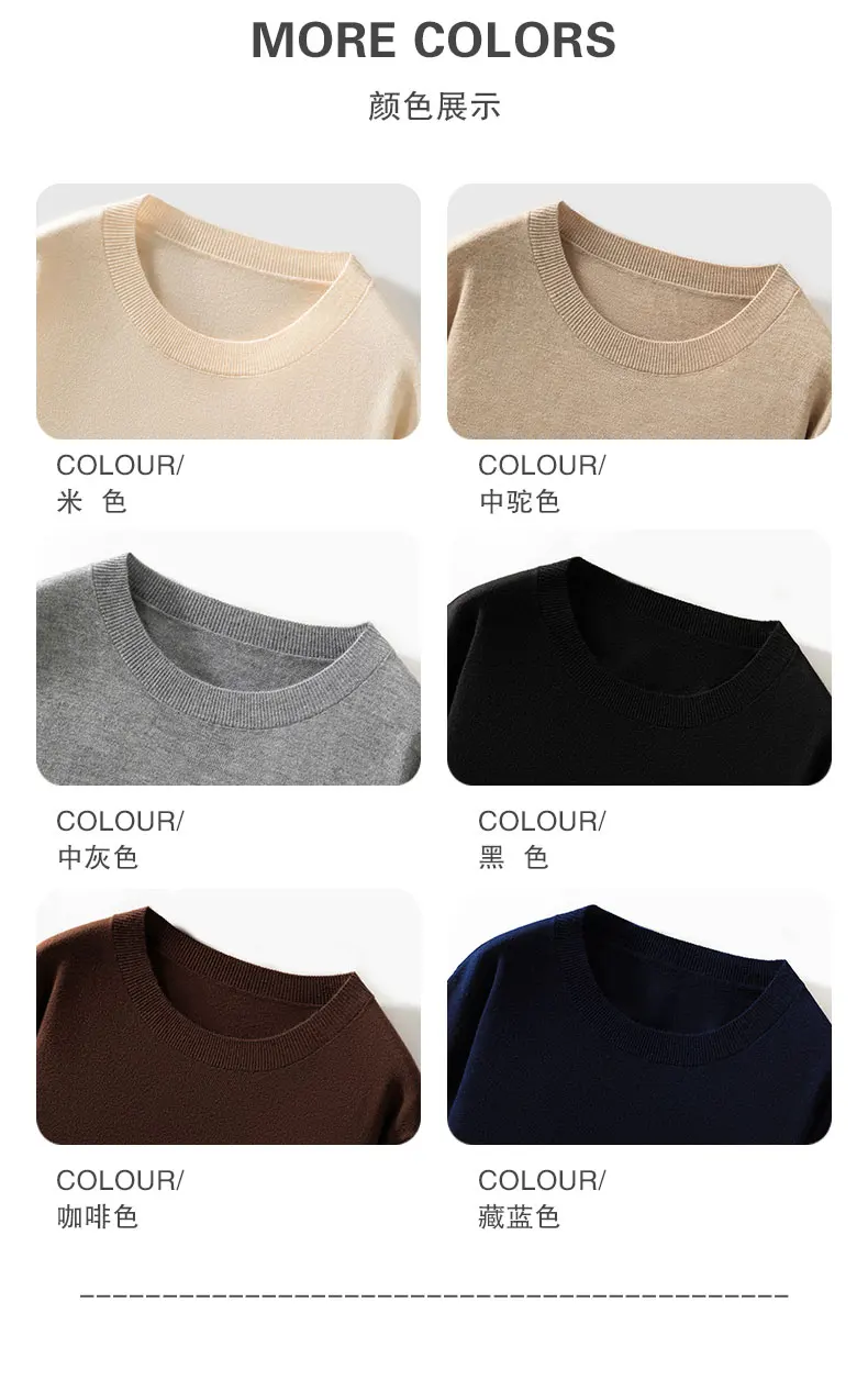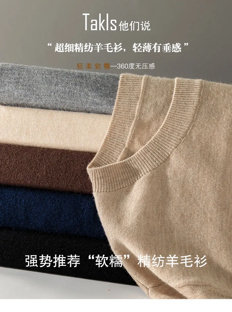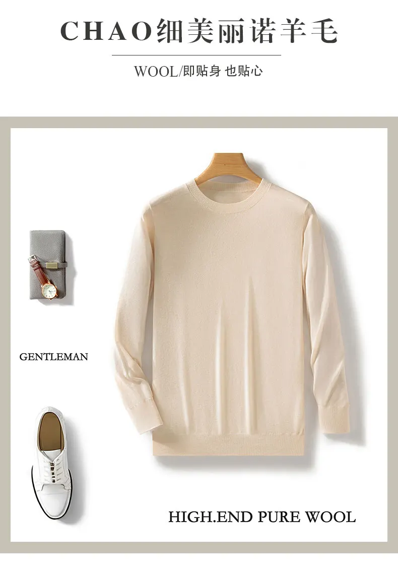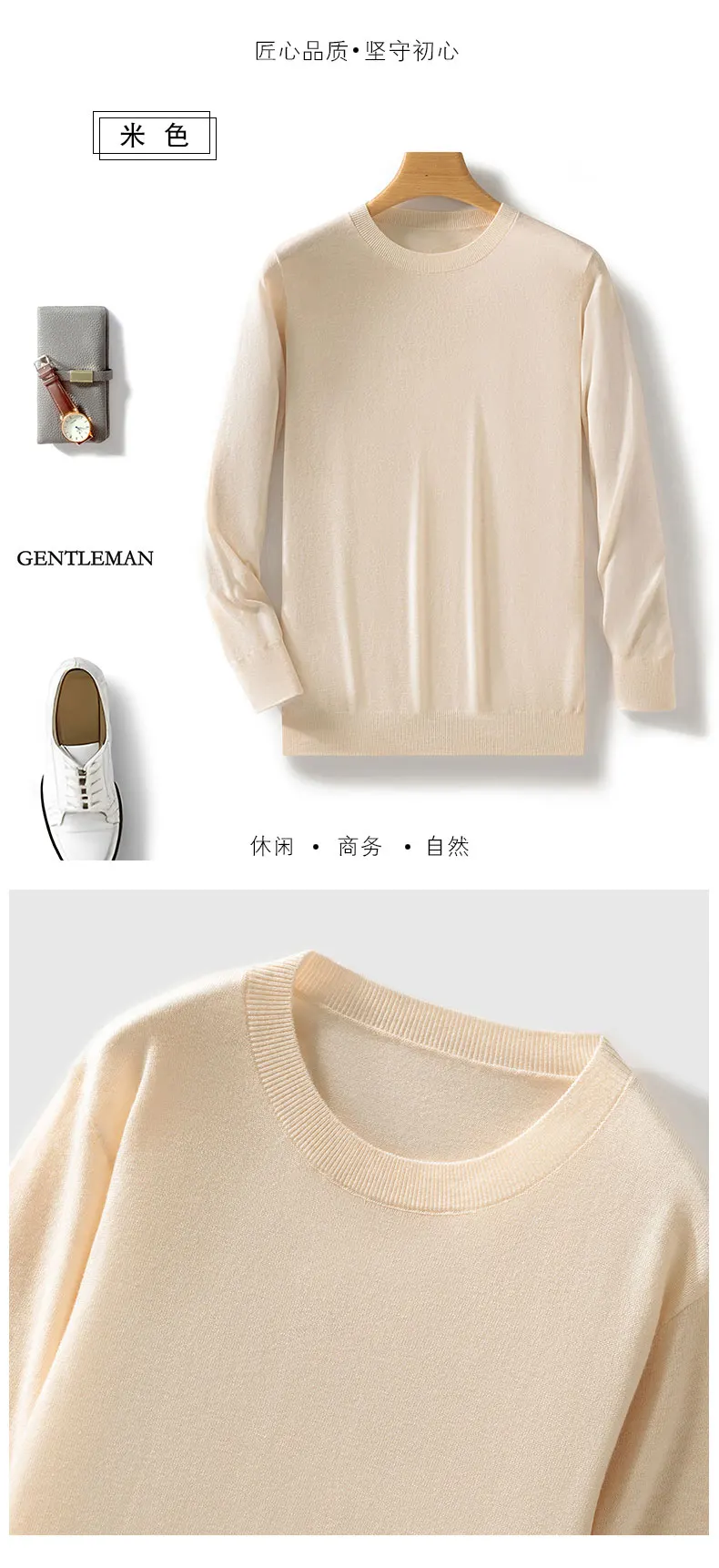 100% Pure Merino Wool Sweater Men's Round Collar Pullover Spring Autumn New Busi