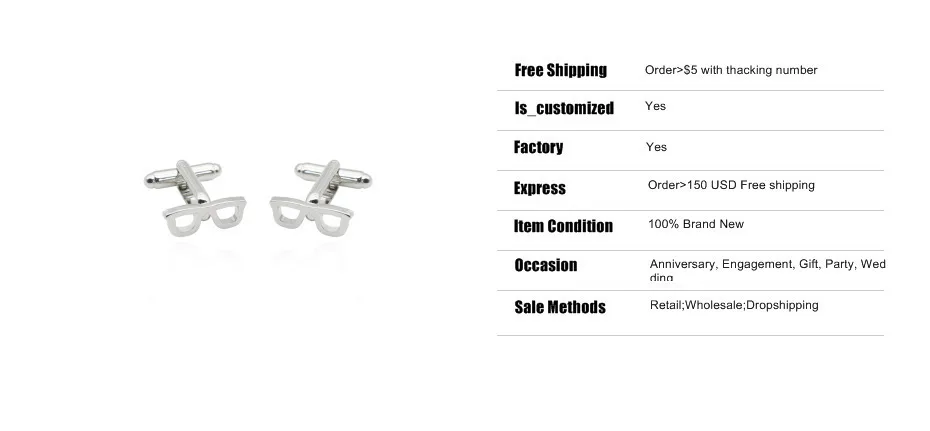 1Pair Creative Glasses Cufflinks for Men Fashion Eyeglass Frame Cufflinks Button