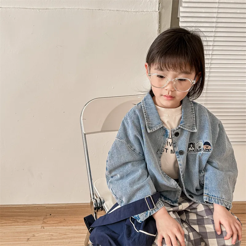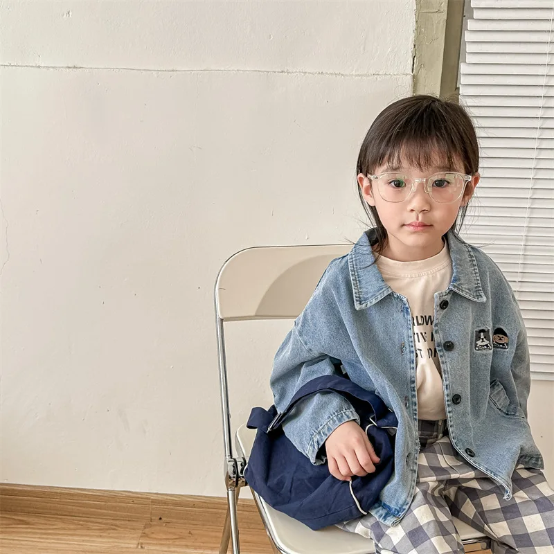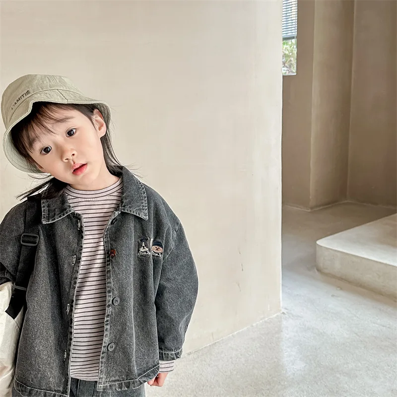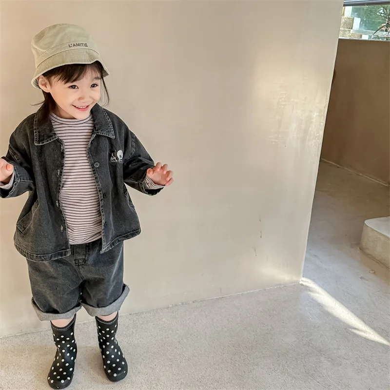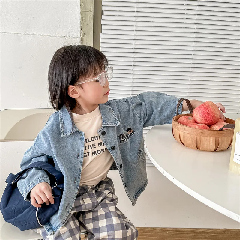 2024 New Baby Denim Jacket Casual Fashion Kids Coat Loose Boys Clothes Tops Autu