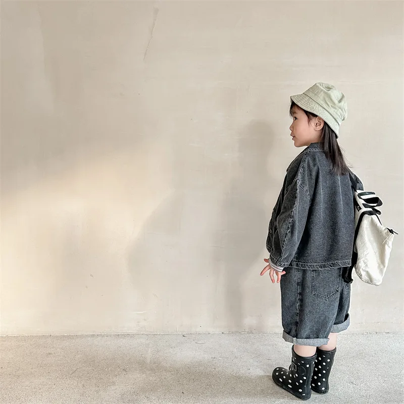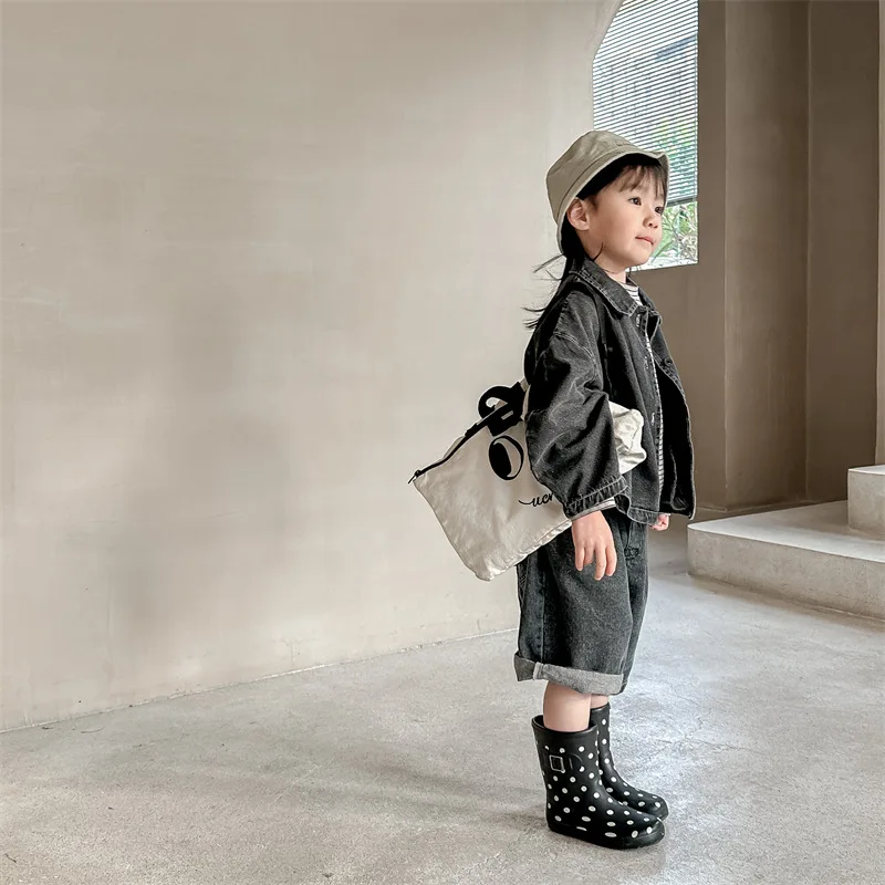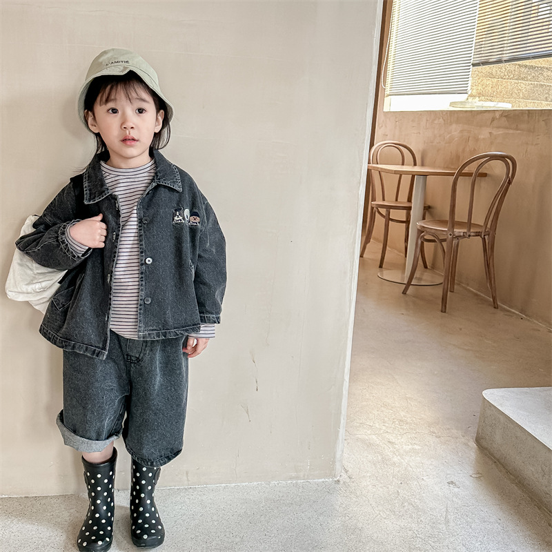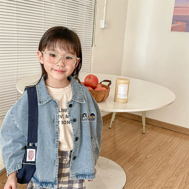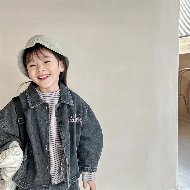 2024 New Baby Denim Jacket Casual Fashion Kids Coat Loose Boys Clothes Tops Autu