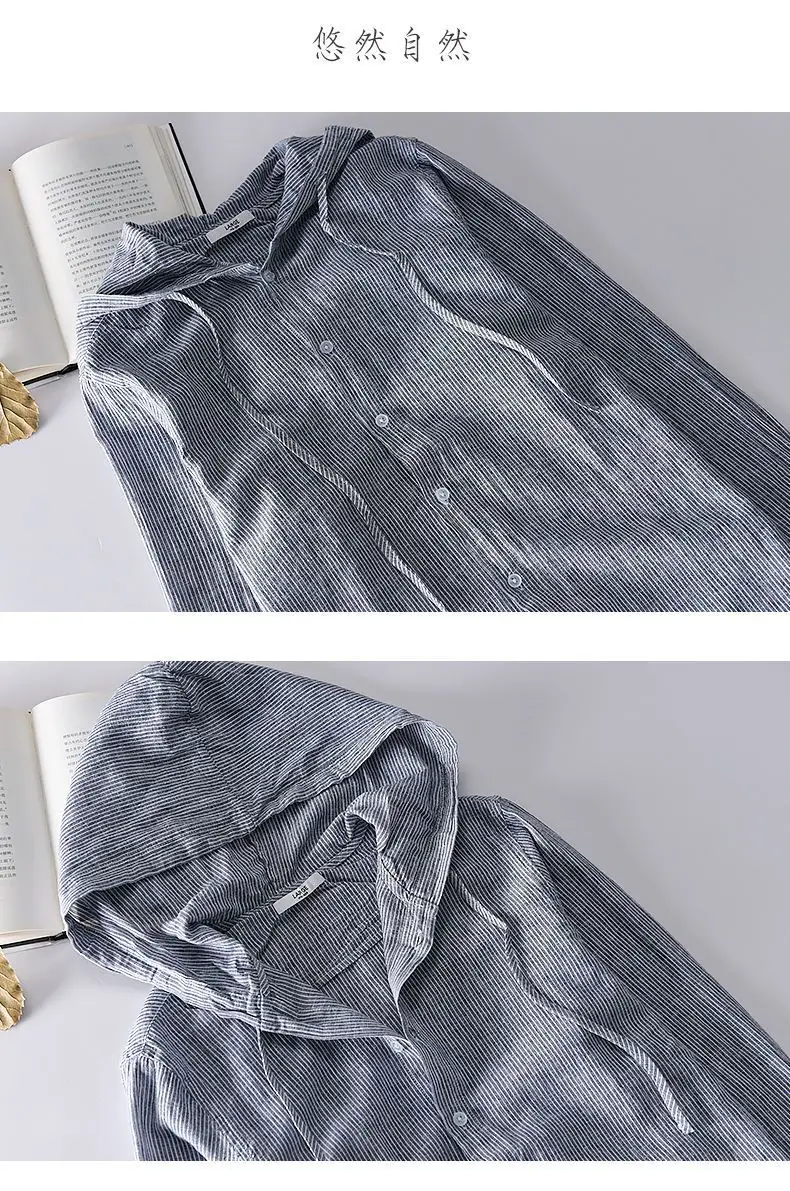 2024 Spring Summer New Solid Color Hooded Long Sleeve Cotton Hemp Shirt Man High Street Loose Casual Button All-match Cardigan