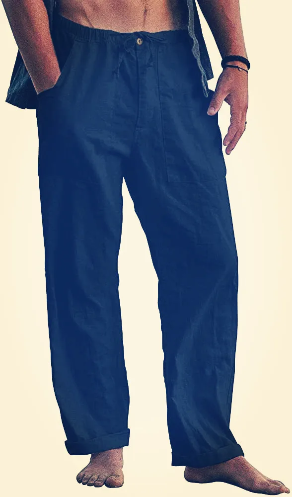 2025 Men's Breathable Cotton Linen Beach Pants Fashion Solid Loose Casual Trouse