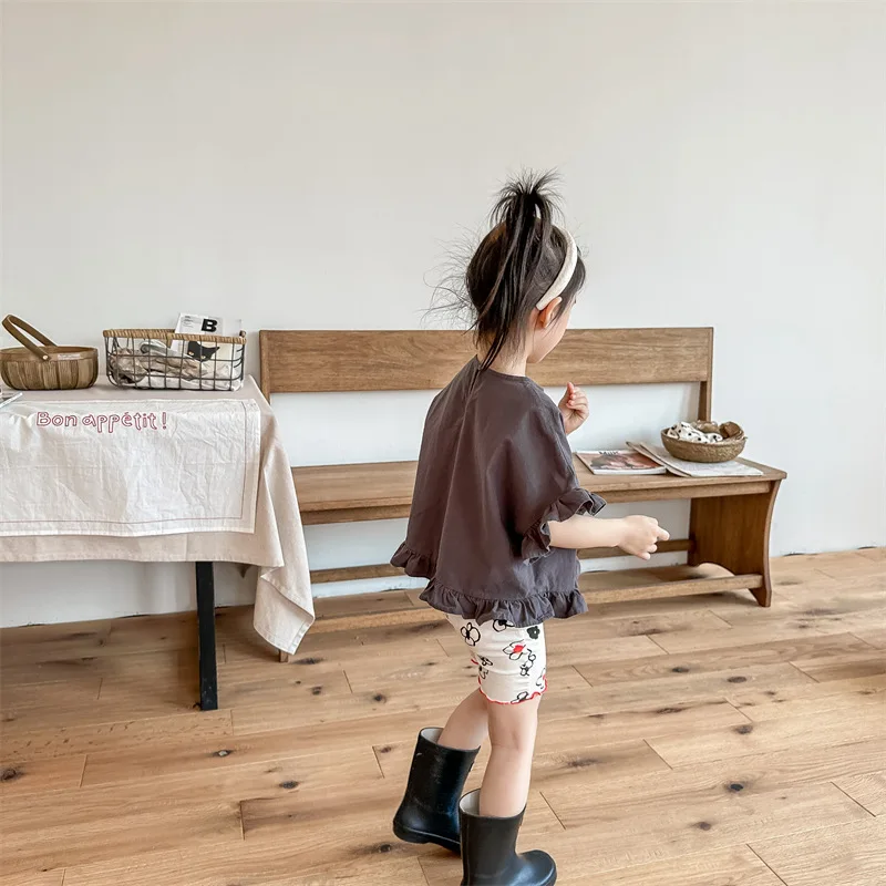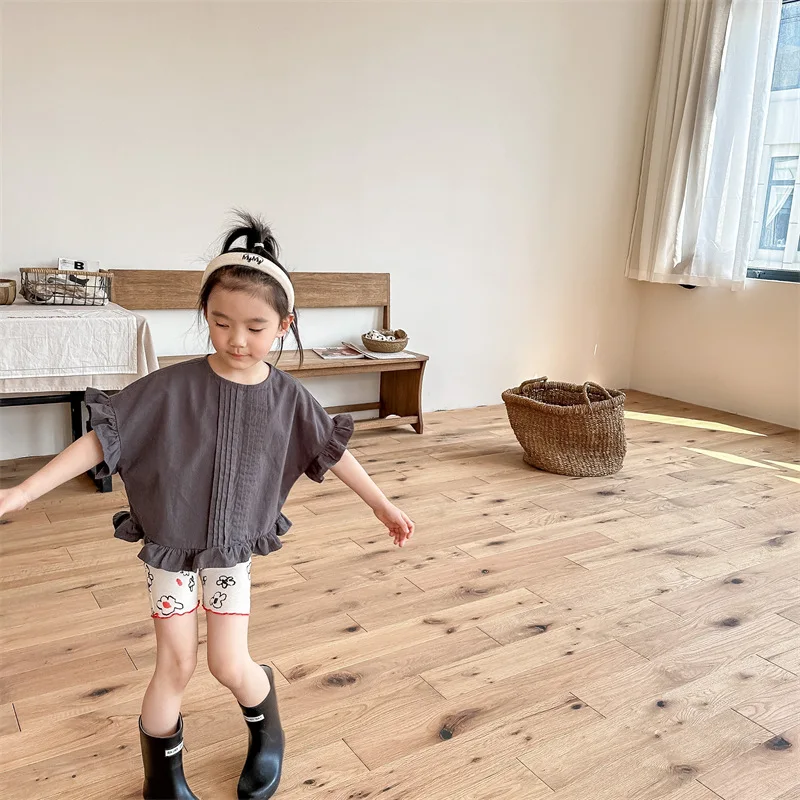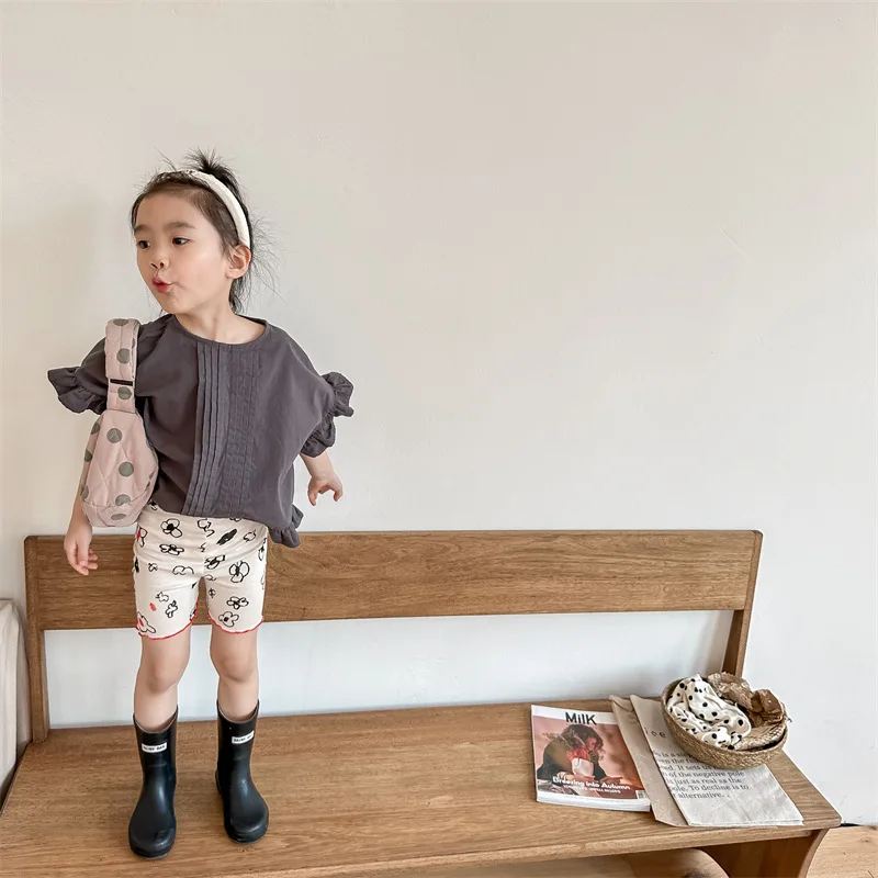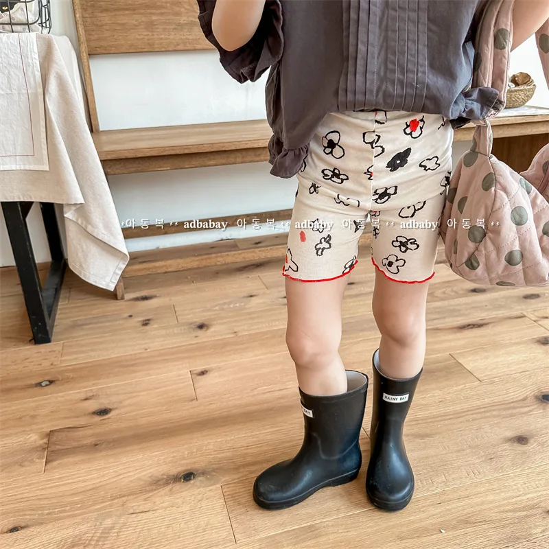 2025 New Children Cotton Shorts Girls Vintage Flower Print Shorts Kids Baby Casu