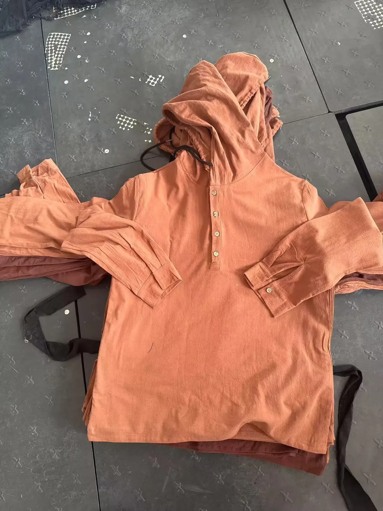 2025 New Cotton and Linen Shirt Hooded Sweater Long Sleeve Hooded Spring and Sum