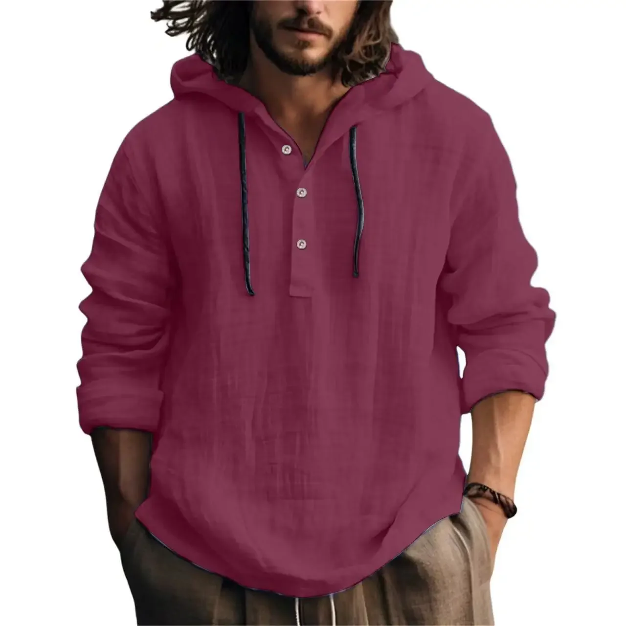 2025 New Cotton and Linen Shirt Hooded Sweater Long Sleeve Hooded Spring and Summer Casual Daily Clothing Hot Sale![]()