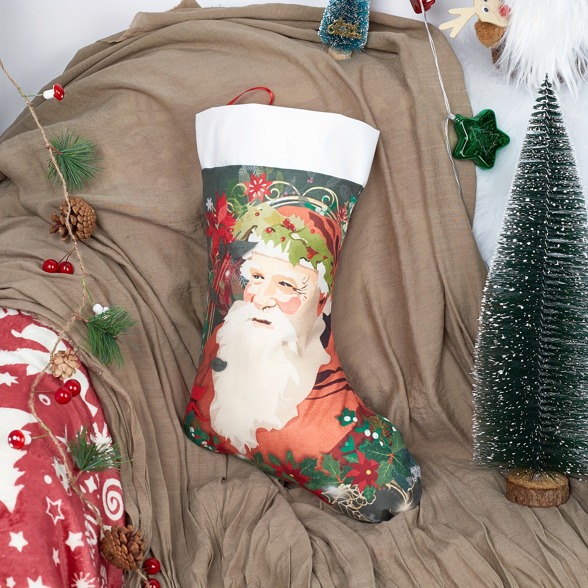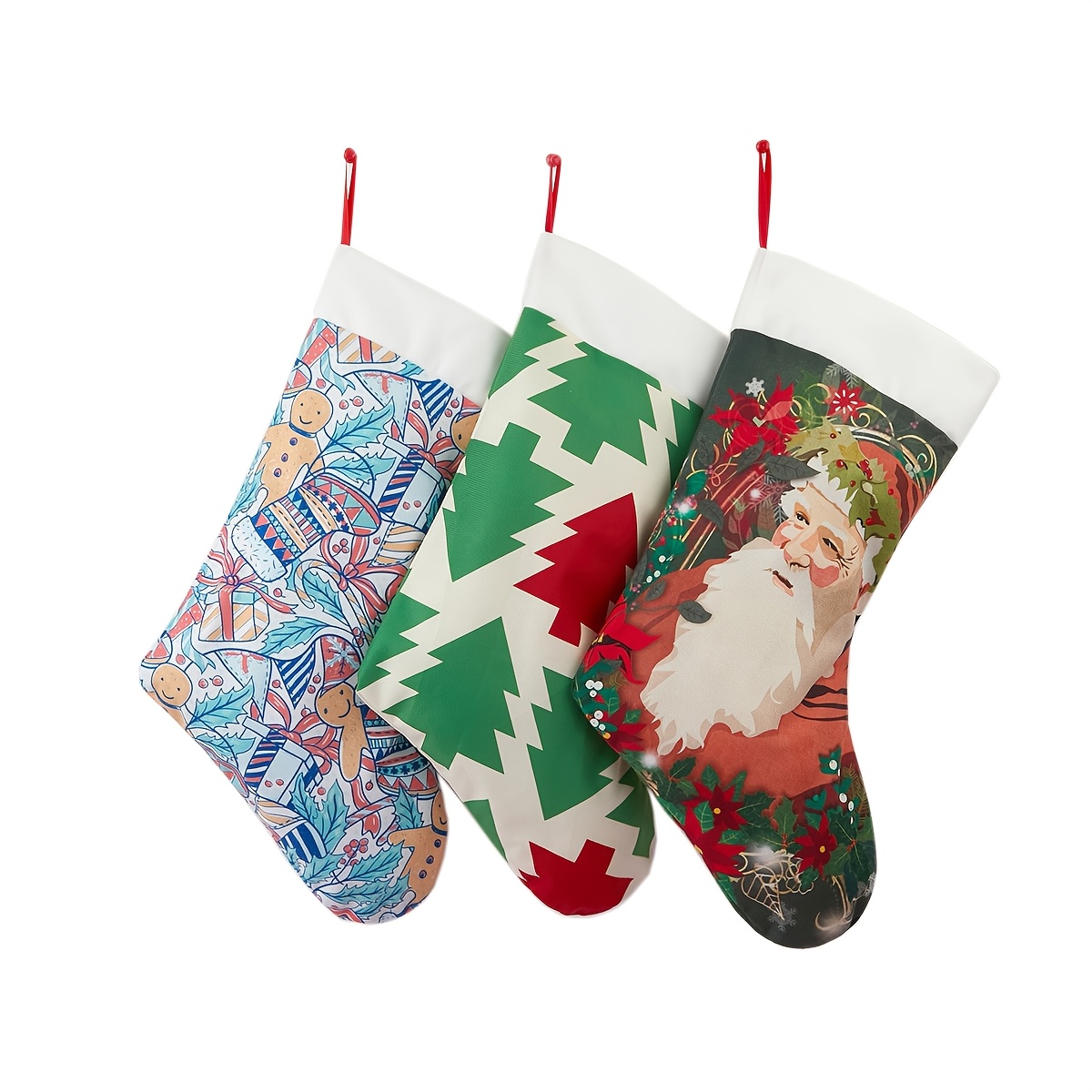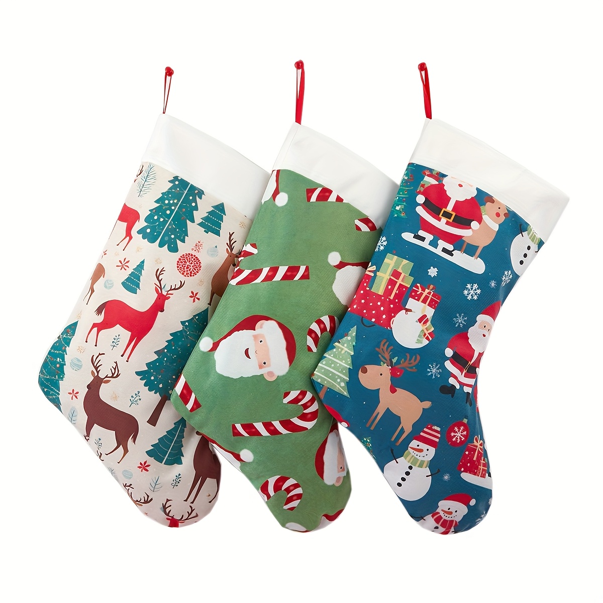 3pcs Christmas Stocking Merry Christmas Tree Santa Claus Reindeer Christmas Snow