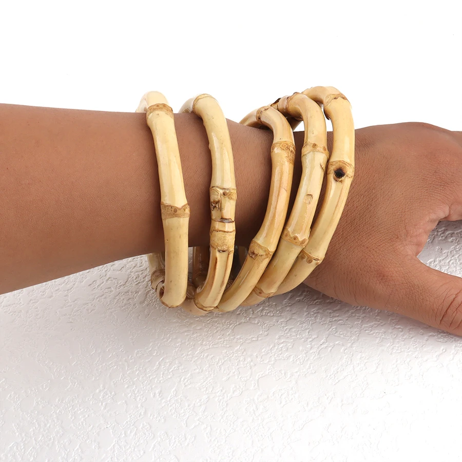 4pcs/lot Natural Chunky Wooden Bamboo Bangle for Women