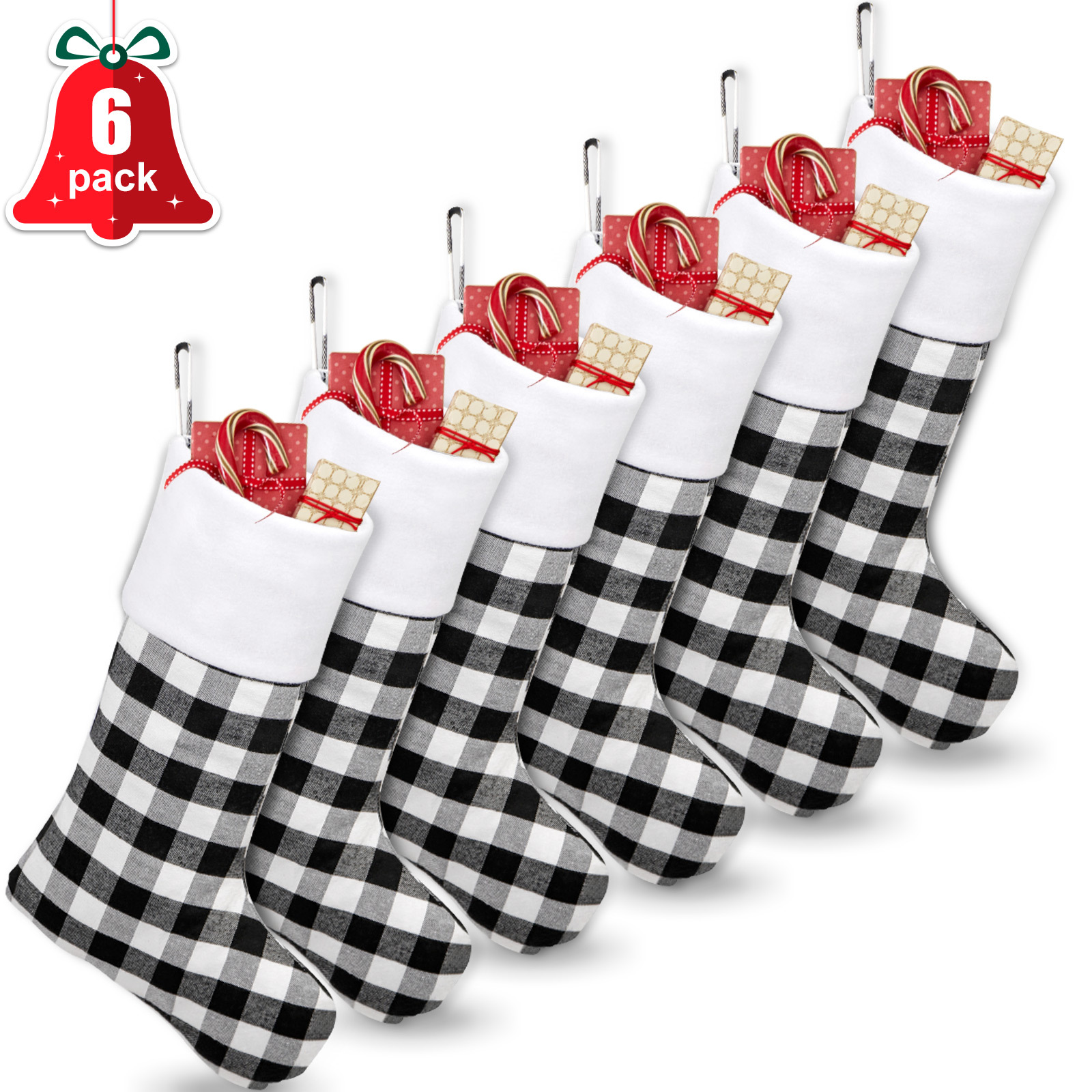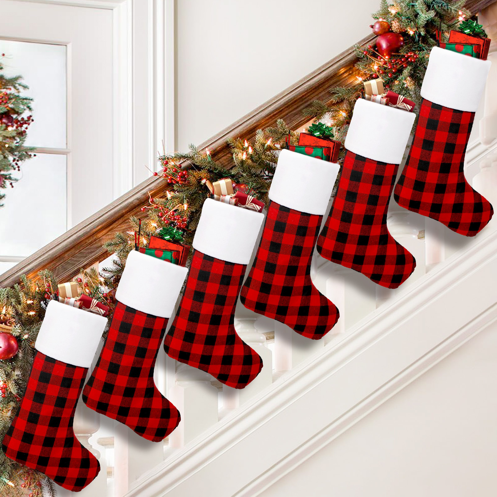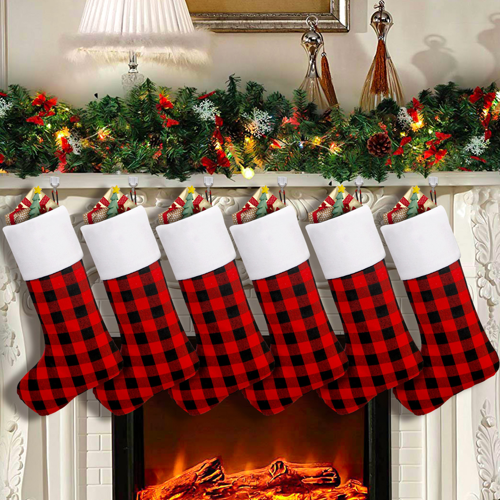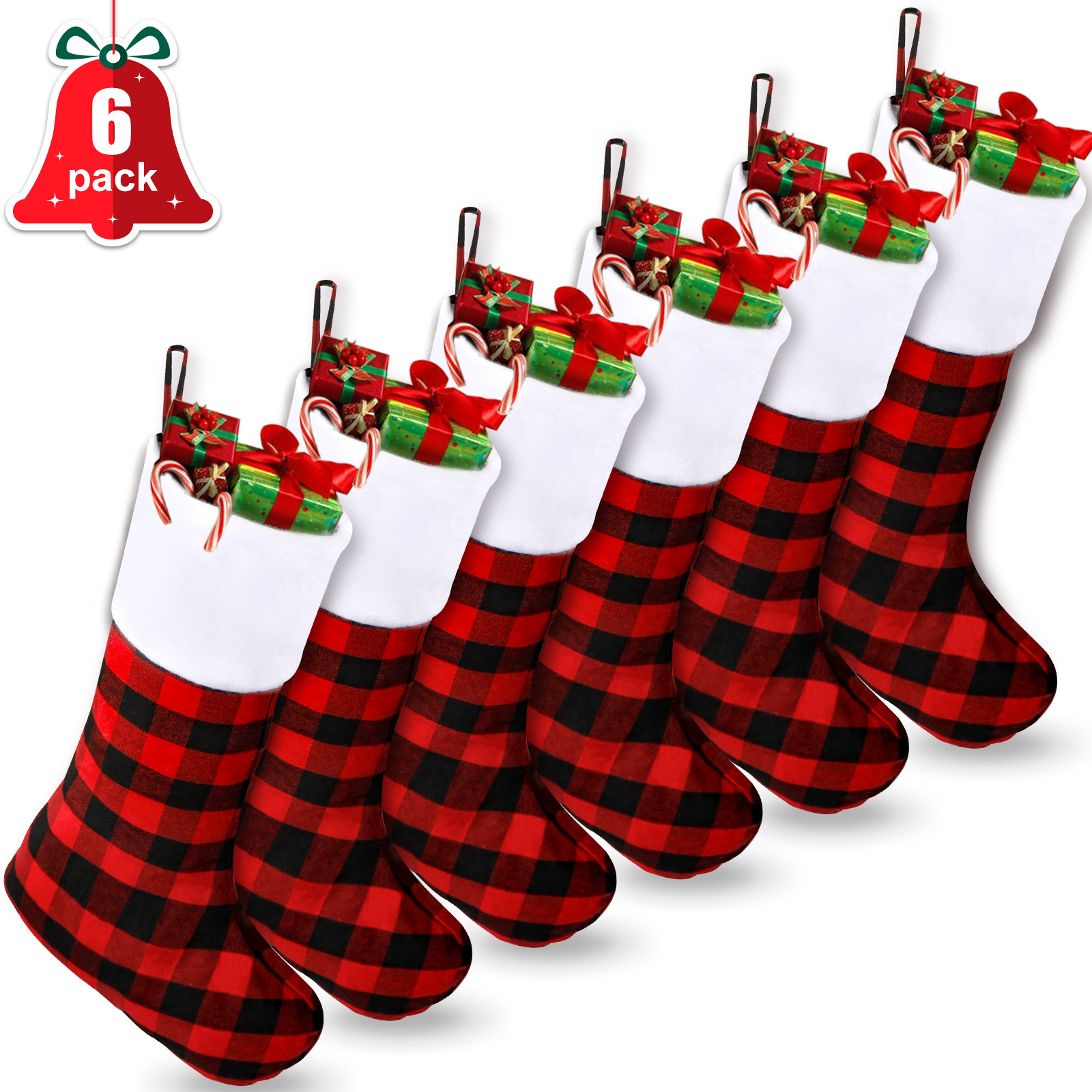 6pcs Large Christmas Stockings - Extra Long 18x11 Inch Red & Black Plaid Stockin