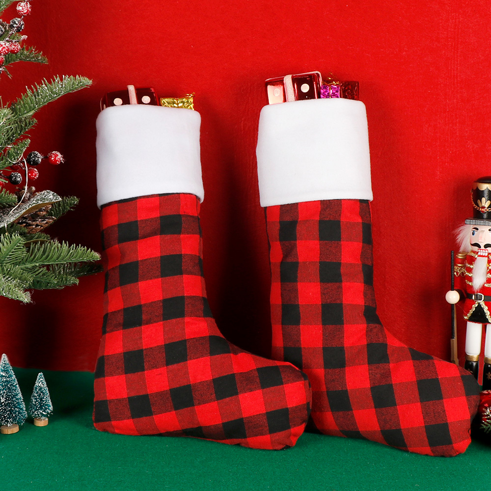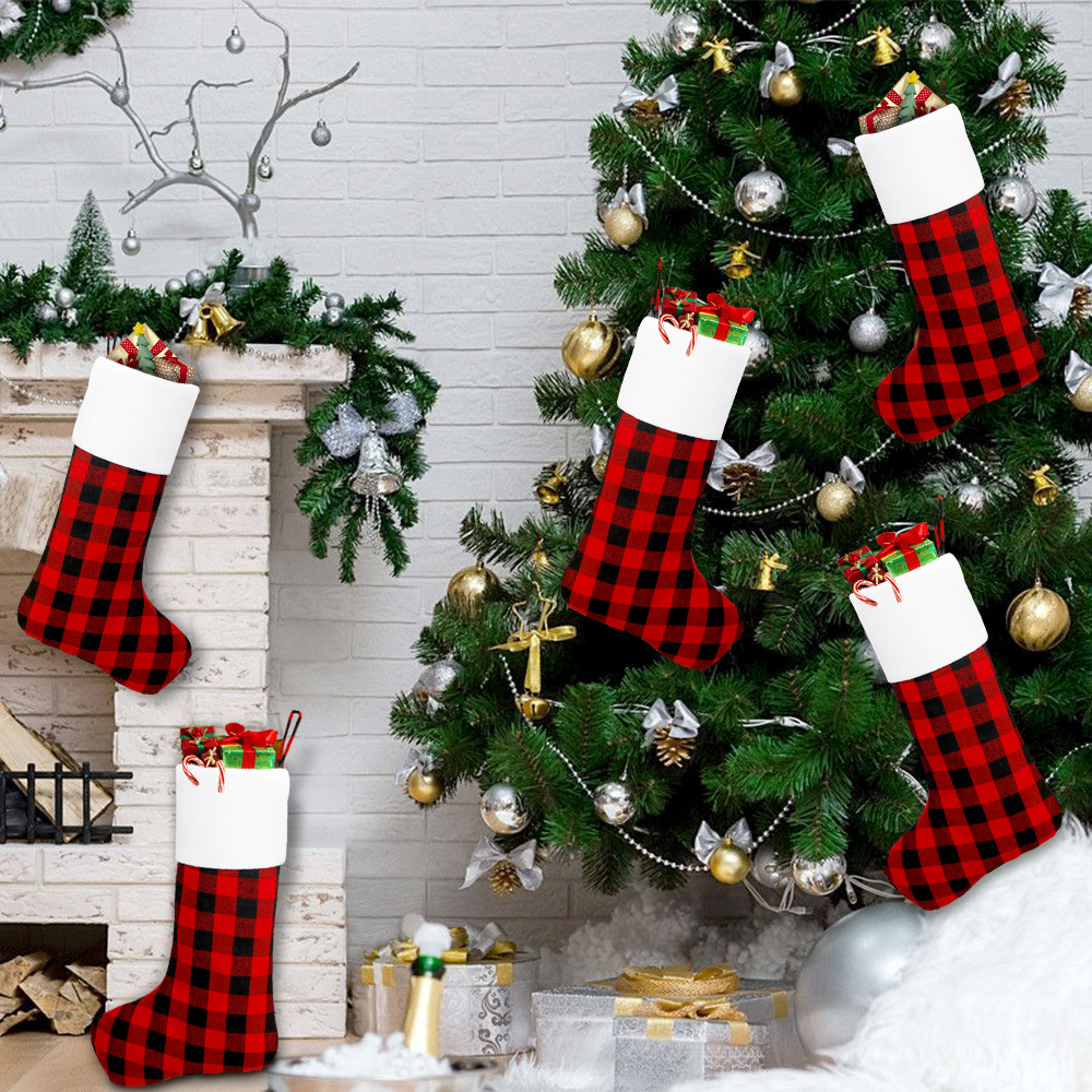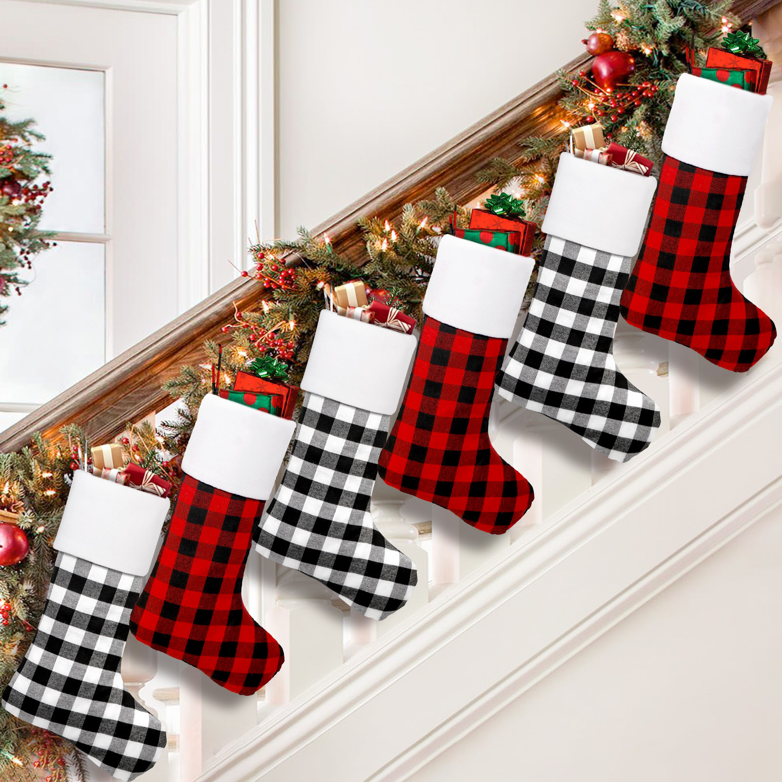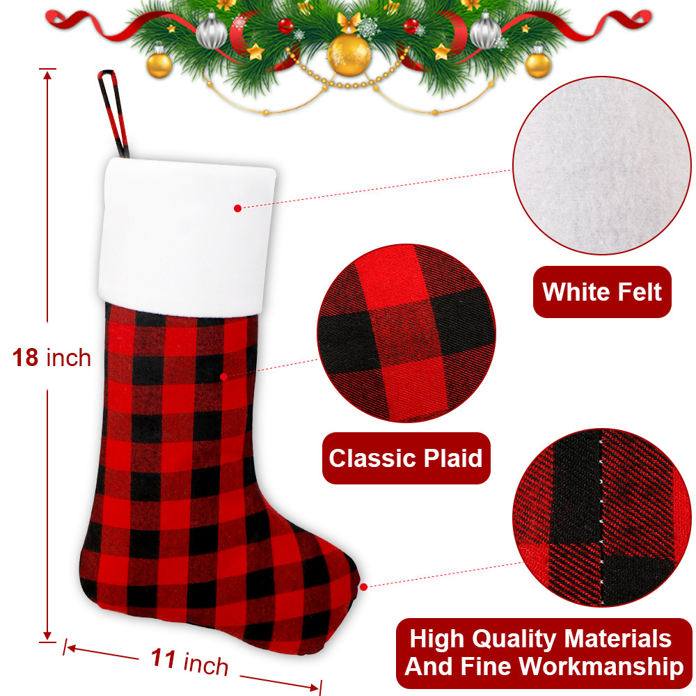 6pcs Large Christmas Stockings - Extra Long 18x11 Inch Red & Black Plaid Stockin
