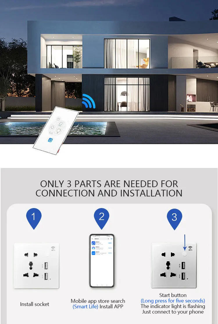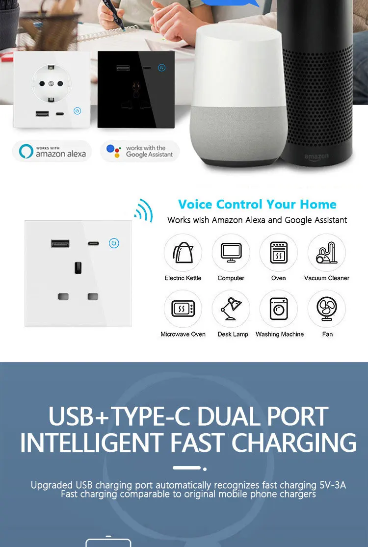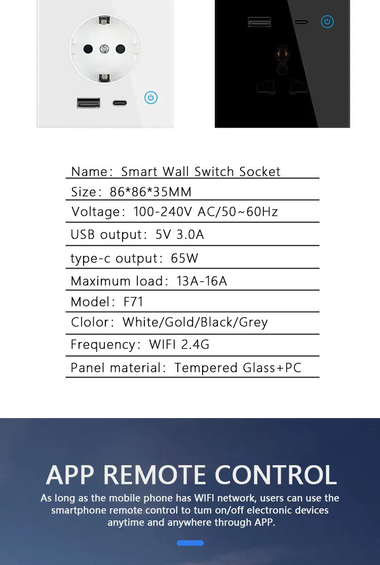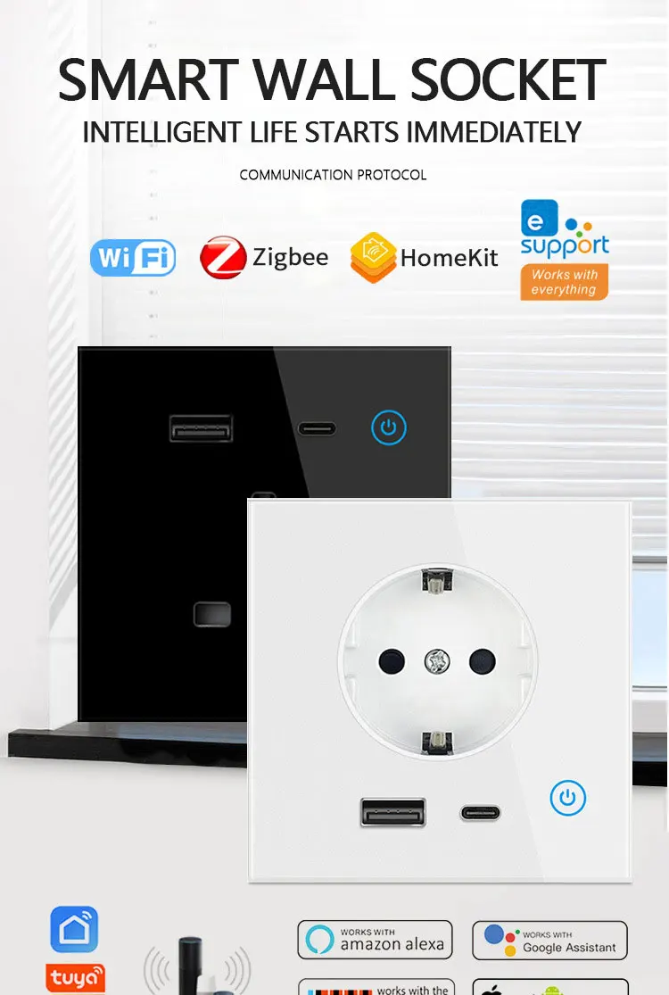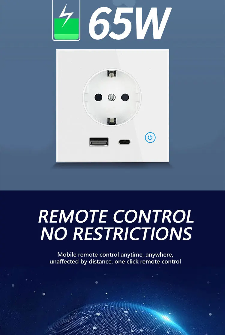 86 Type E-Micro WiFi Tuya Smart Home Eu Standard USB + Type-c 65W Fast Charging