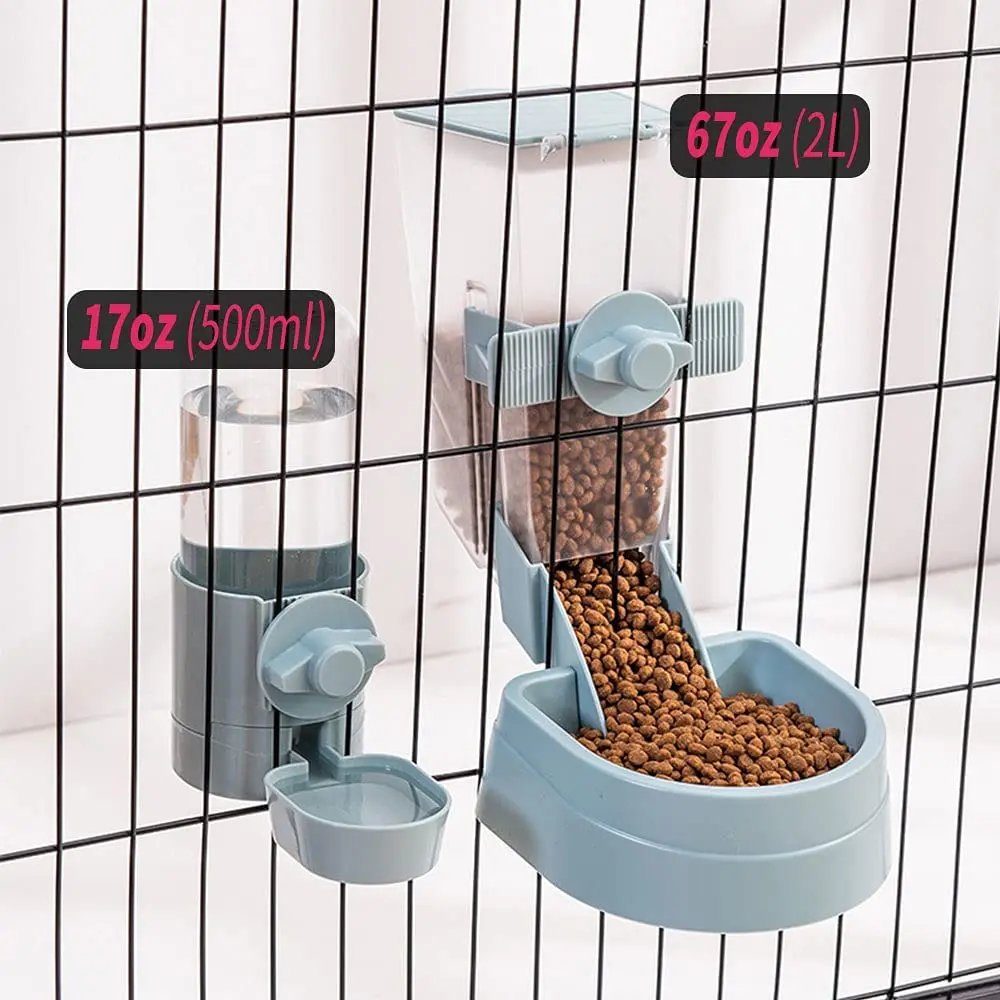 Automatic Pet Feeder Cage Hanging Bowl Water Bottle Food Container Dispenser For