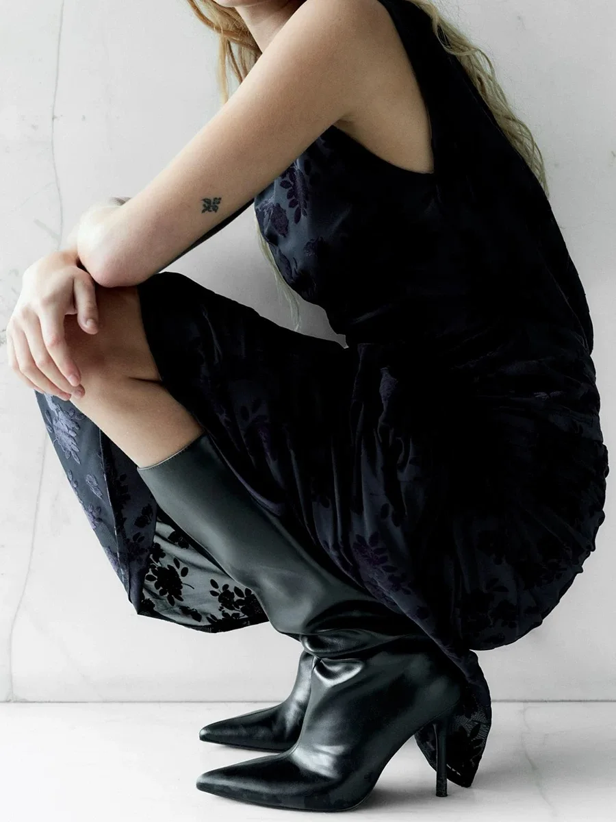 Autumn And Winter New Women's Knee High Boots Sexy Pointed Slim Fit High Heels L