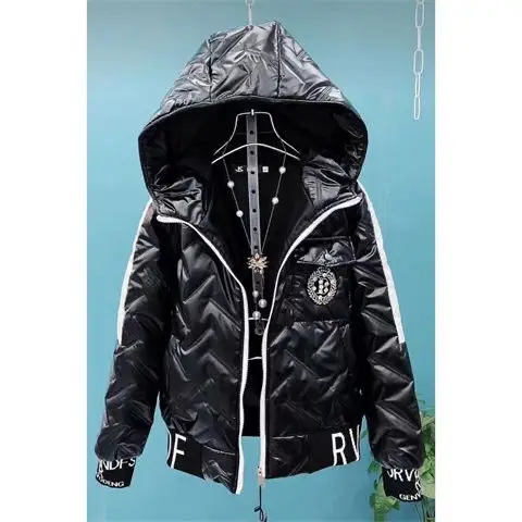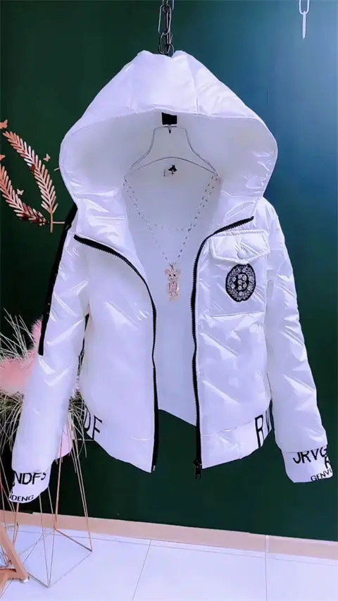 Autumn Winter 2024 New Women Jacket Bright Cotton Clothes Parkas Fashion Hooded