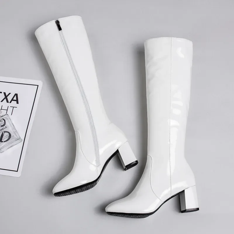 Autumn Winter Women‘s High Knee Boots Patent Leather Knee High Boots Women Wat