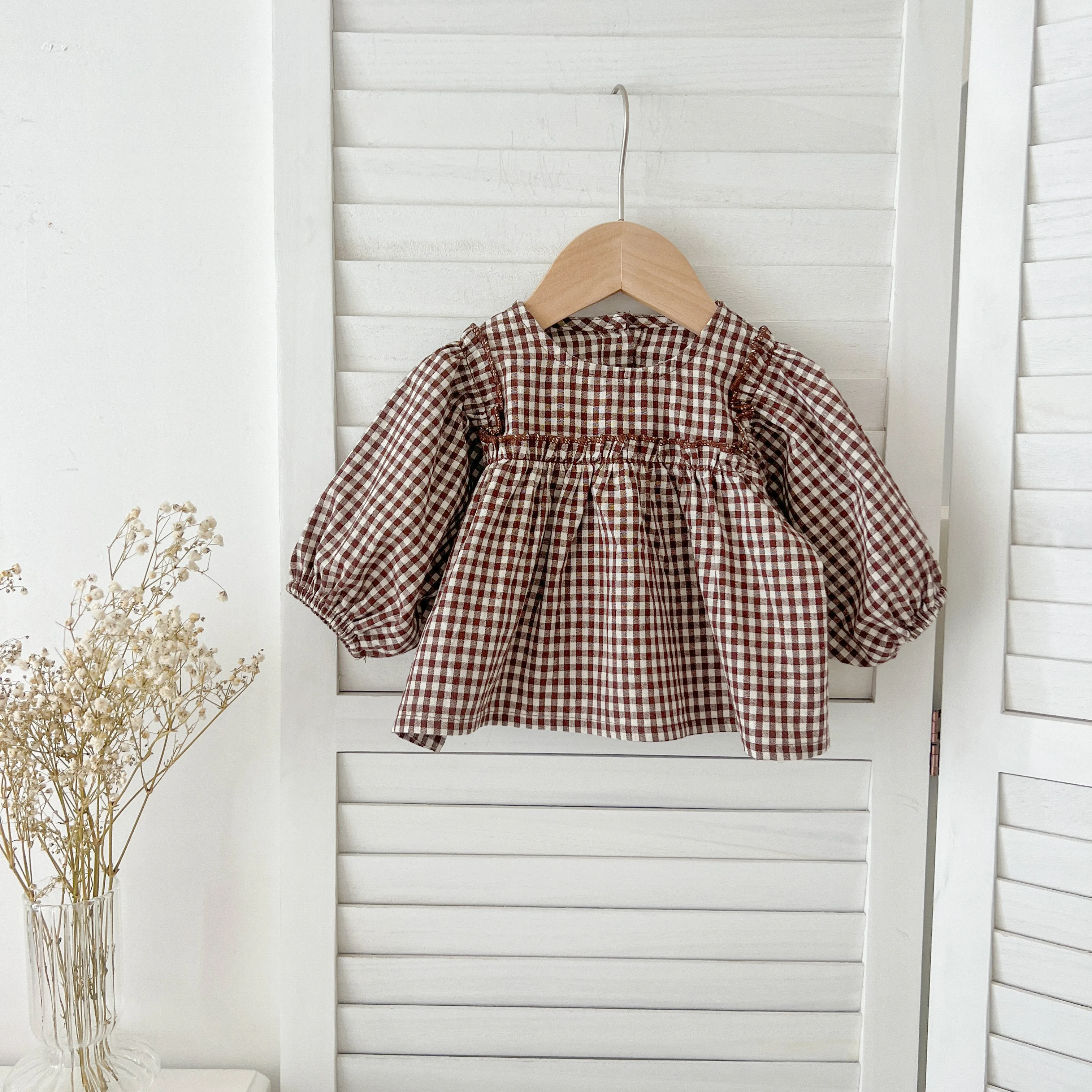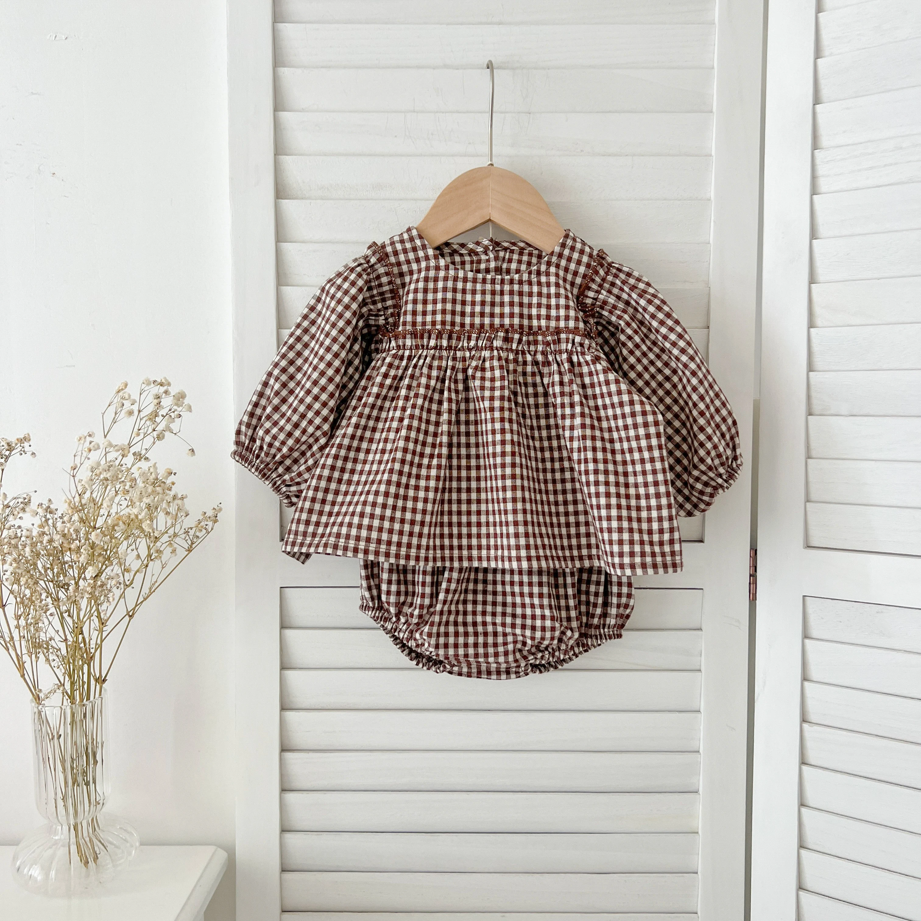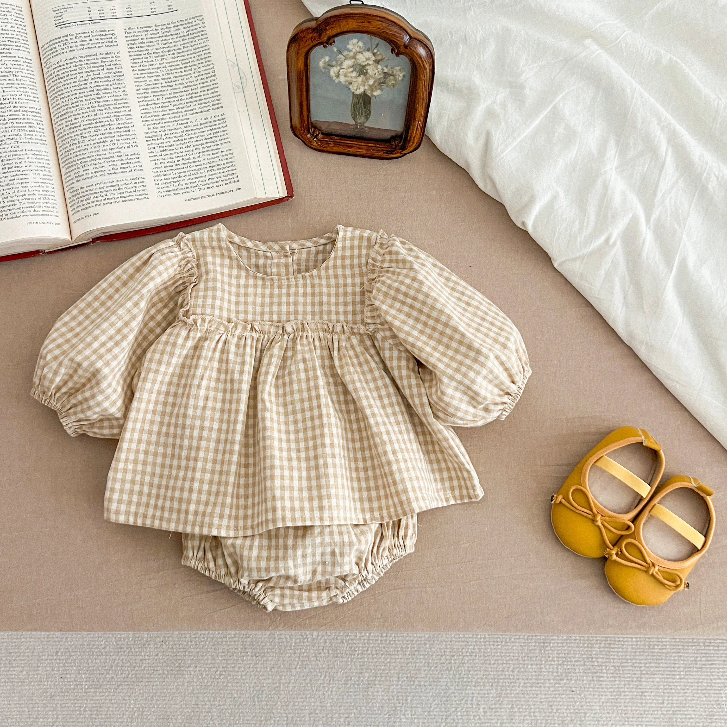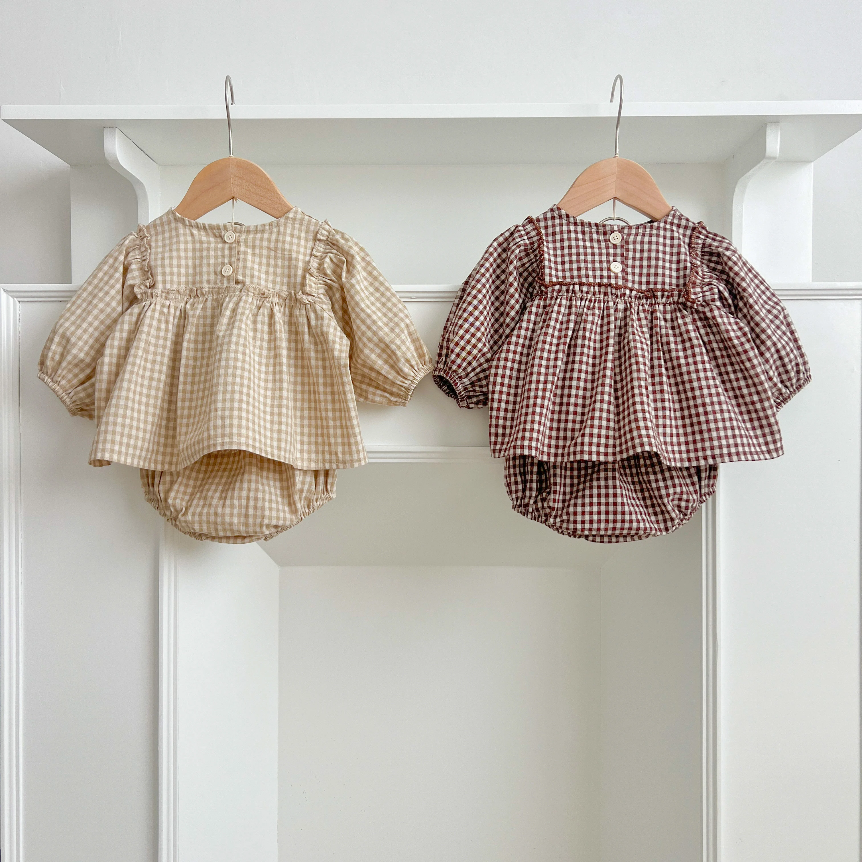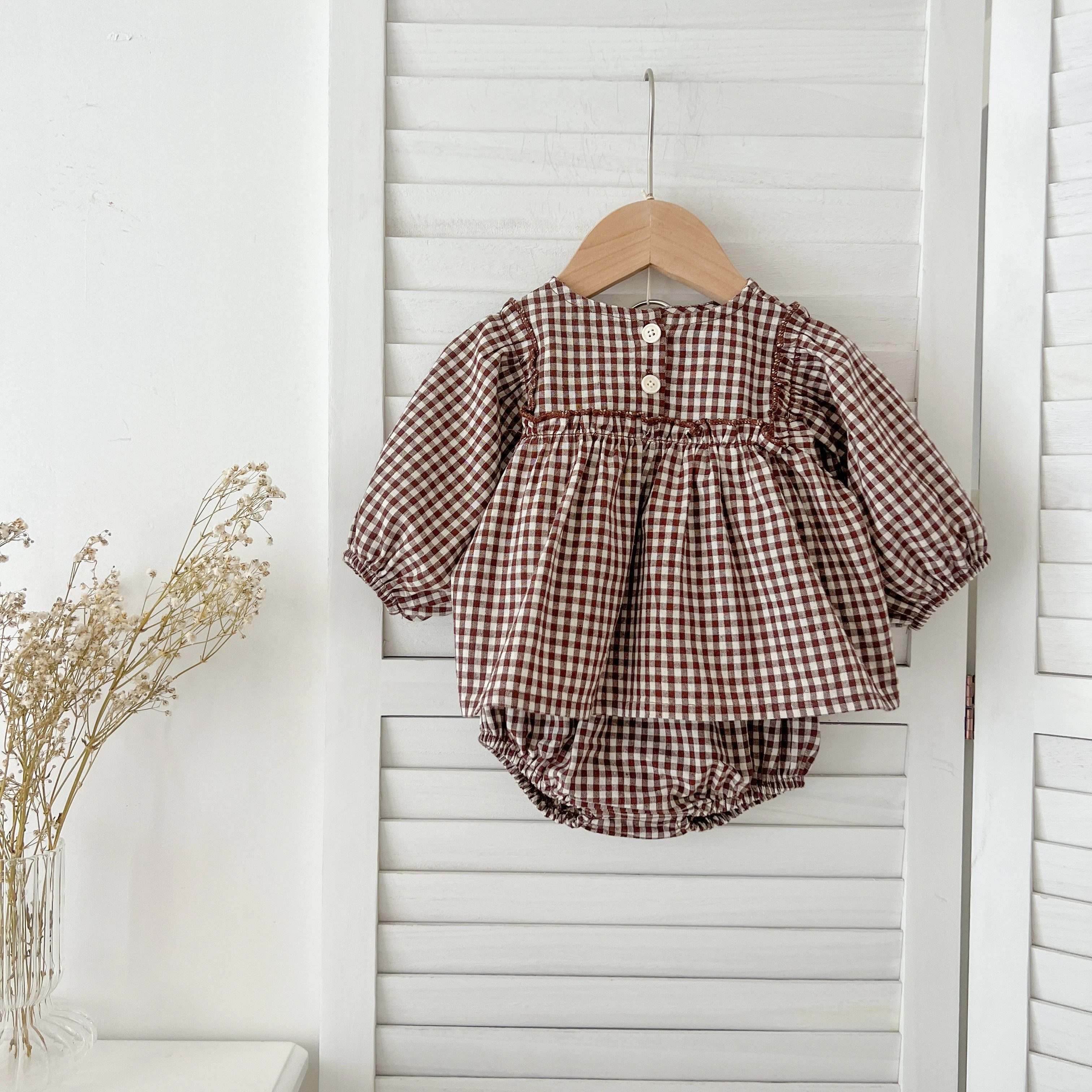Baby Cotton Clothing Sets 0-2Yrs Autumn New Baby Girl Clothes Set Plaid Tee And Bloomer 2pcs Toddler Kids Vest + Shorts SuitSize:66(3M) 73(6M) 80(9/12M) 90(18/24M) 100(3T) 110(4T)