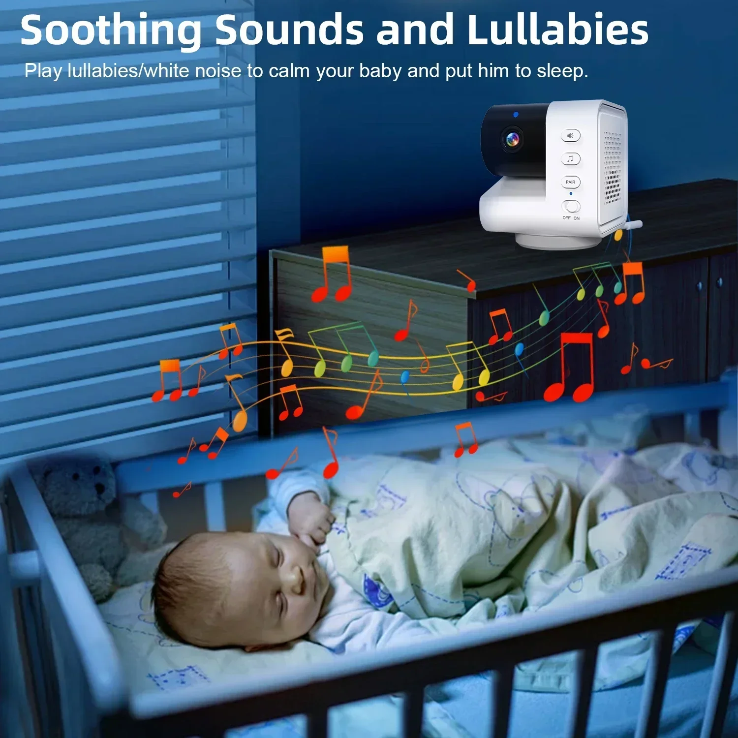 * Built-in 8 fascinating lullaby, the baby monitor support remotely open, make the baby happy fall in sleep.