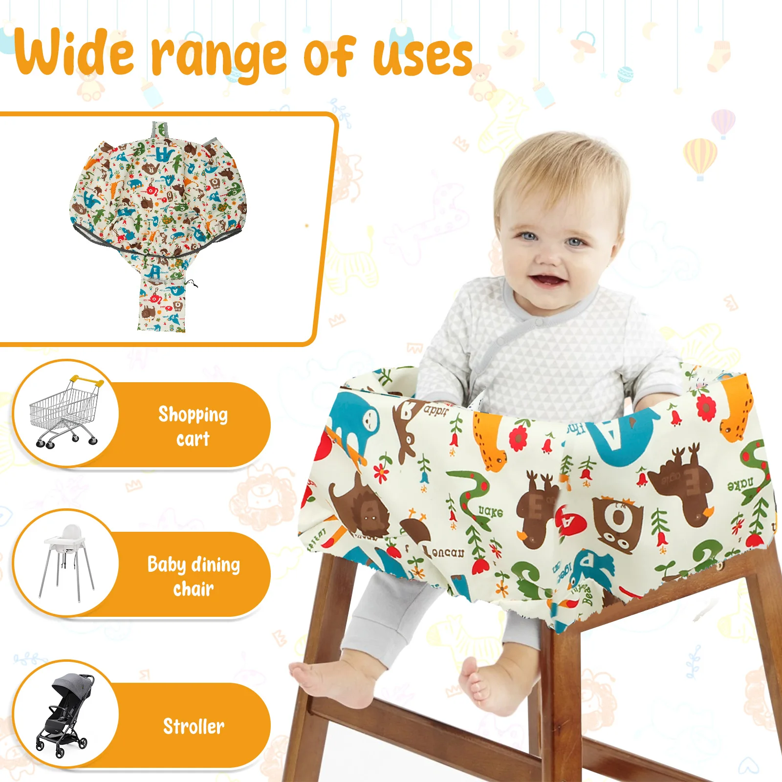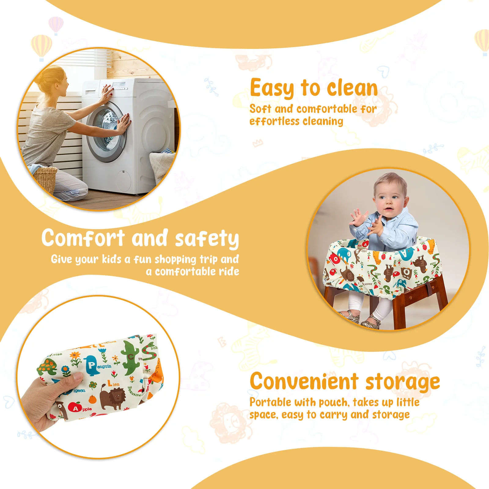 Cartoon Style: Our cartoon style shopping cart cover is designed with cute patterns that make it easier to attract your child's attention, ensuring safe use while bringing fun and enhancing the shopping experience