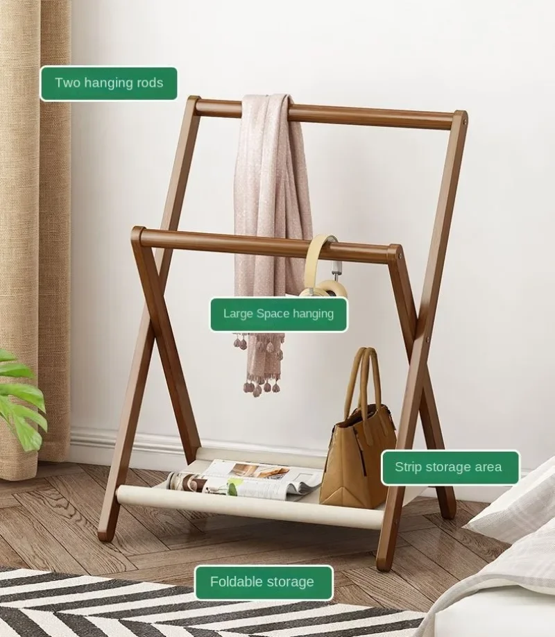 Bedroom bed floor coat and hat rack Bedroom night sleeping temporary clothes folding small hanger storage folding hanging