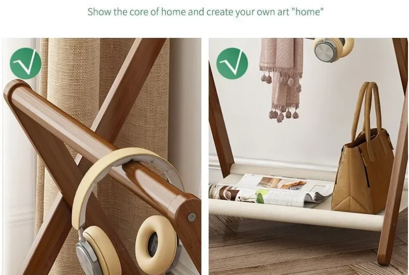 Bamboo Coat Racks Simple Modern Standing Clothes Hanger Clothing Storage Organiz