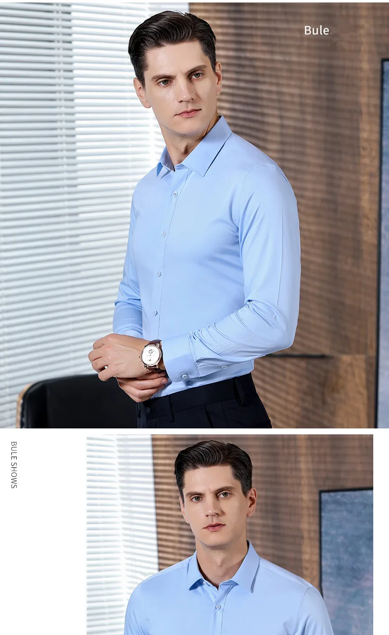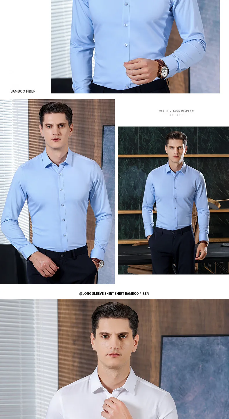 Bamboo Fiber Stretch Men's Social Shirts Long Sleeve Anti-Wrinkle Slim Fit Casua