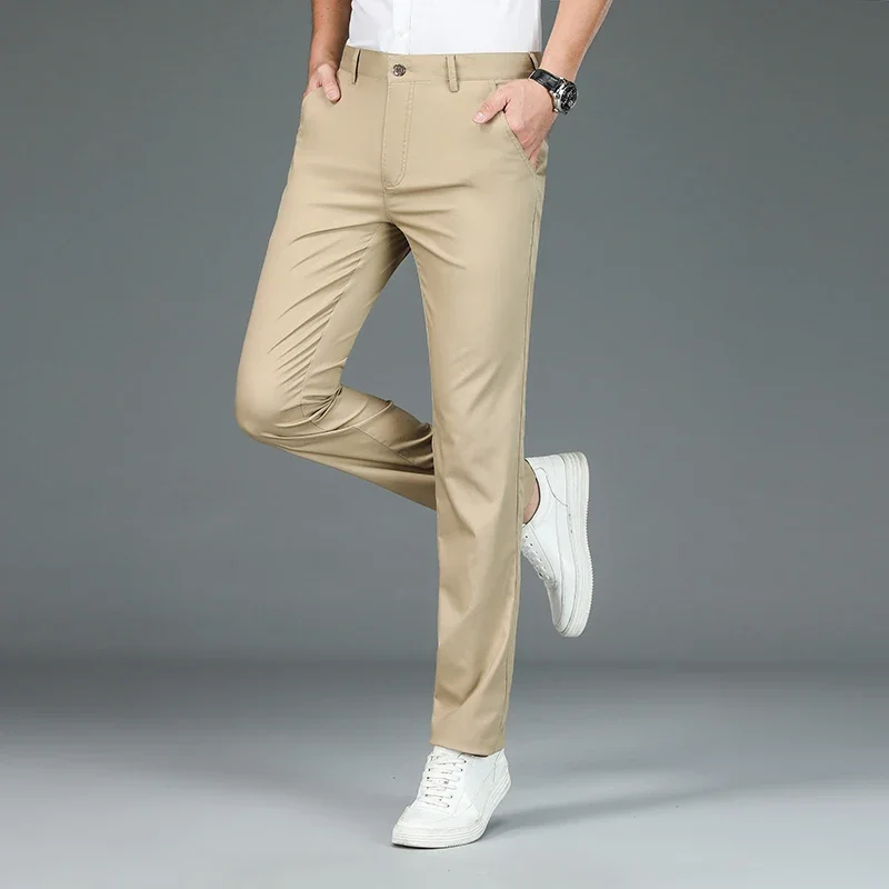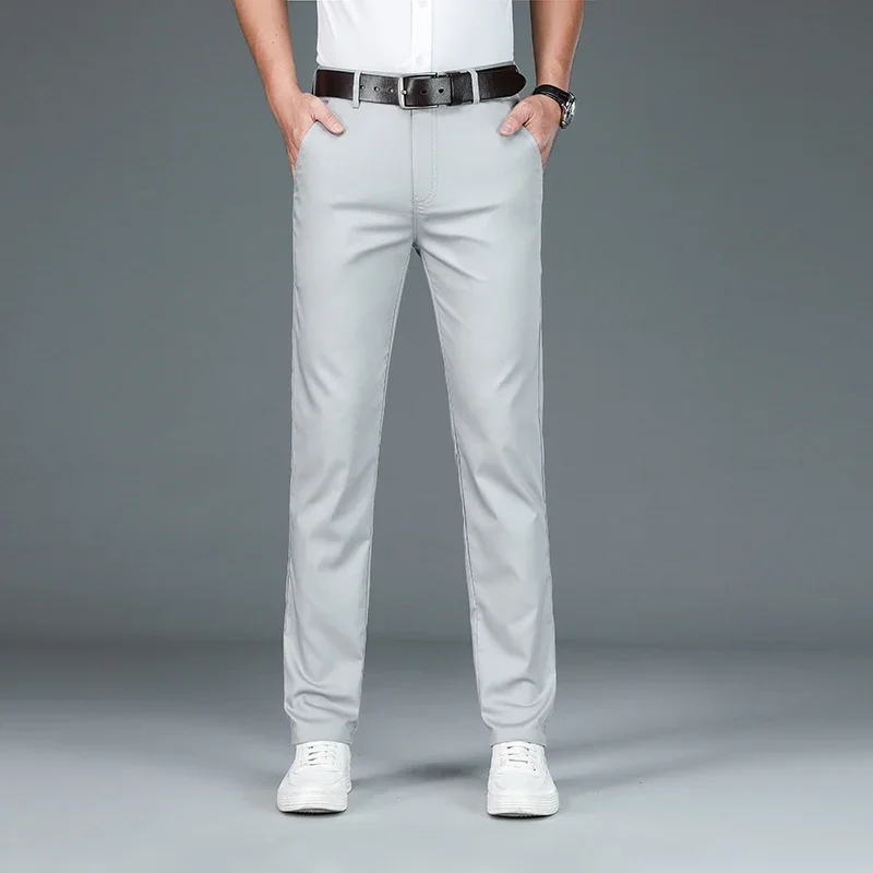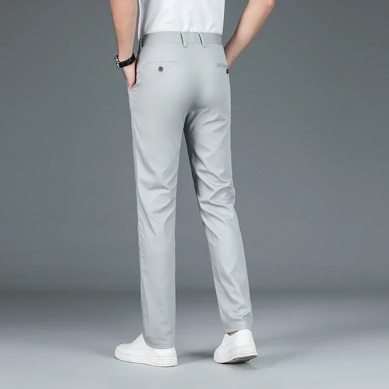 Bamboo Fiber Summer Thin Casual Pants Classic Solid Color Breathable Elastic Bus