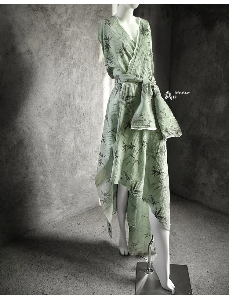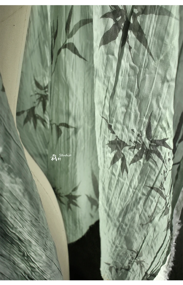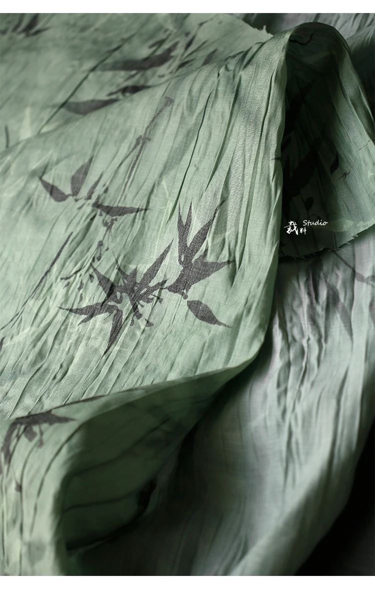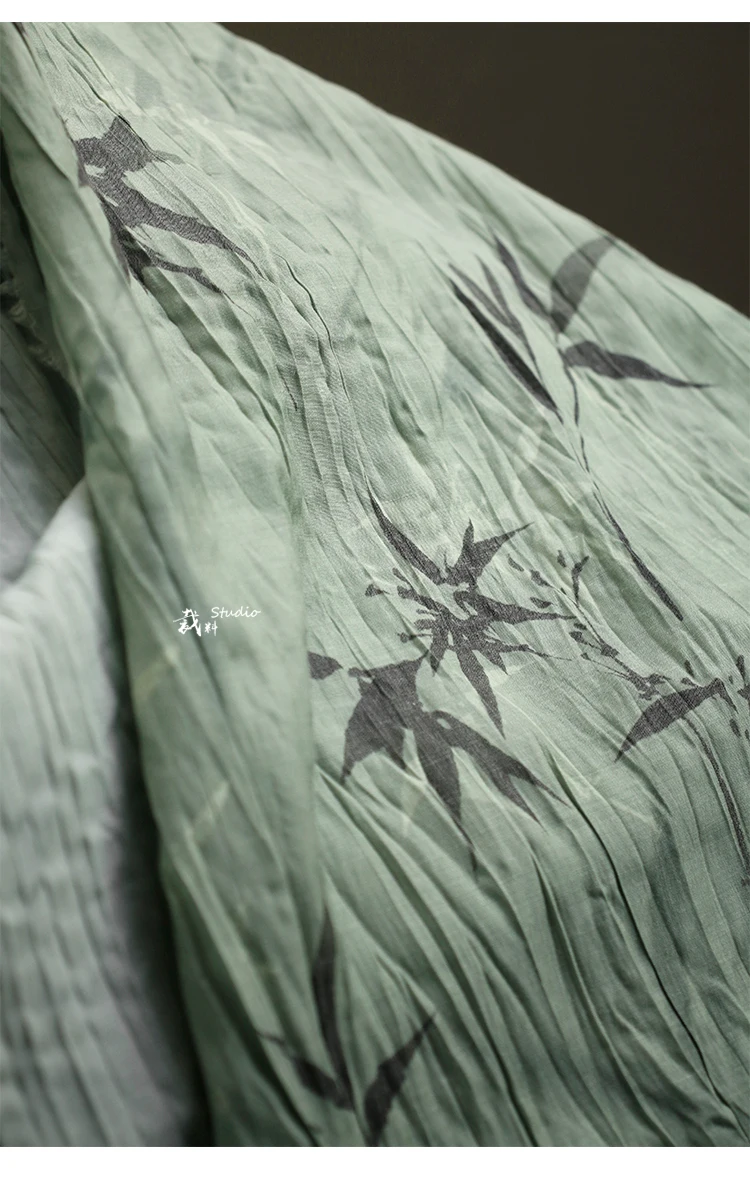 Bamboo Leaf Green Original Retro Folded Green National Style Fabric Hanfu New Ch