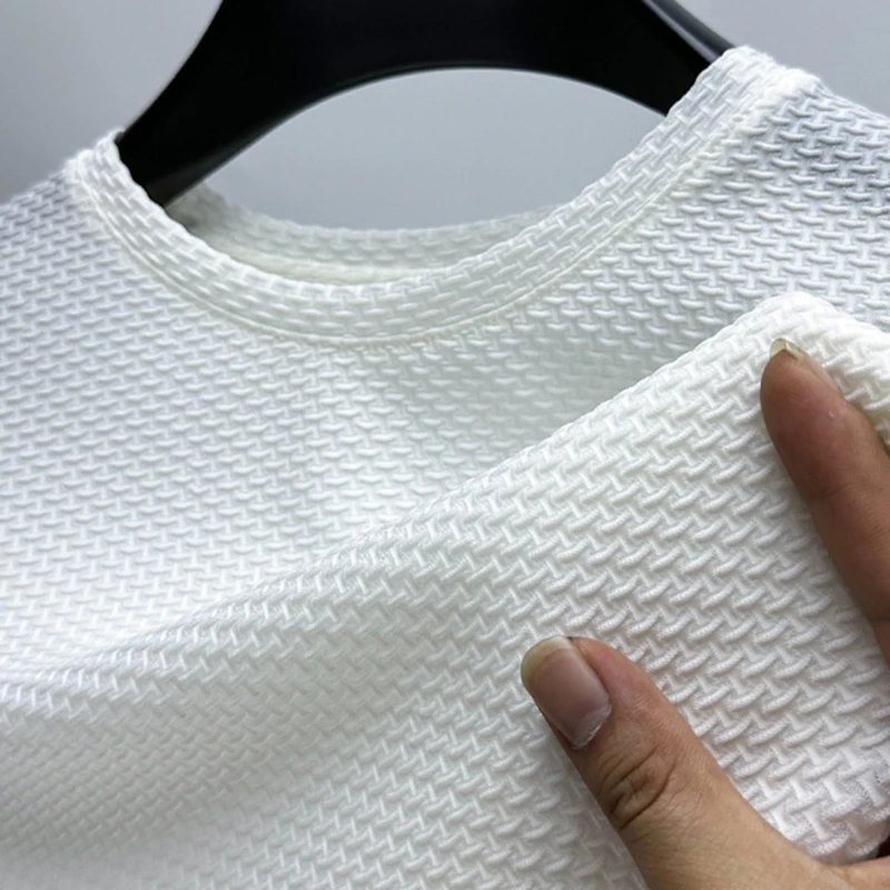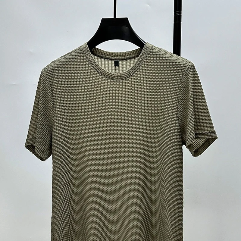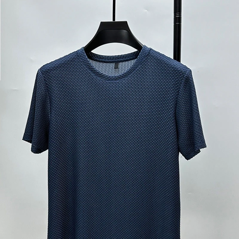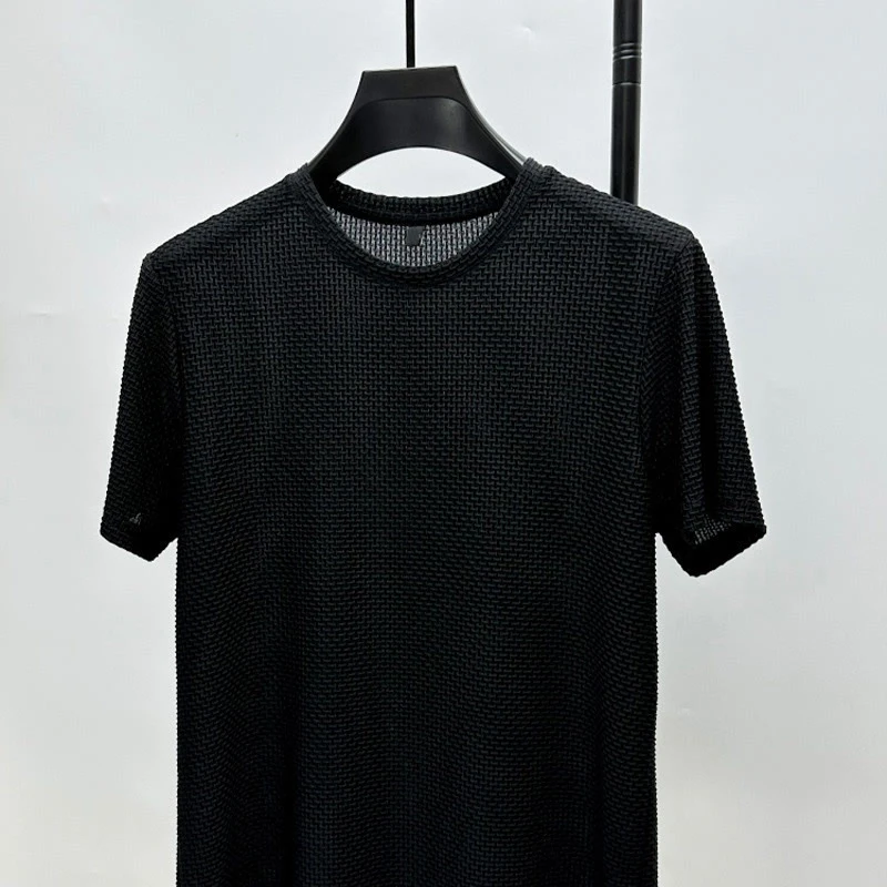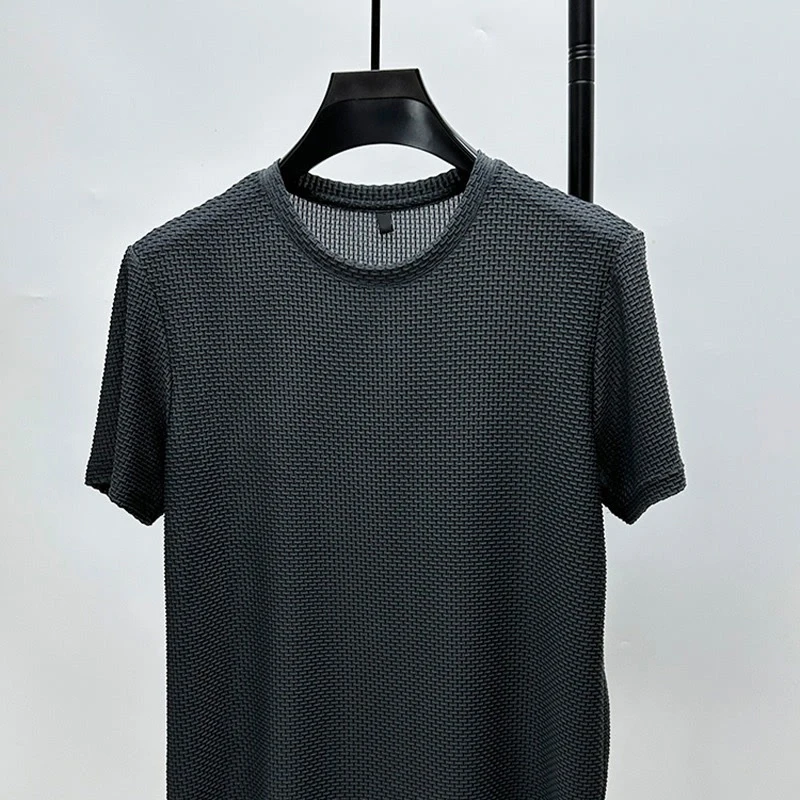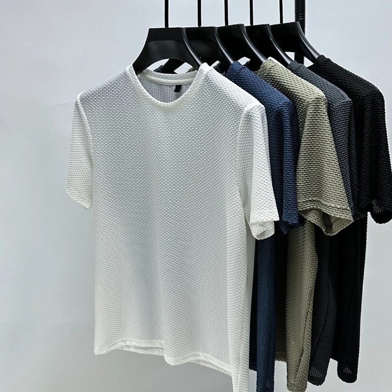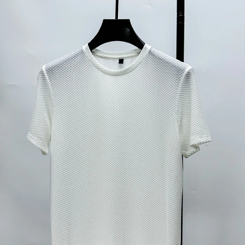Bamboo Mesh Ice Silk T-Shirt Men's Short Sleeve Tee Summer Solid Color Cool Brea