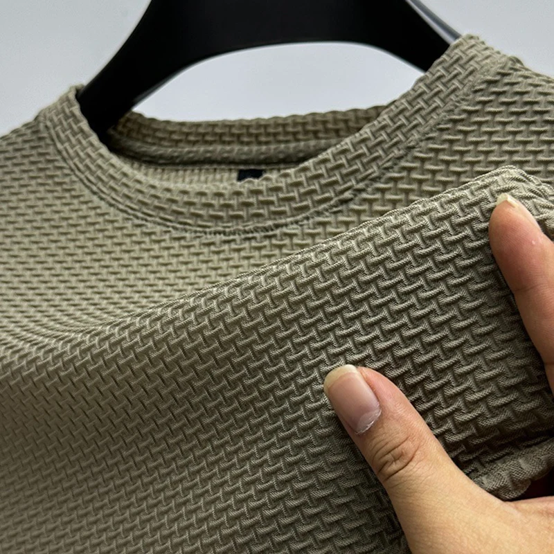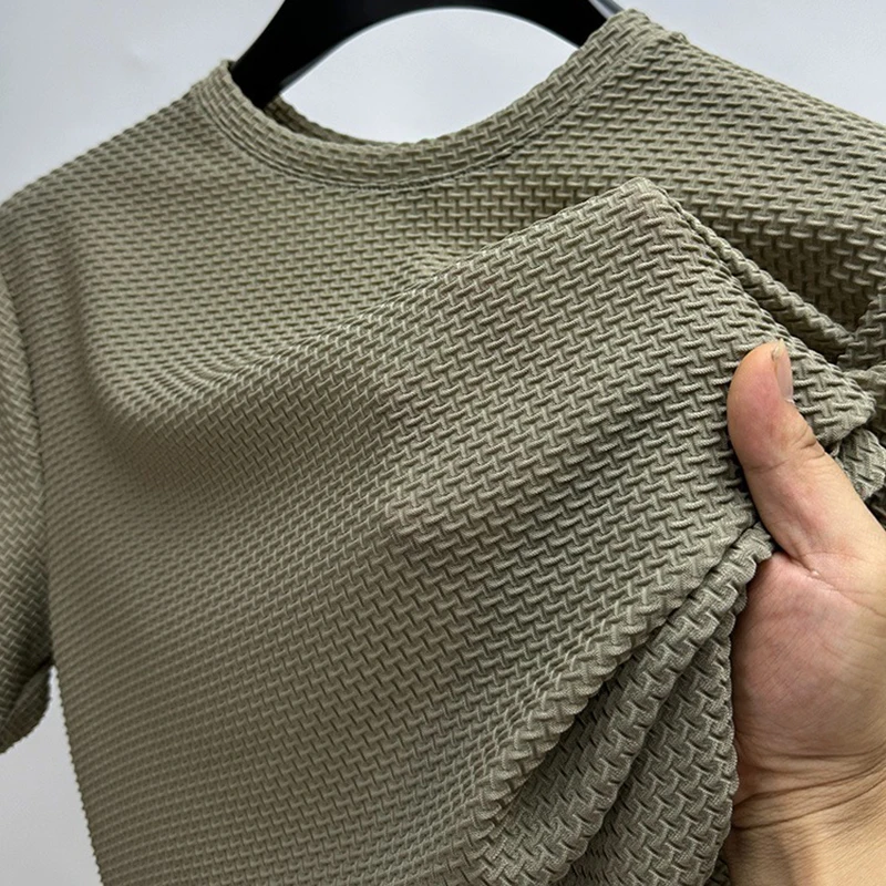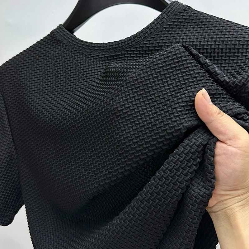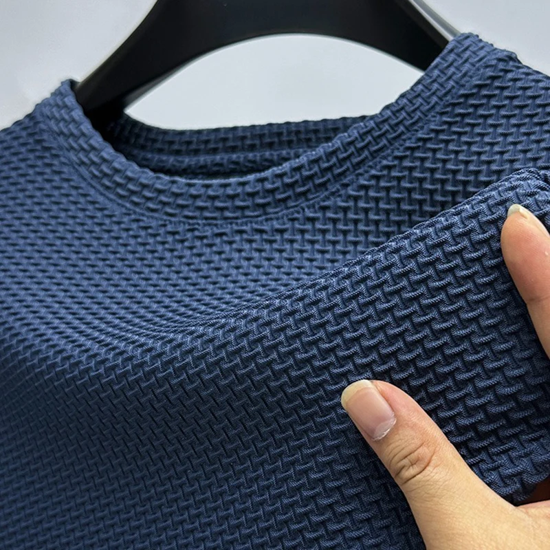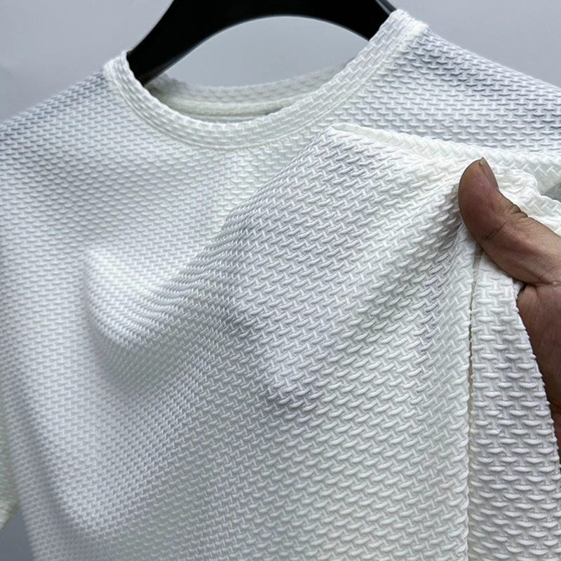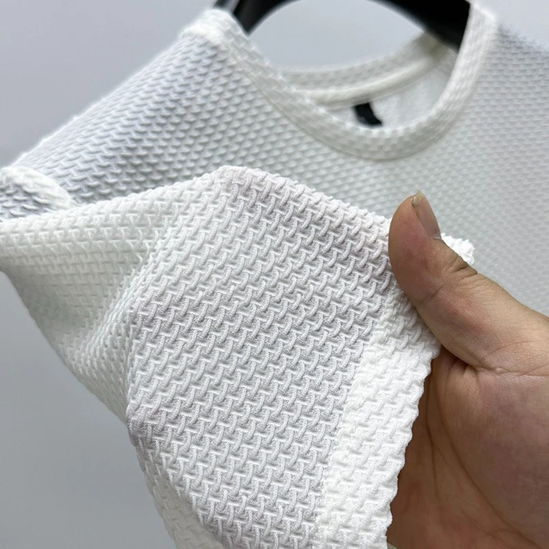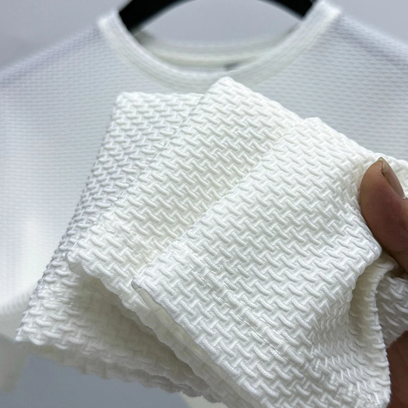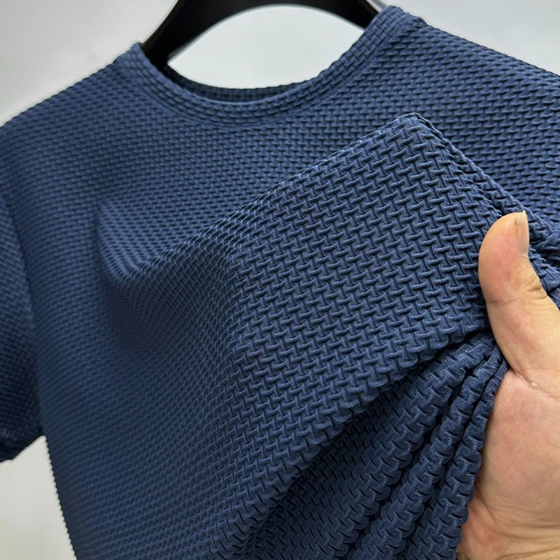 Bamboo Mesh Ice Silk T-Shirt Men's Short Sleeve Tee Summer Solid Color Cool Brea