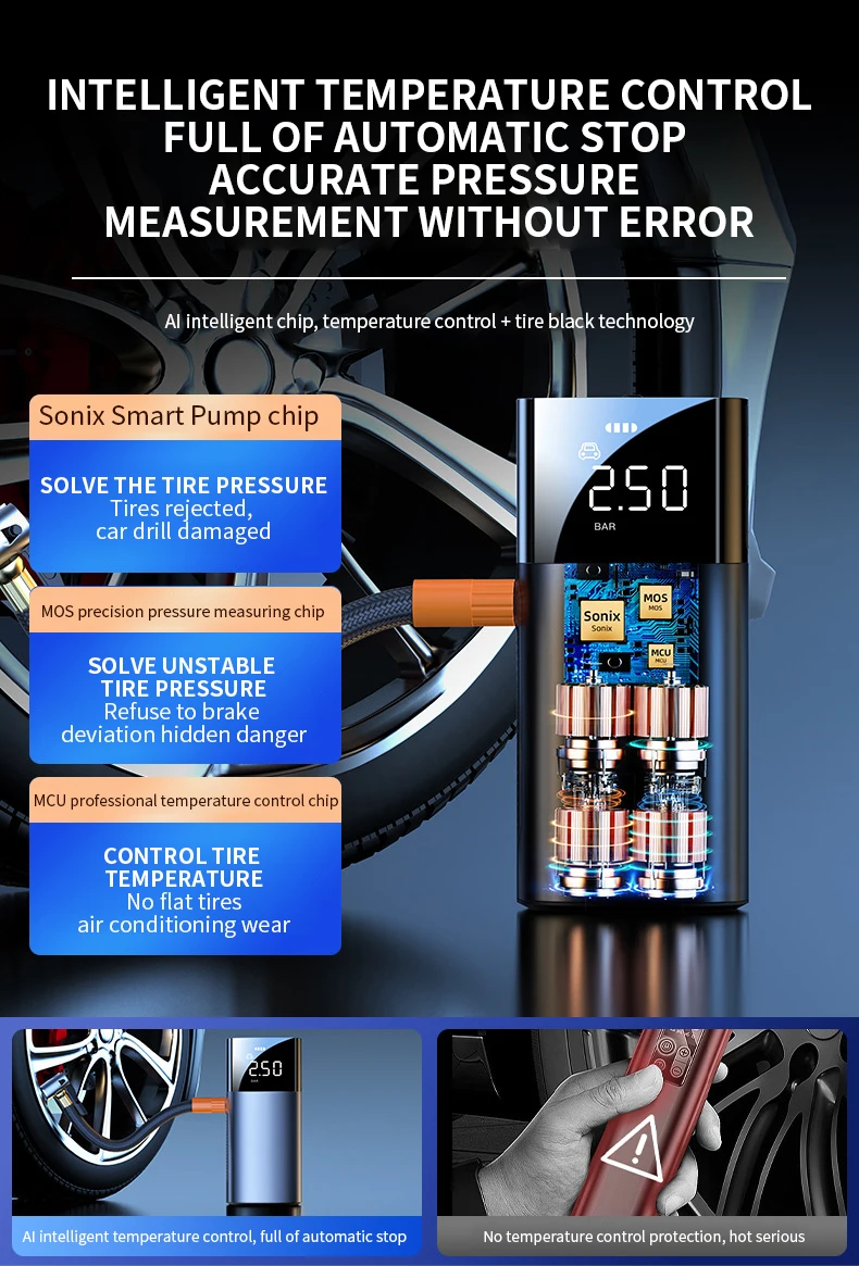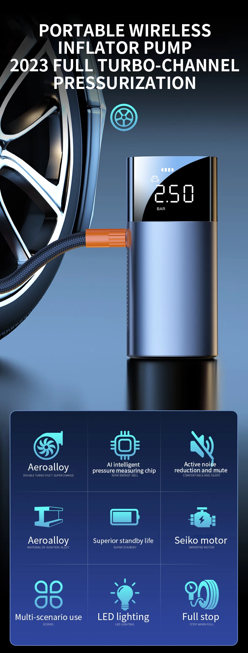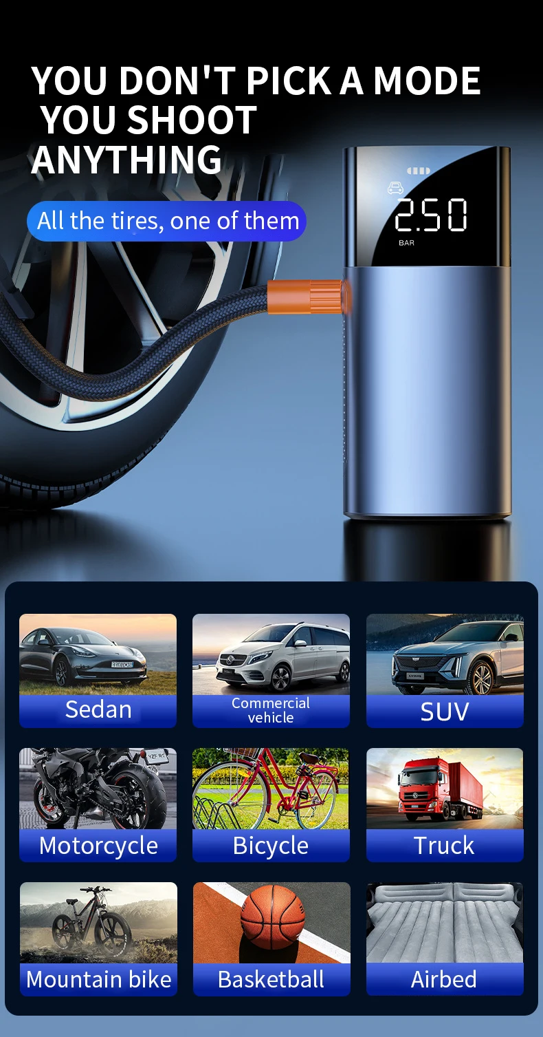 Car Air Compressor Electric Tyre Inflator Pump With LED Lamp For Motorcycle Bicy