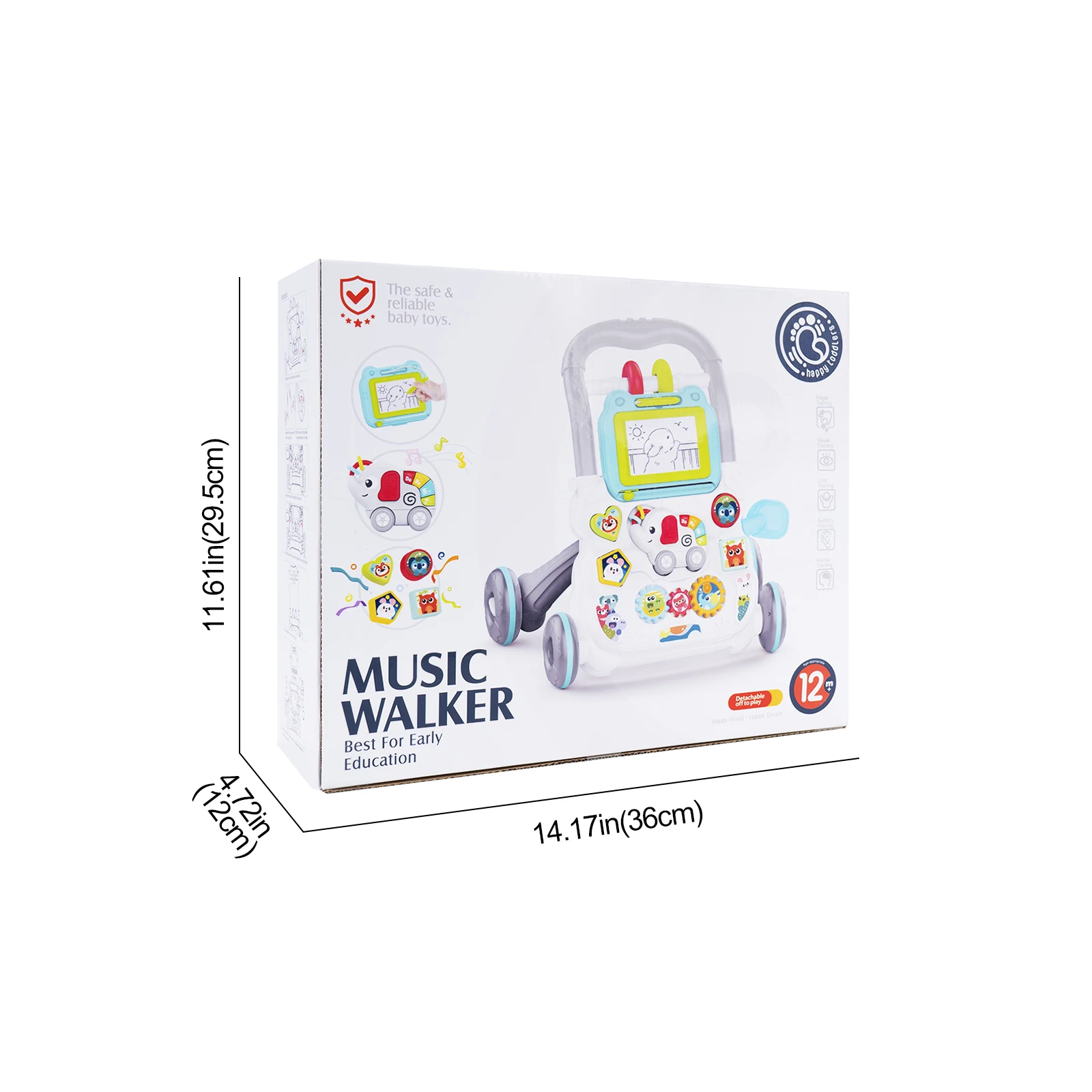 Cartoon Baby Push Walker Toy with Music Drawing Board Multifunction Activity Tod