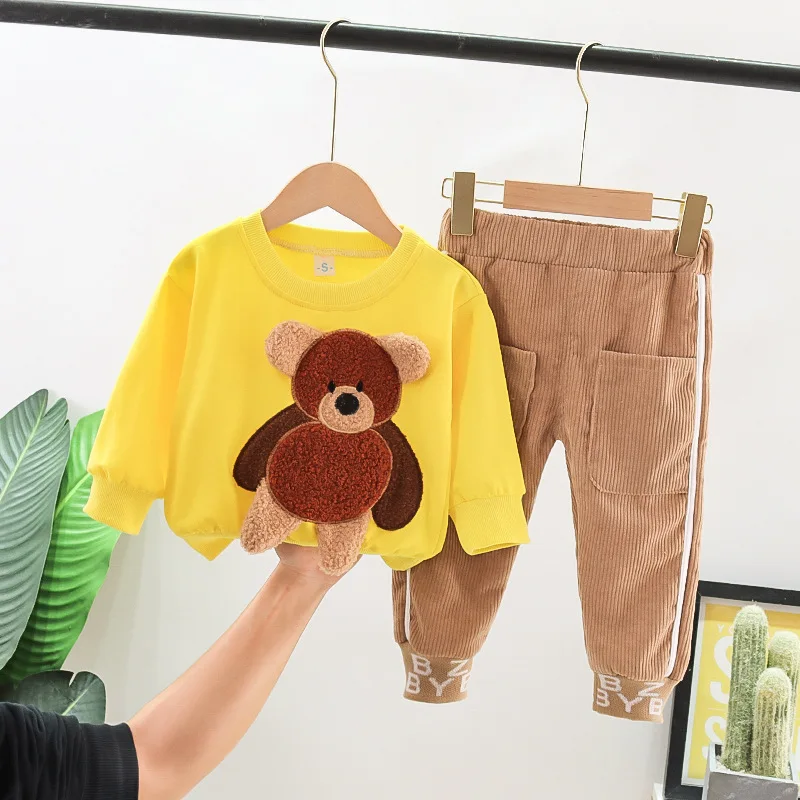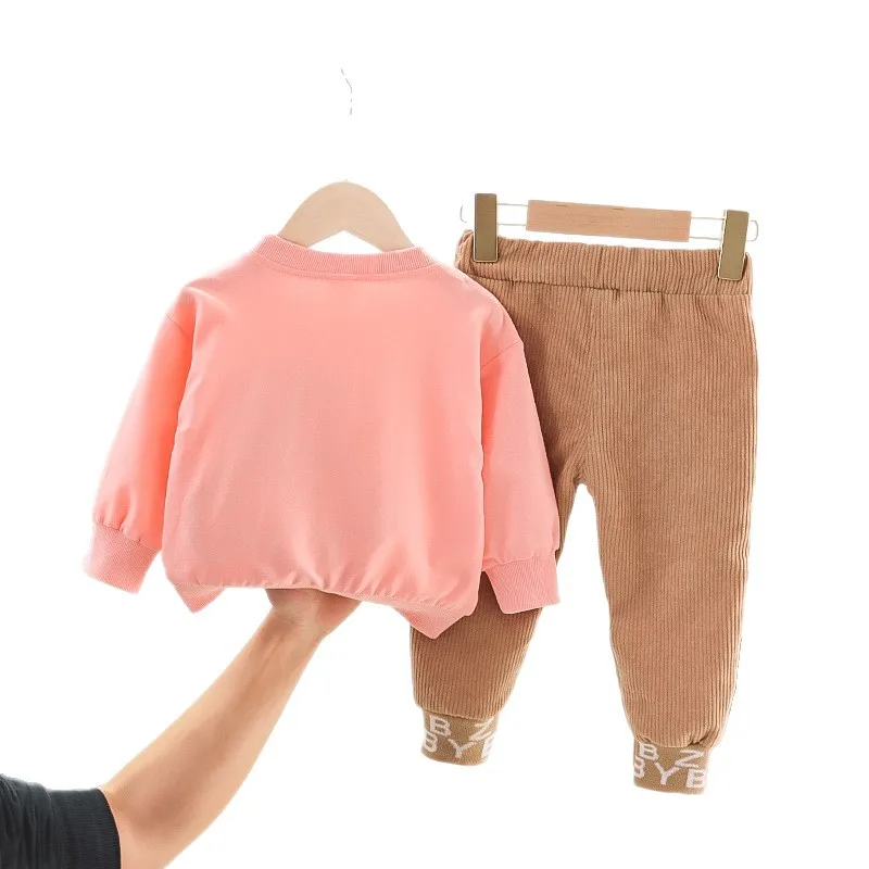 Children Boy Cotton 2piece Suit Girl Cartoon Long Sleeves Tops+pants Clothing Cu