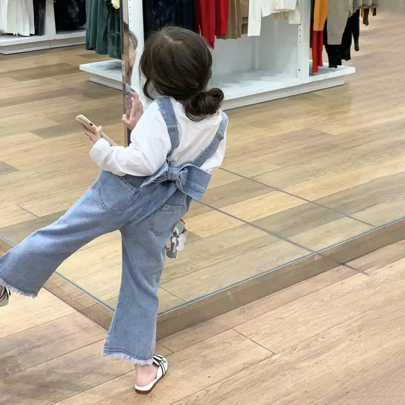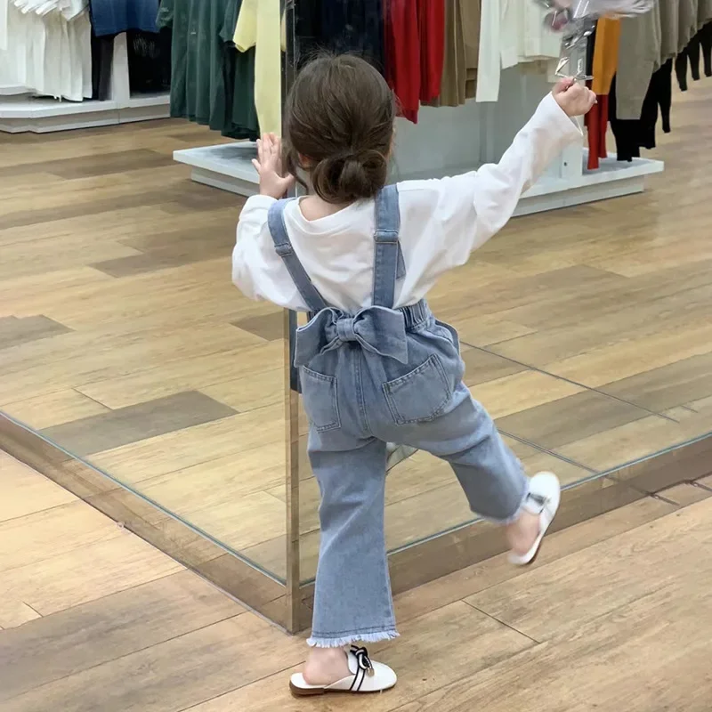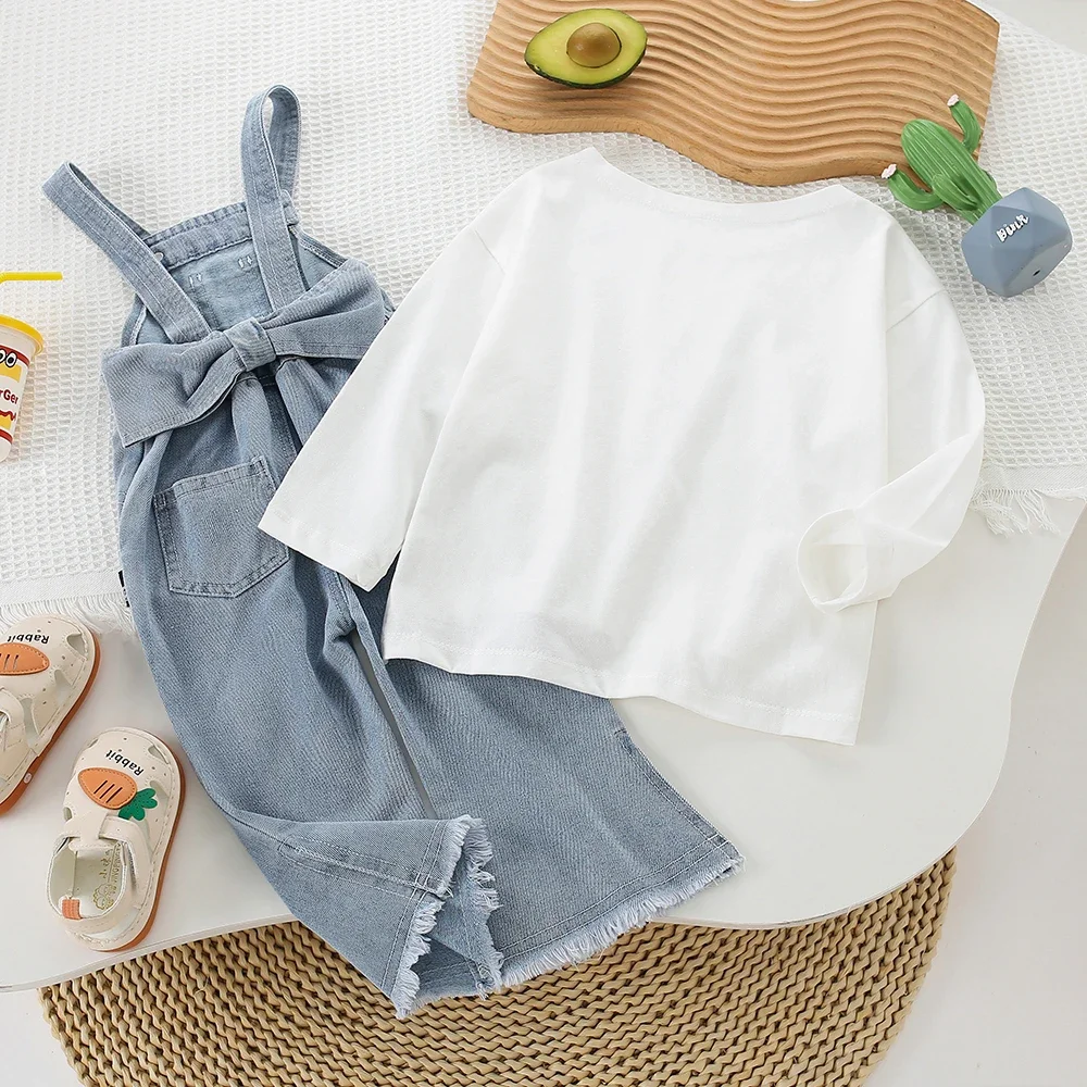 Children's Clothing Sets Long-sleeved T-shirt + Bow Suspenders Jeans Kids Clothe