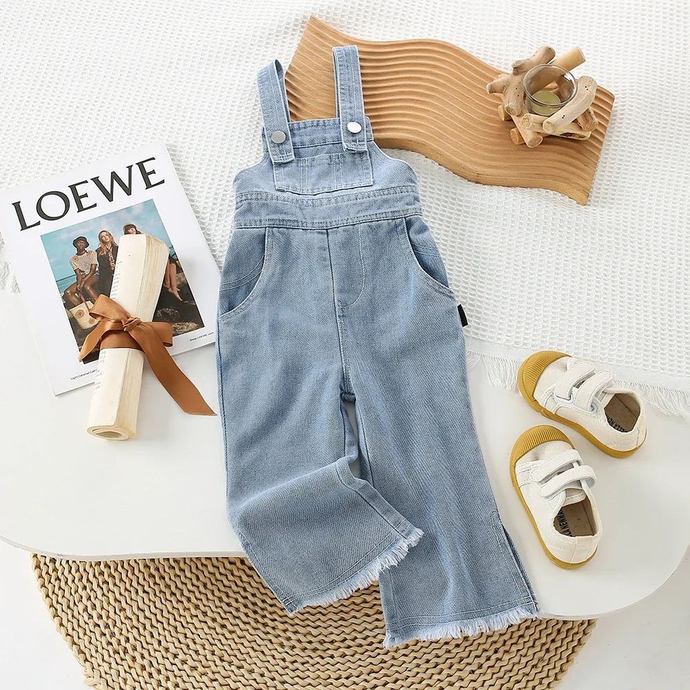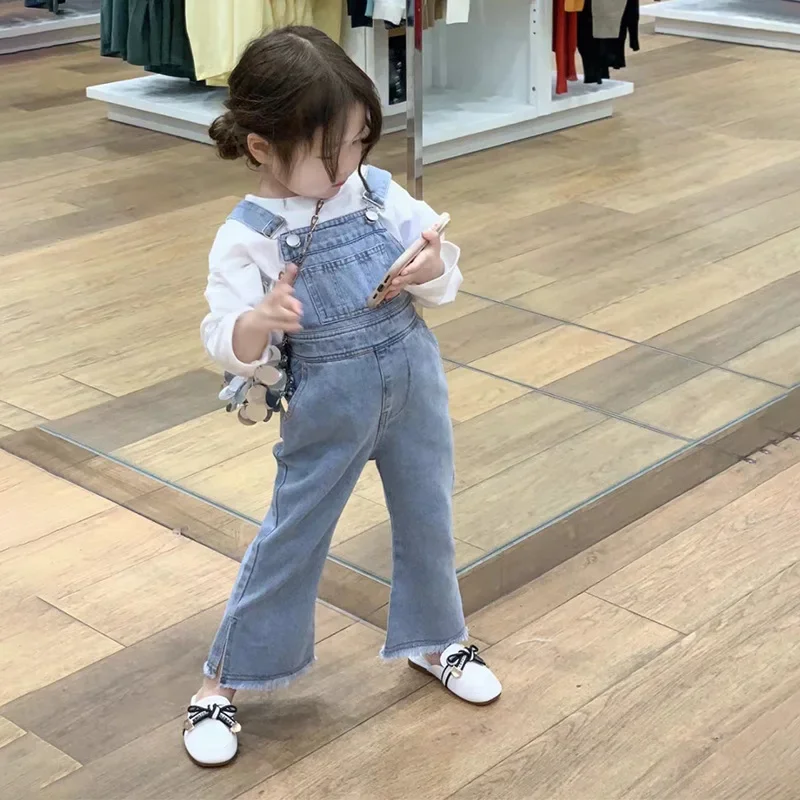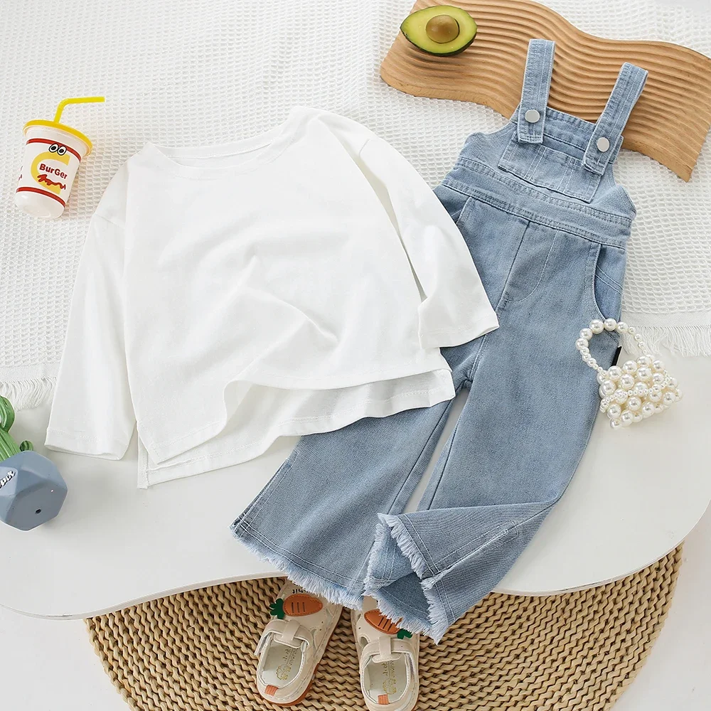 女童套装2023年春装新款儿童牛仔背带裤白色T恤时髦洋气韩版套装