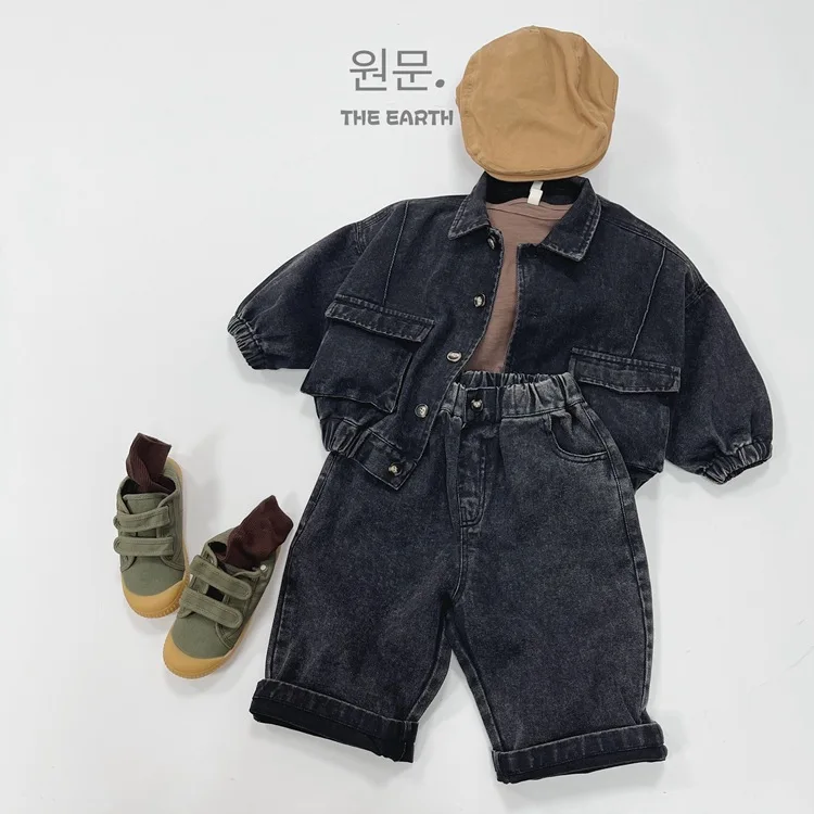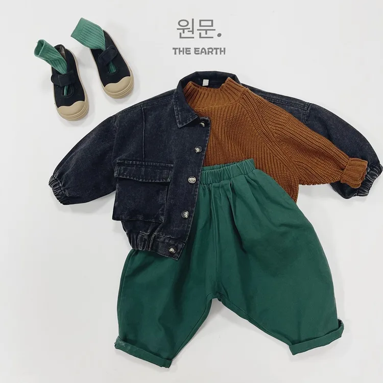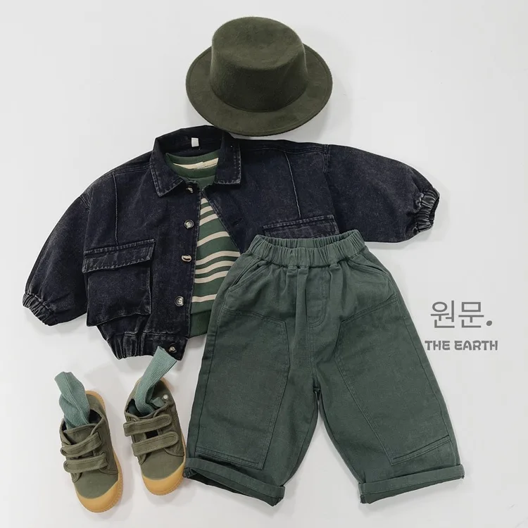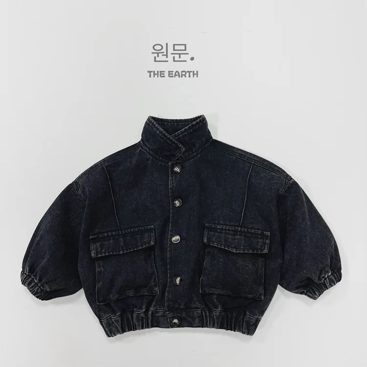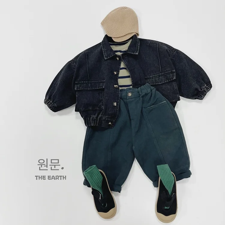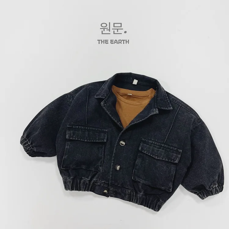 Childrens Boys Denim Jacket Autumn New Korean Solid Color Toddler Boys Cardigan