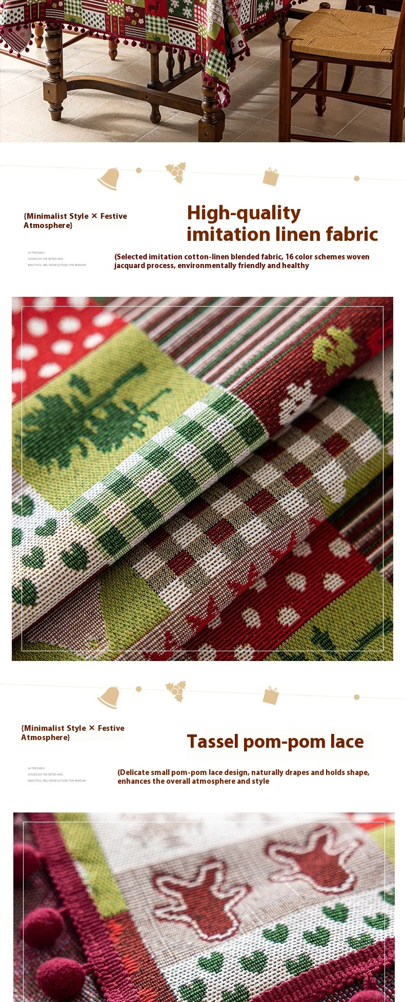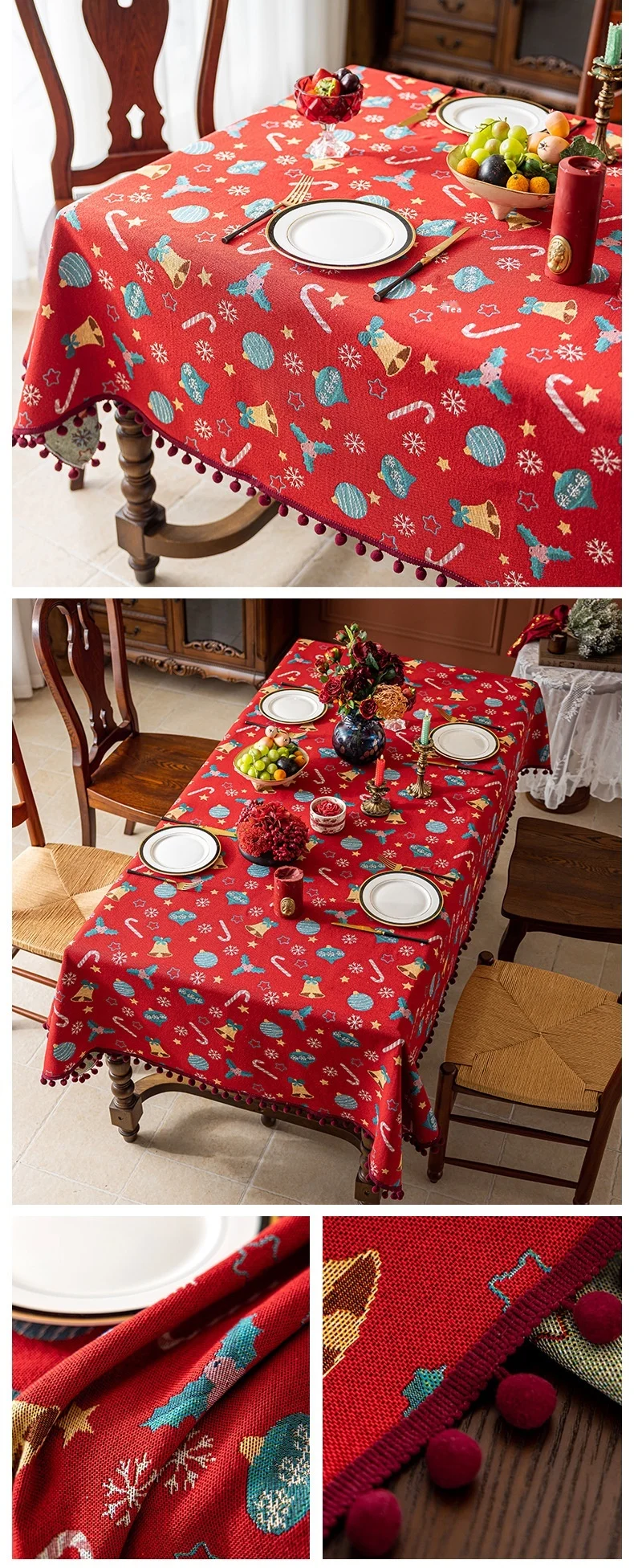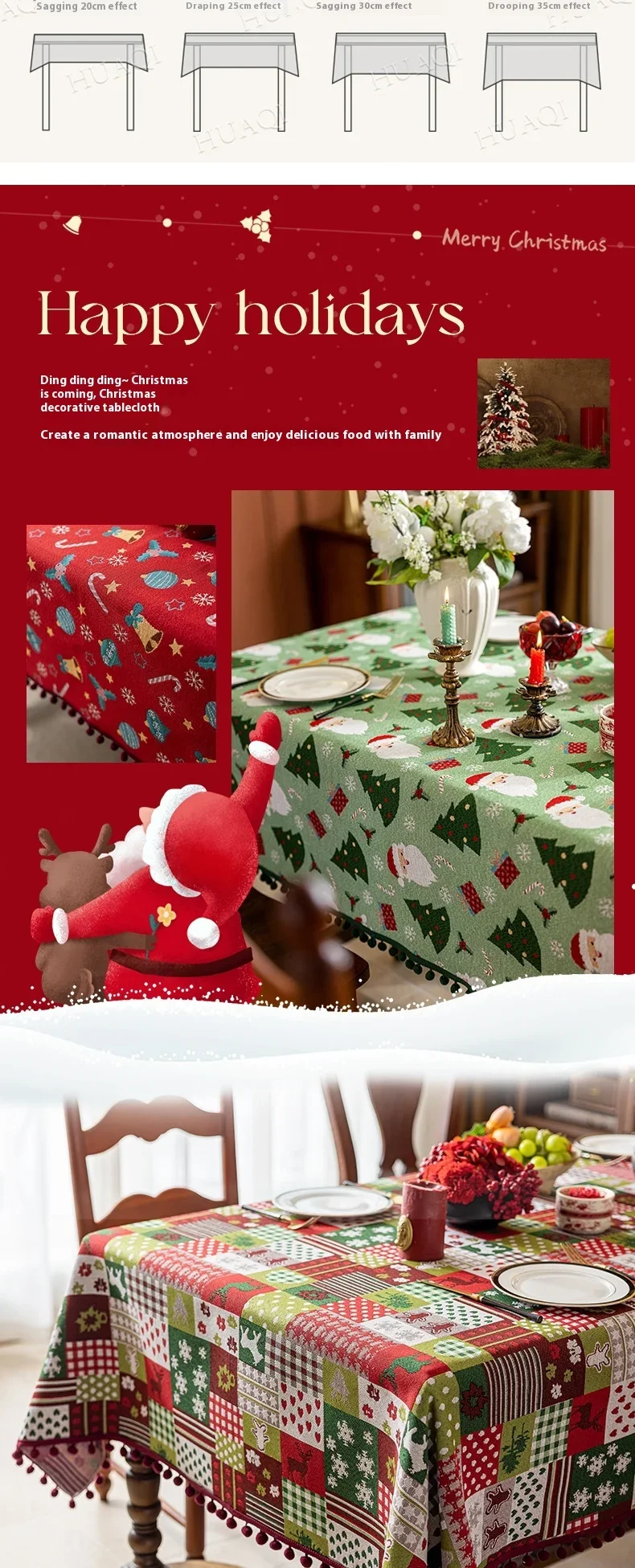 Christmas Decorative Tablecloth for Dining Kitchen Linen Cotton Table Cloth Sant