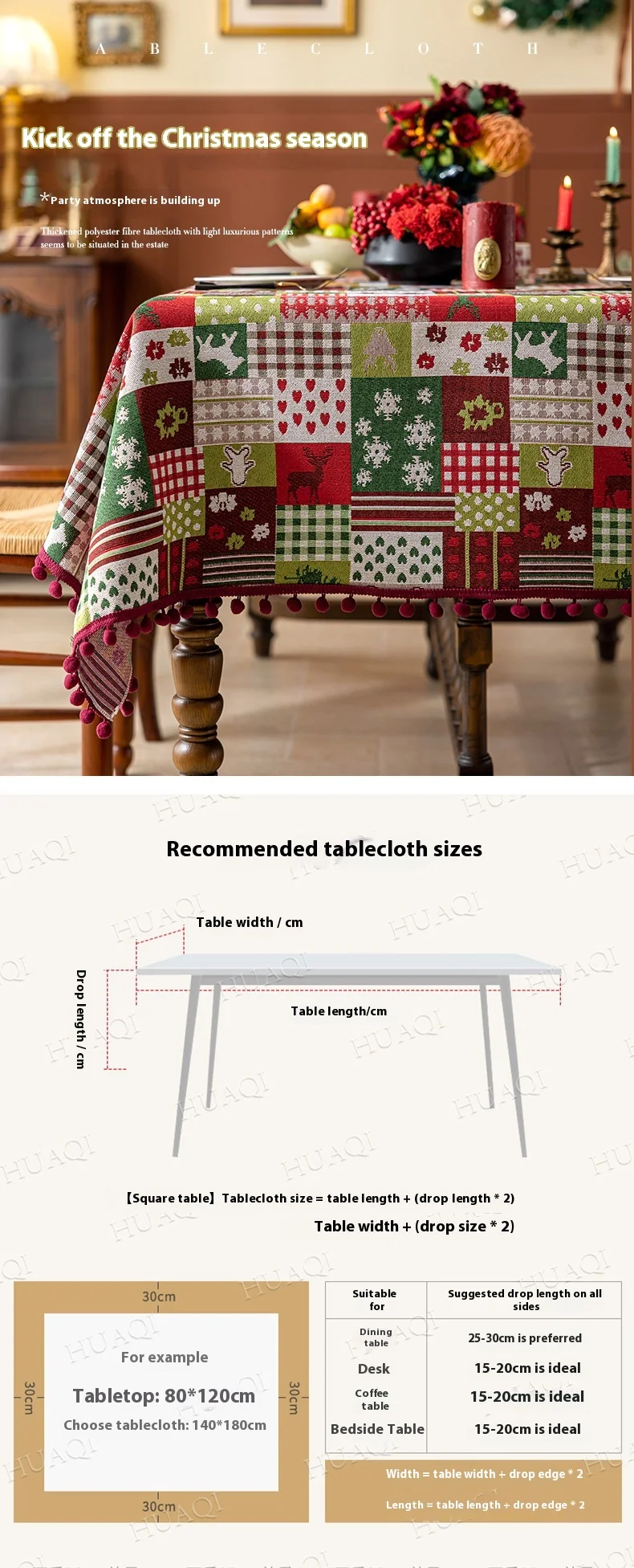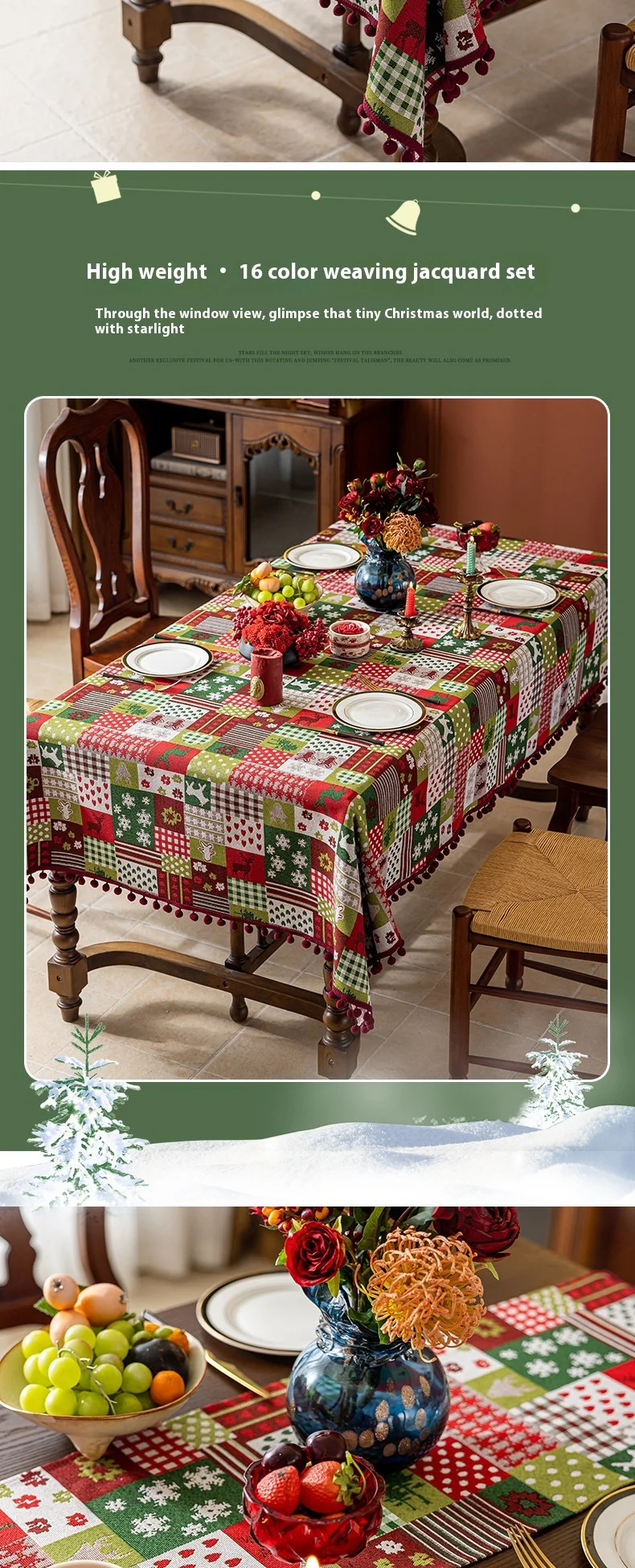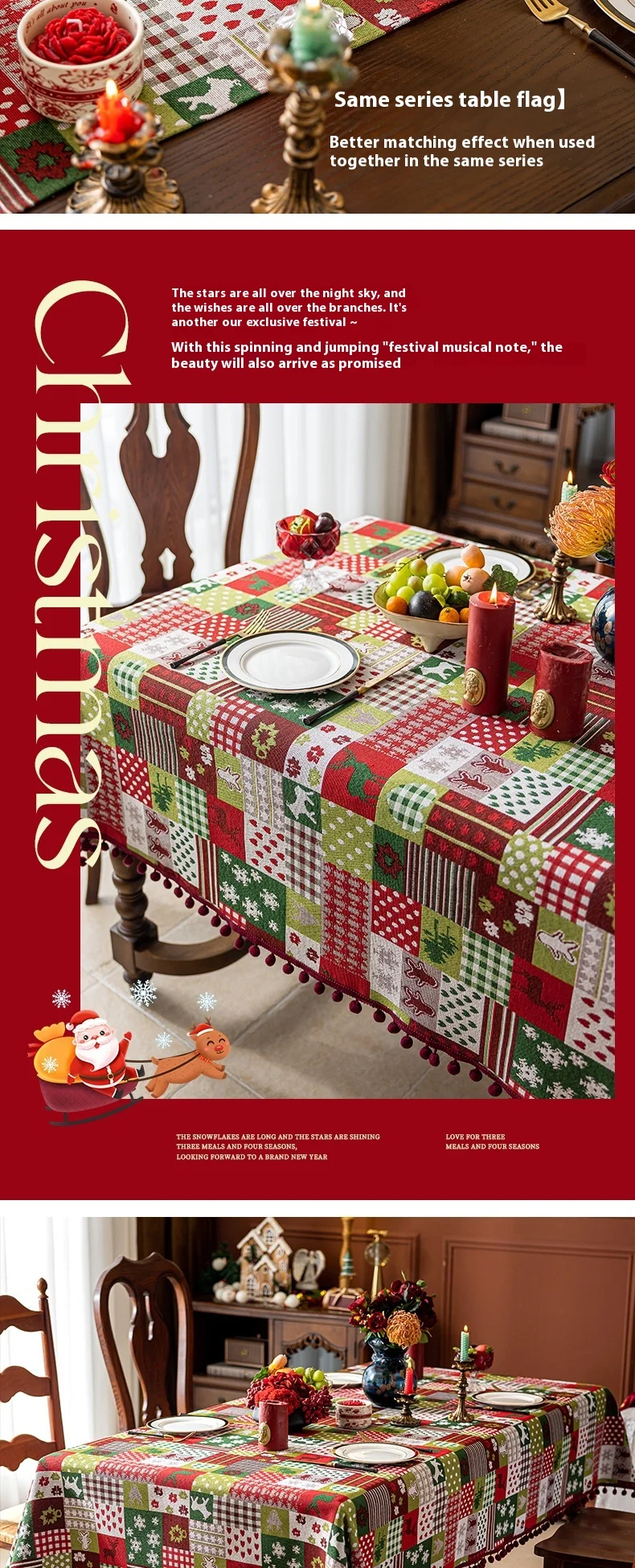 Christmas Decorative Tablecloth for Dining Kitchen Linen Cotton Table Cloth Sant