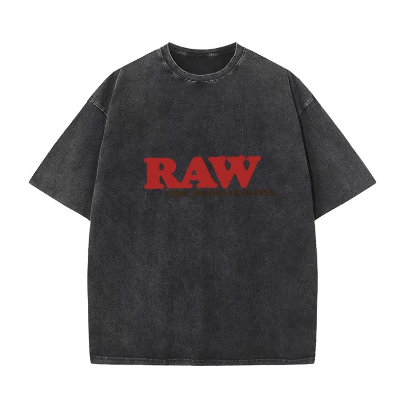 Classic printed washed T-shirt men's cotton T-shirt comfortable crew neck T-shir