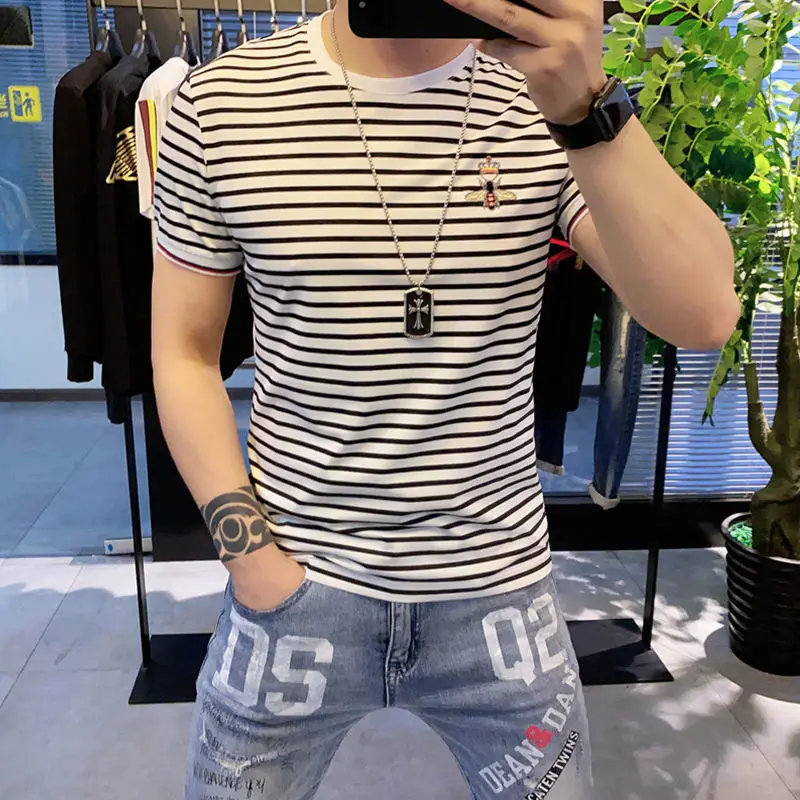 Clothes Cotton Vintage Mens Tee Shirts Goth Top Summer Men's T-shirt Striped Str