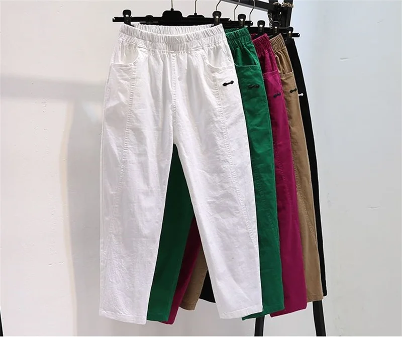 Cotton Linen Harem Pants Thin New Summer Loose Women Candy Color Casual Overalls