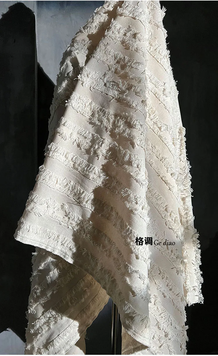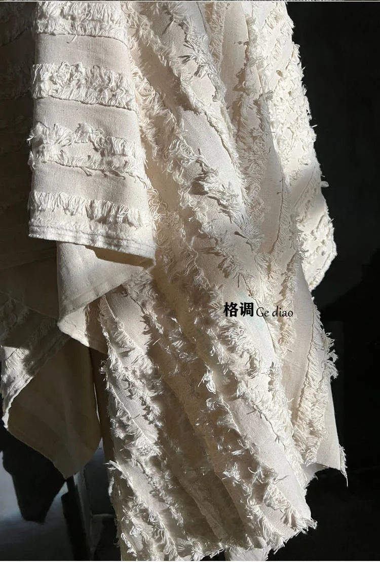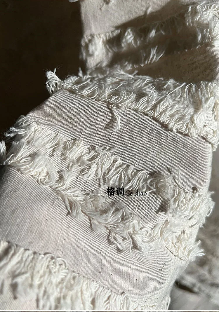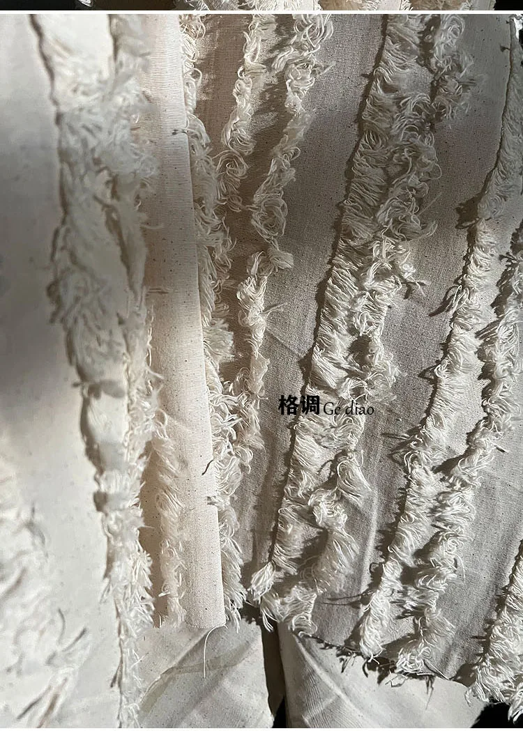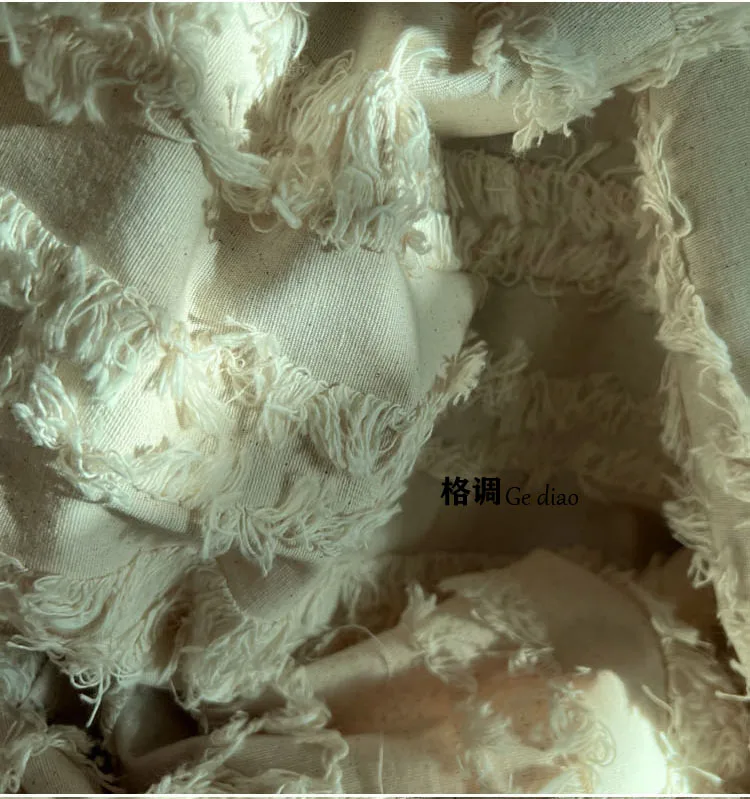 Cotton Linen Material Fabric Fringed Washed Worn-out Texture Bag Designer Clothi
