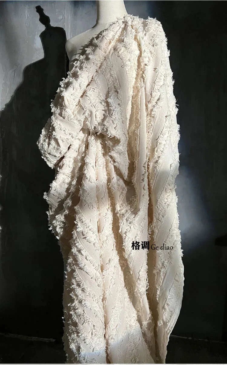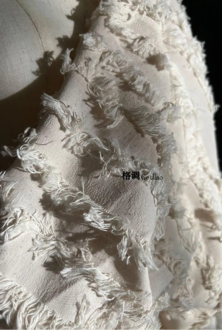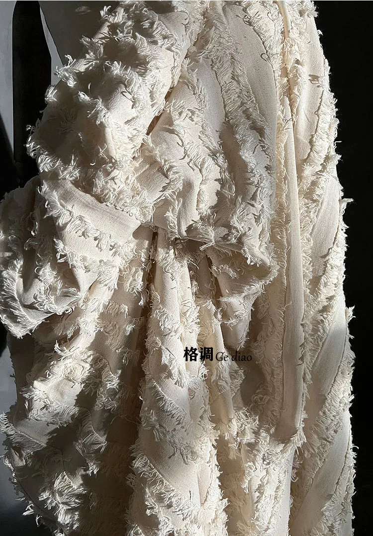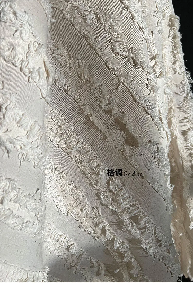 Cotton Linen Material Fabric Fringed Washed Worn-out Texture Bag Designer Clothi