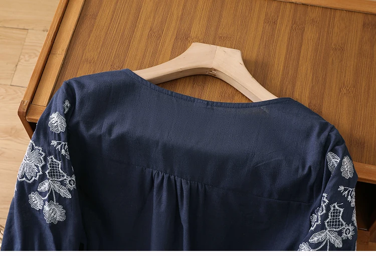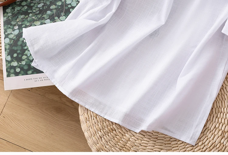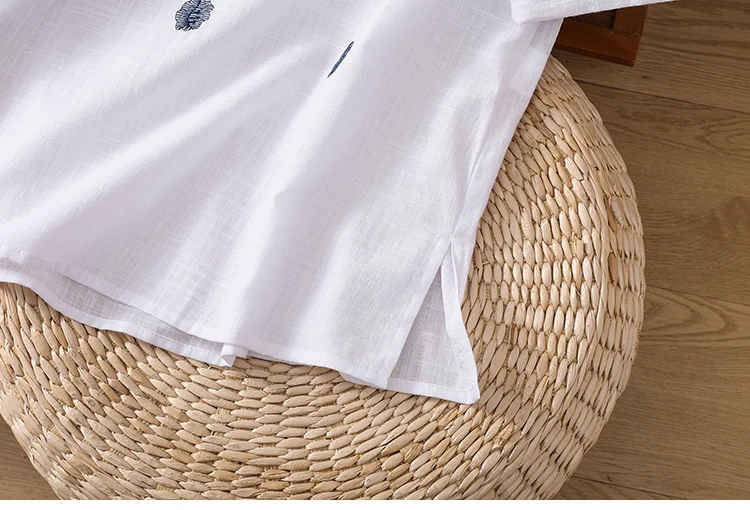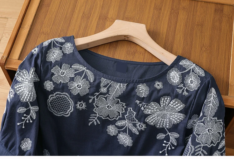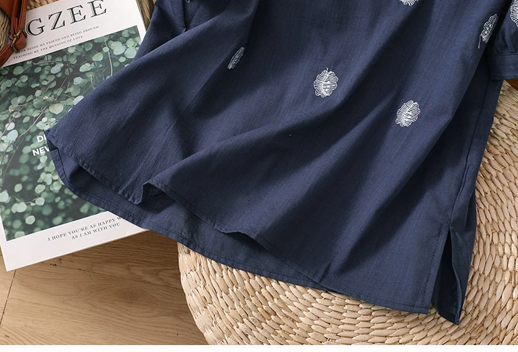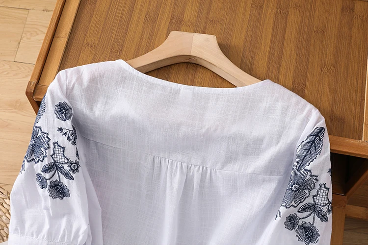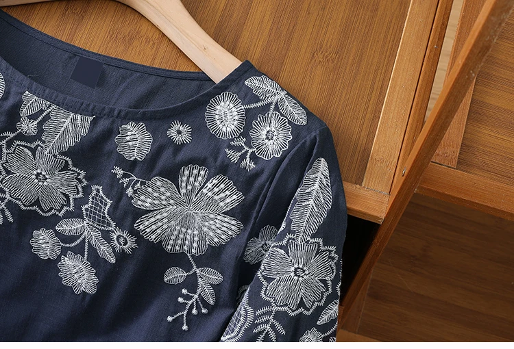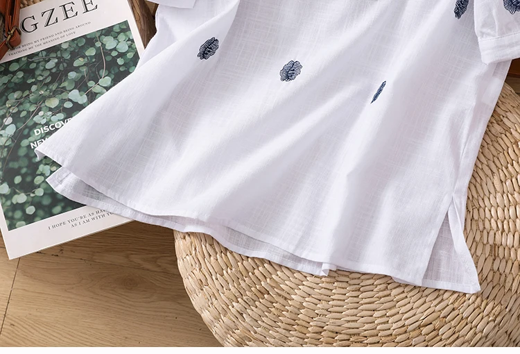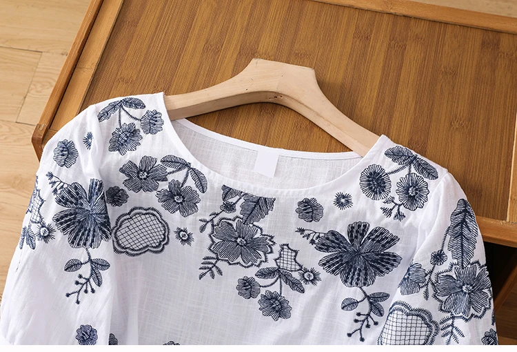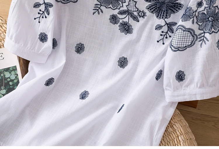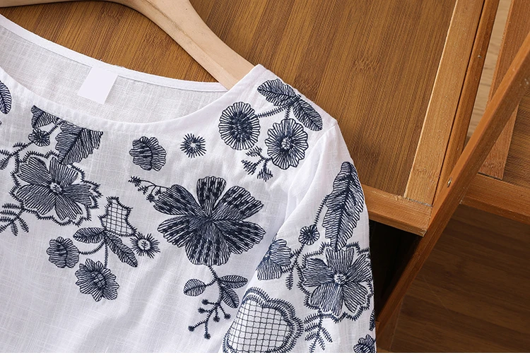Cotton Linen T-shirt Women Summer 2023 Embroidery Loose Tees Short Sleeves Flora