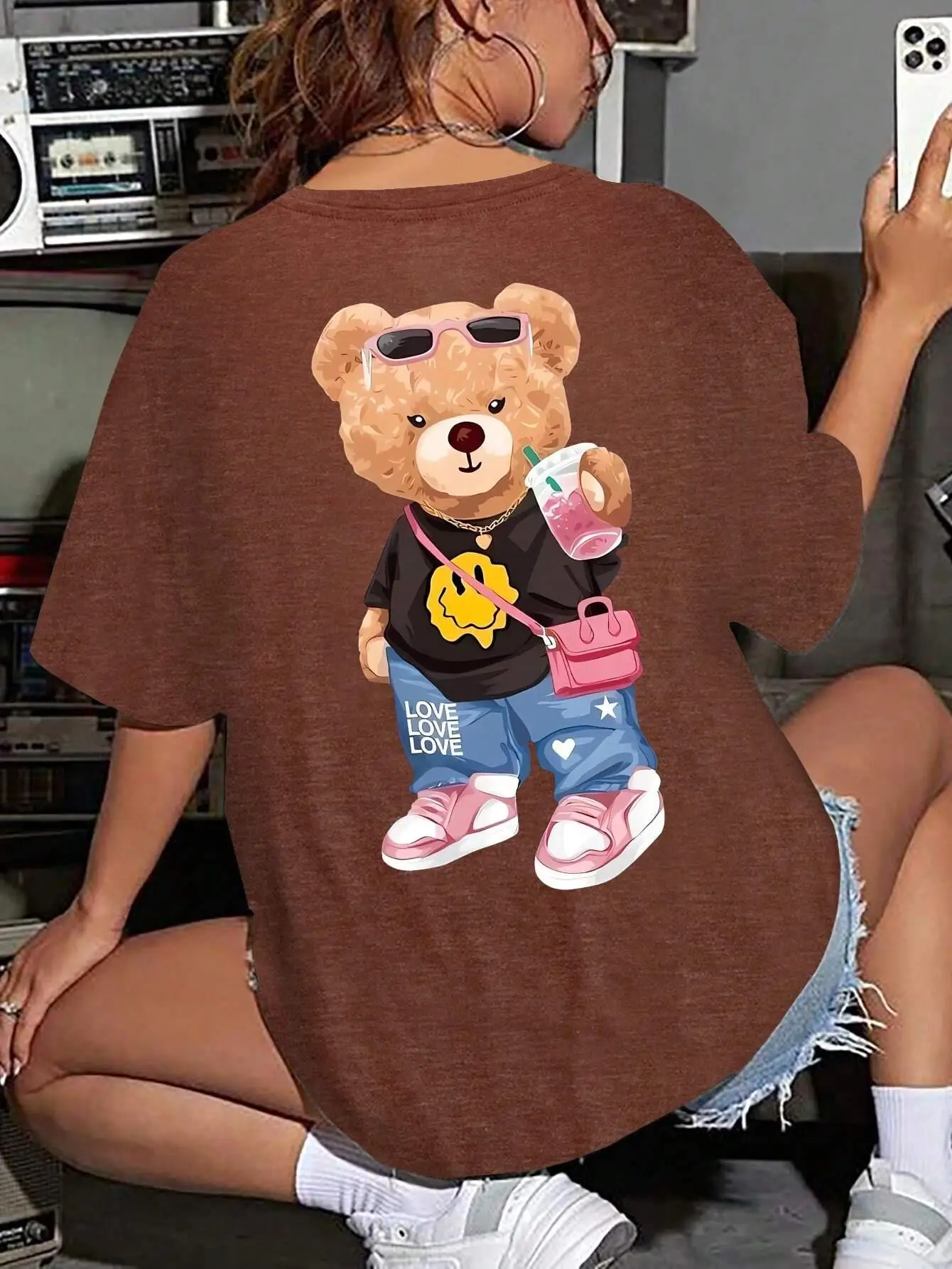 Cotton Women T-Shirts Cute Cartoons Bear Printing Tops Breathable Summer Loose S
