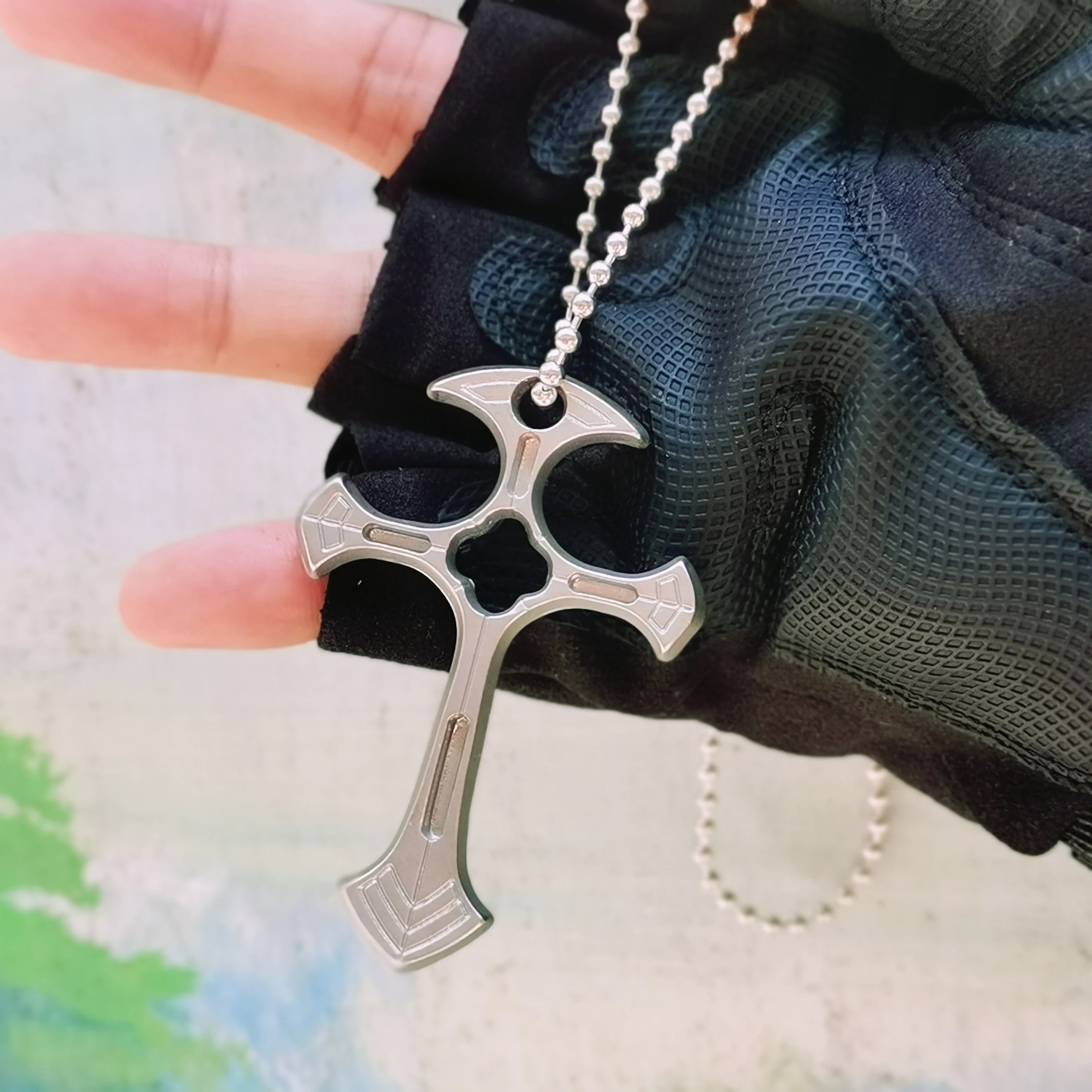 Cross Necklace For Men Self Defense Keychain Accessories With Beads Chain Pendan