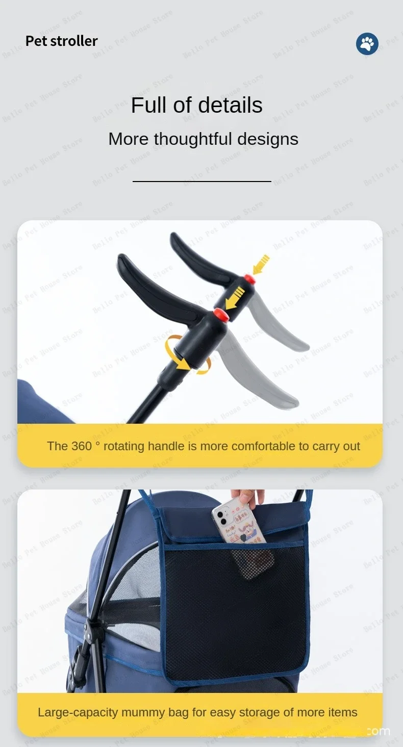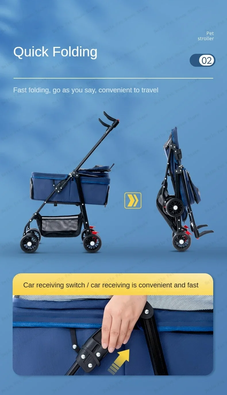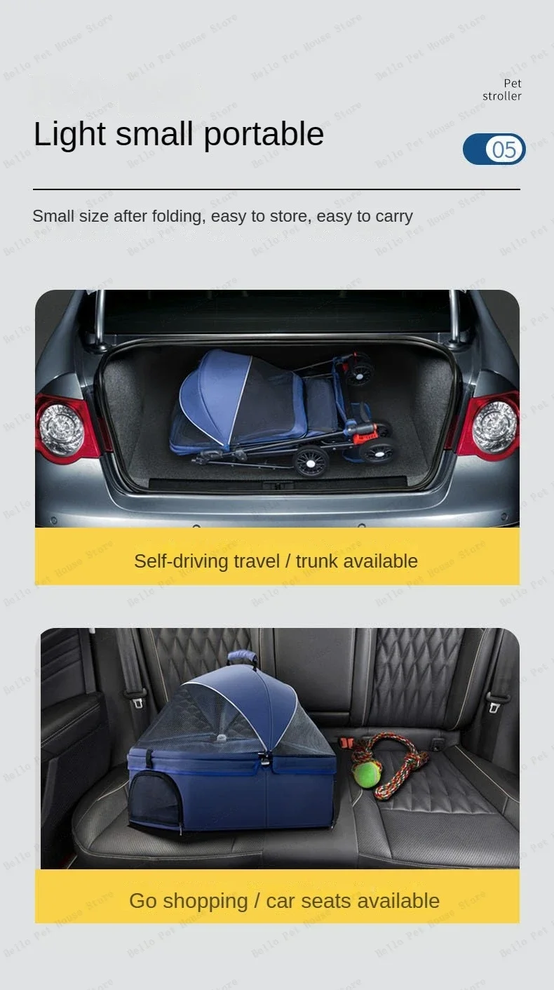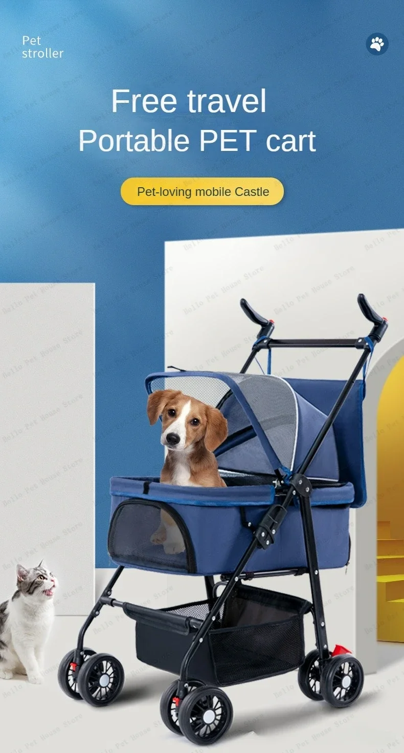 Detachable pet cart Dog and cat baby stroller Small and lightweight foldable pet