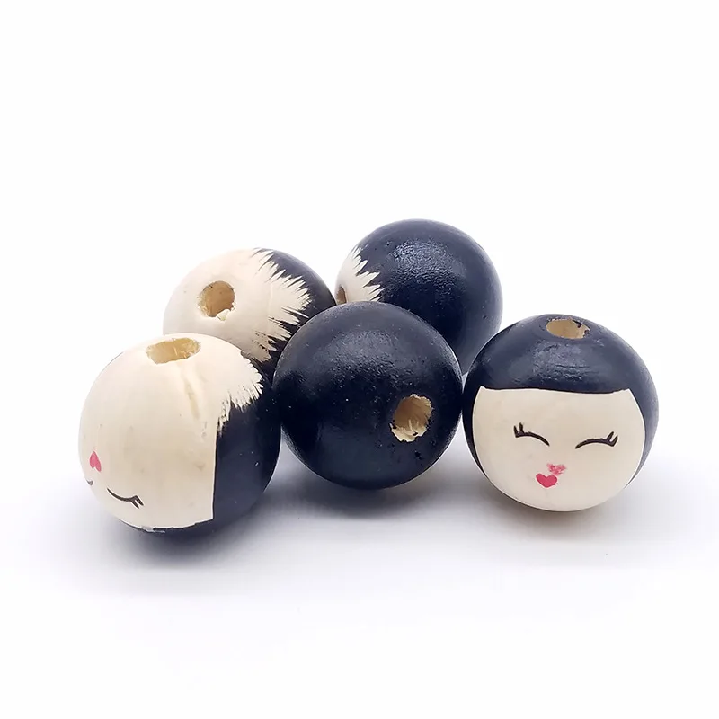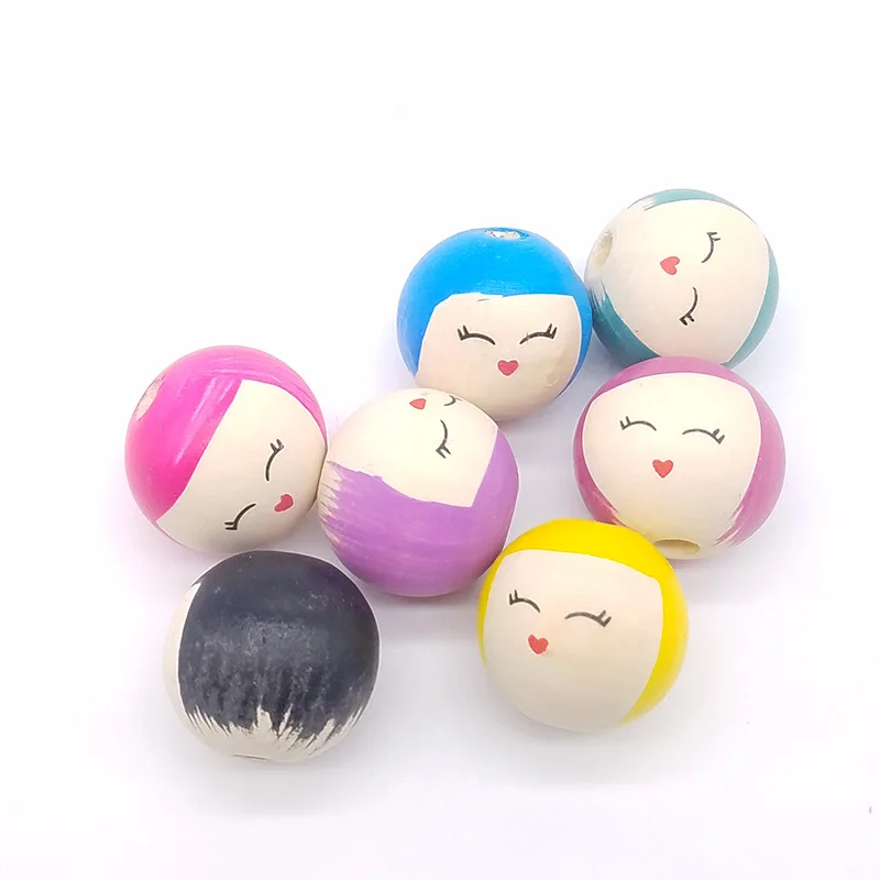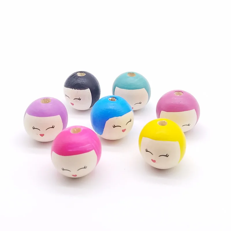 DIY Jewelry Accessories Color Face Doll Head Wooden Beads Wood Products Wholesal