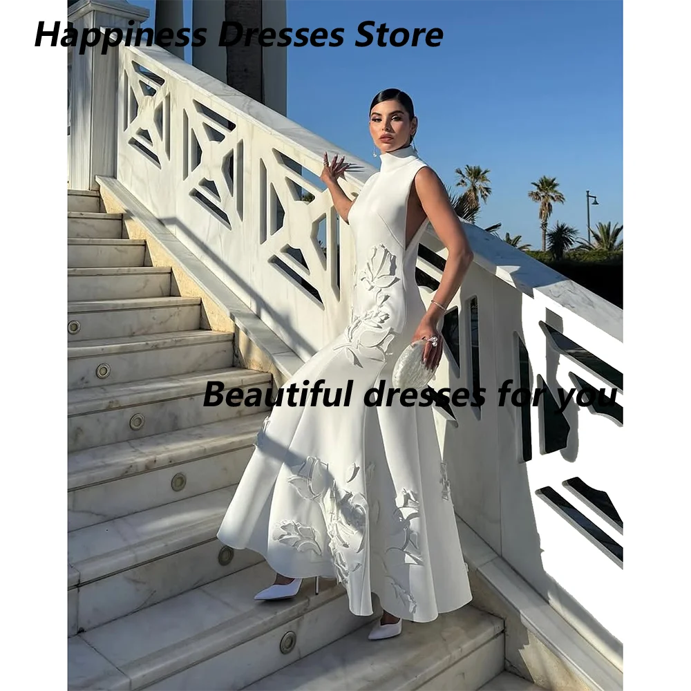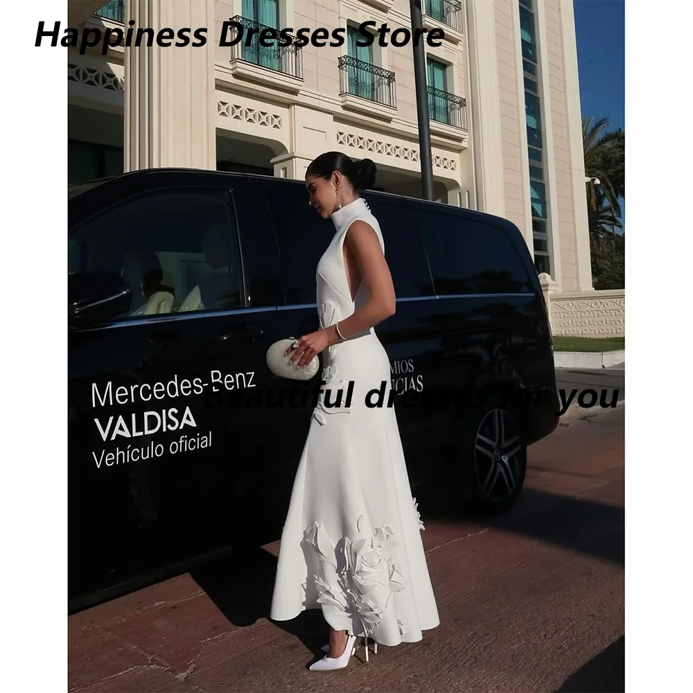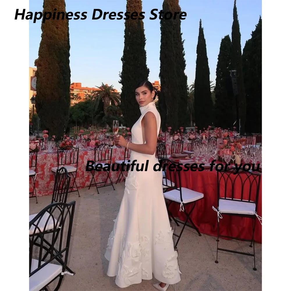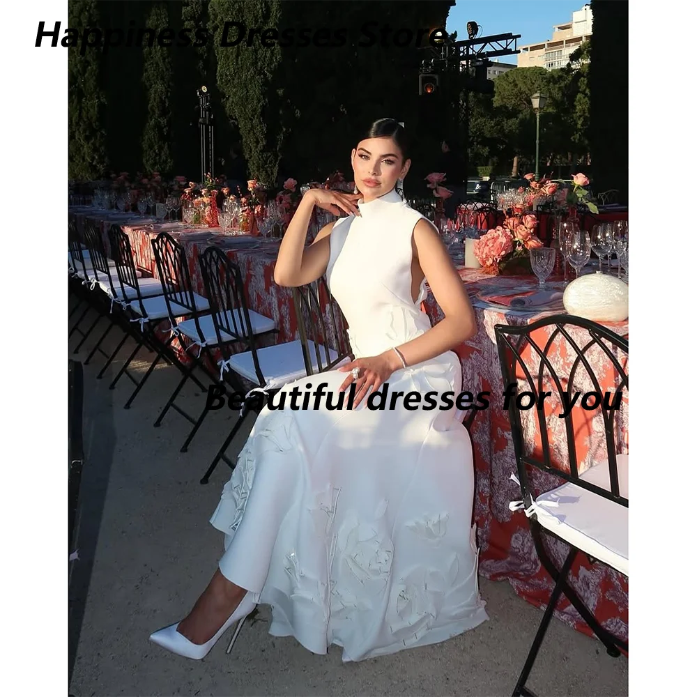 Elegant Evening Dresses for Women High-Neck Flowers Ankle-Length A-Line Prom For